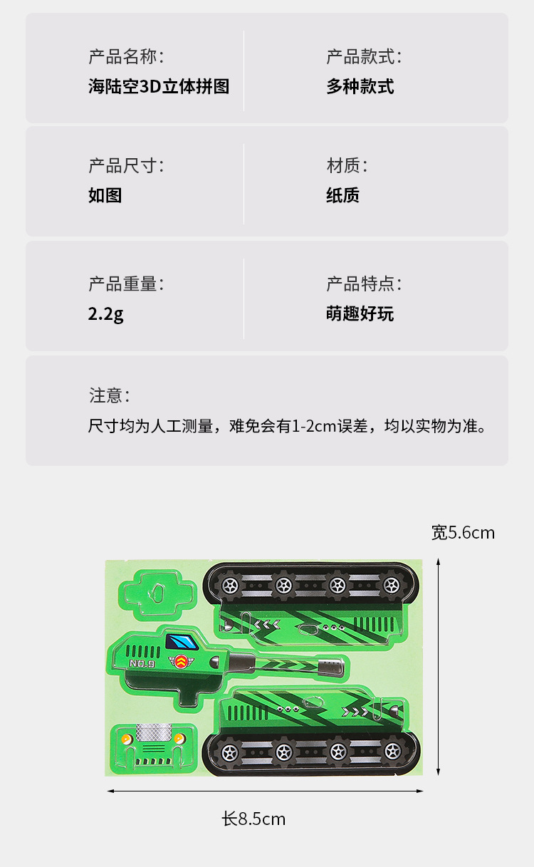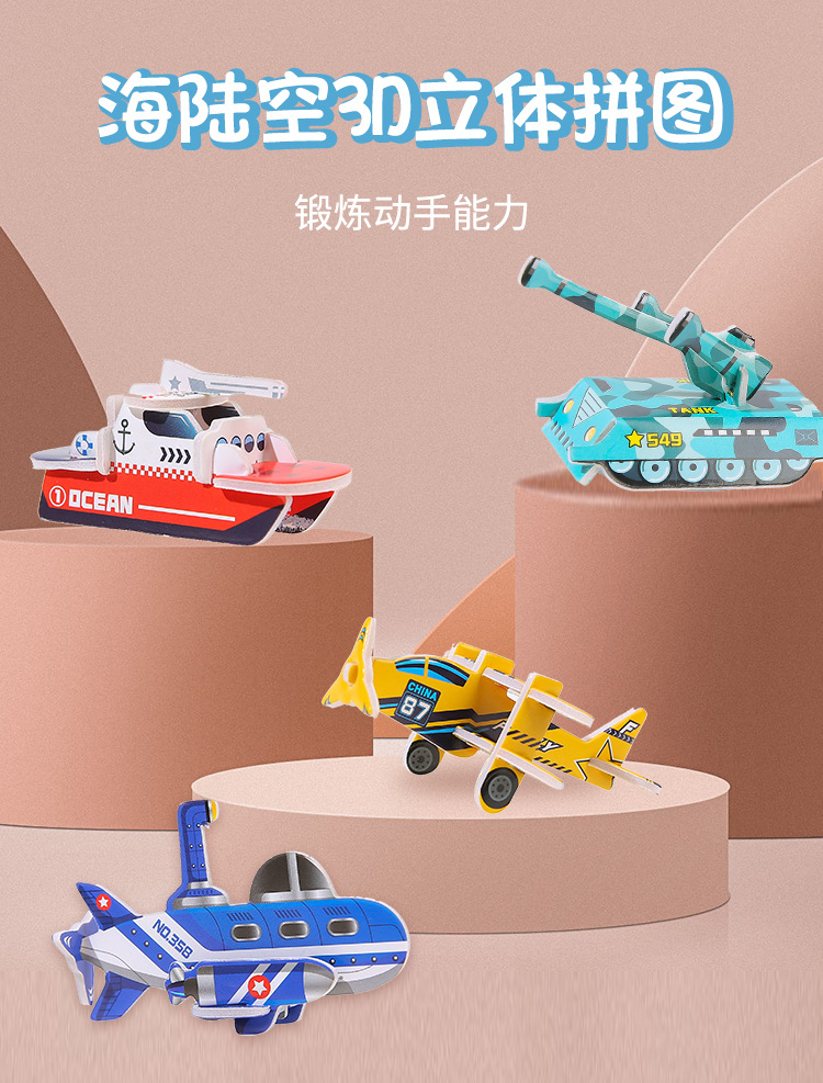 어린이 종이 3 차원 군사 퍼즐 3 차원 공룡 탱크 수제 퍼즐 DIY 장난감 유치원 선물 배치