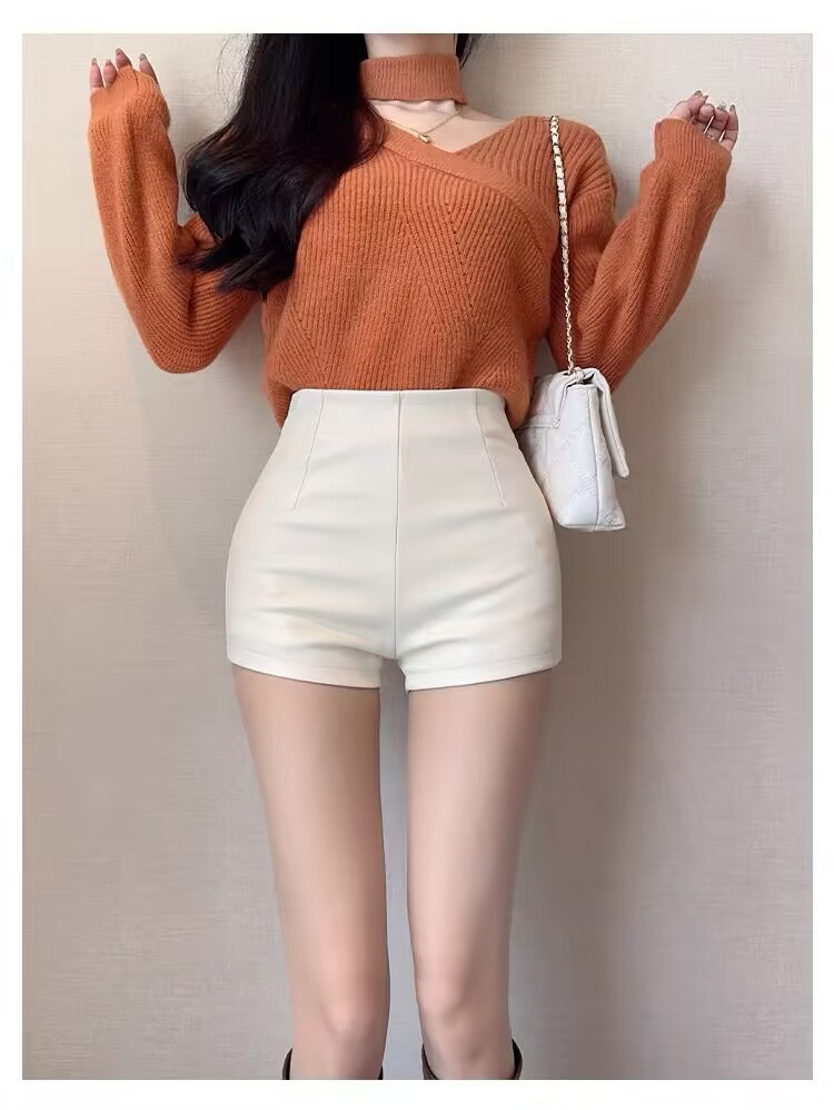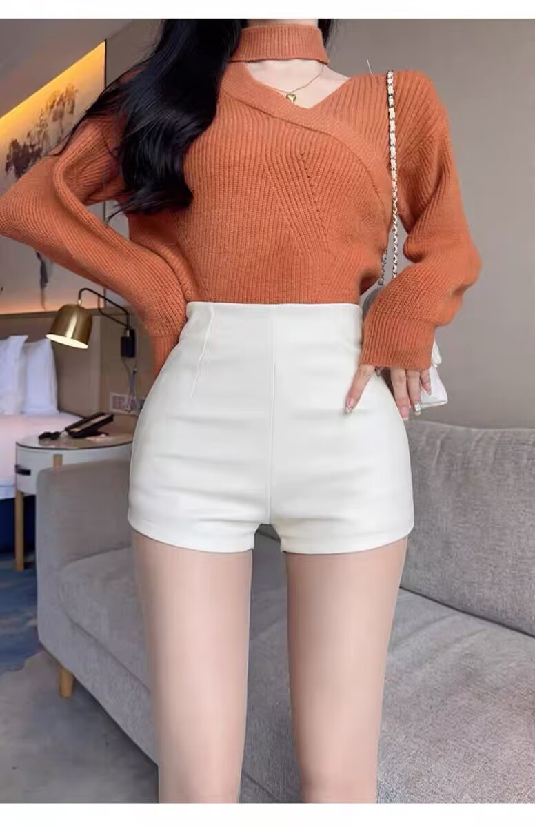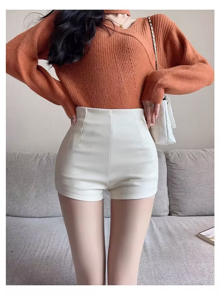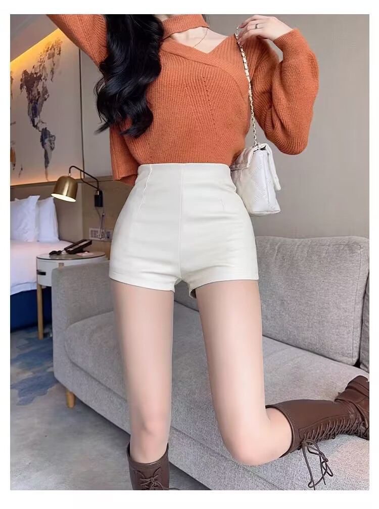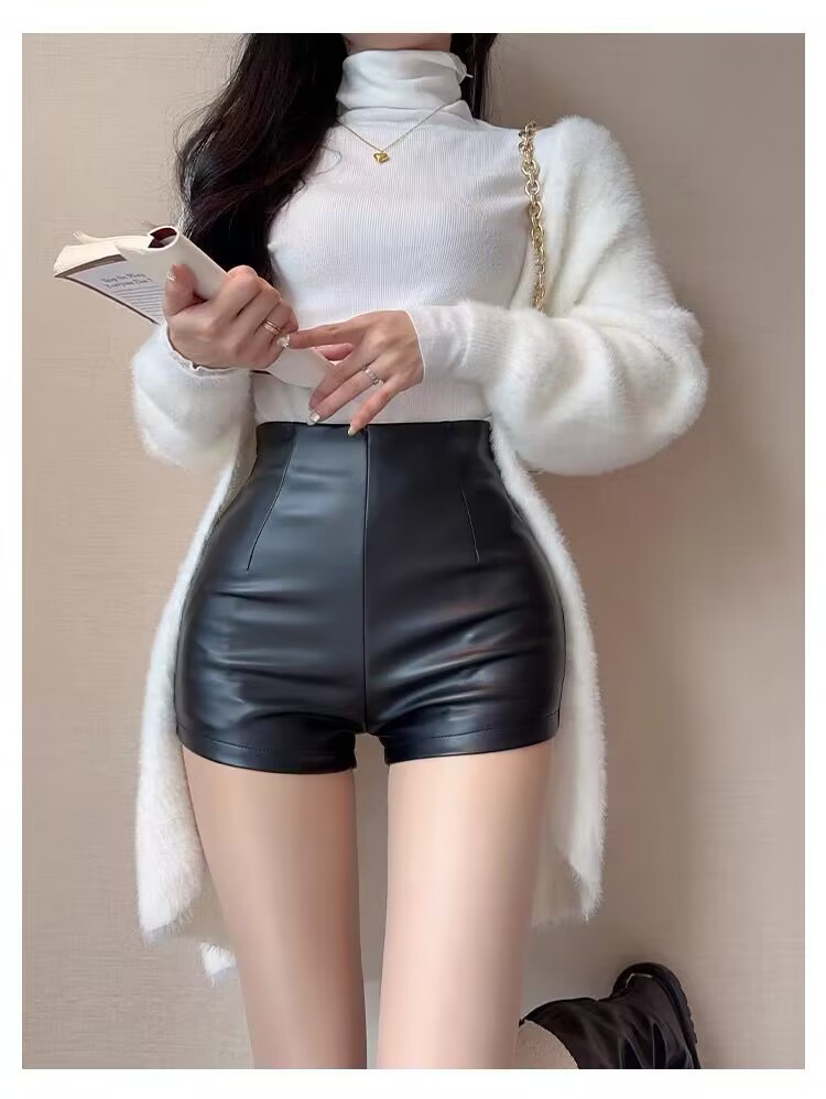 새로운 여성 가죽 반바지 높은 허리 슬리밍 PU 가죽 고관절 타이트 울트라 짧은 섹시한 핫 바지 올매치 베이스 부츠 바지