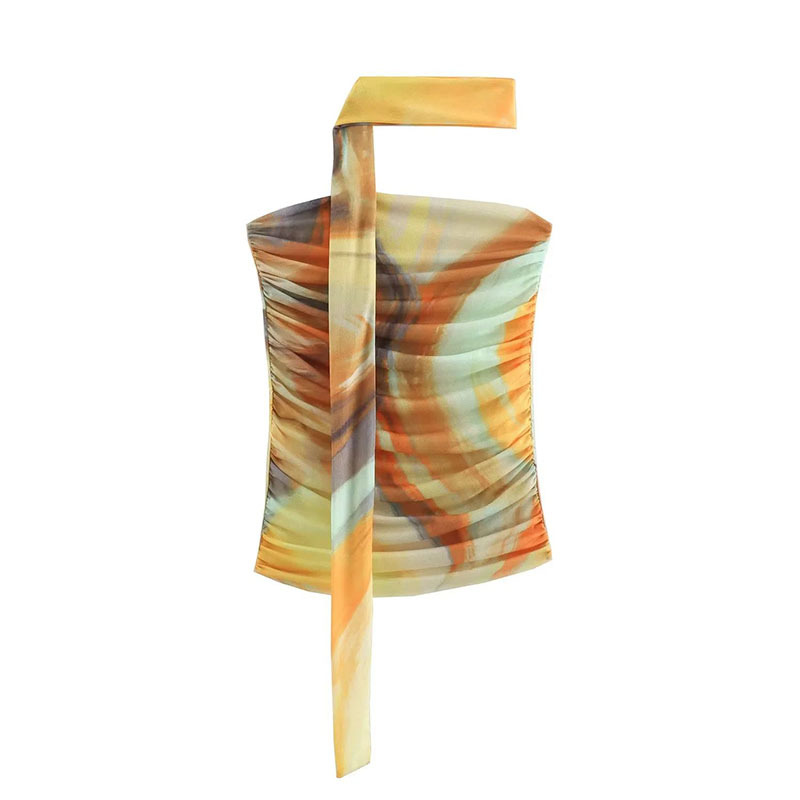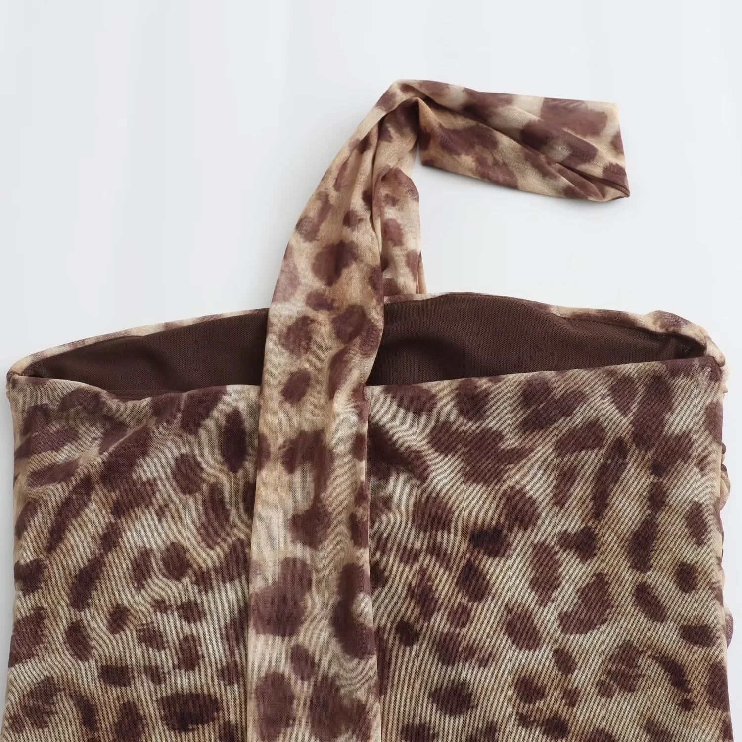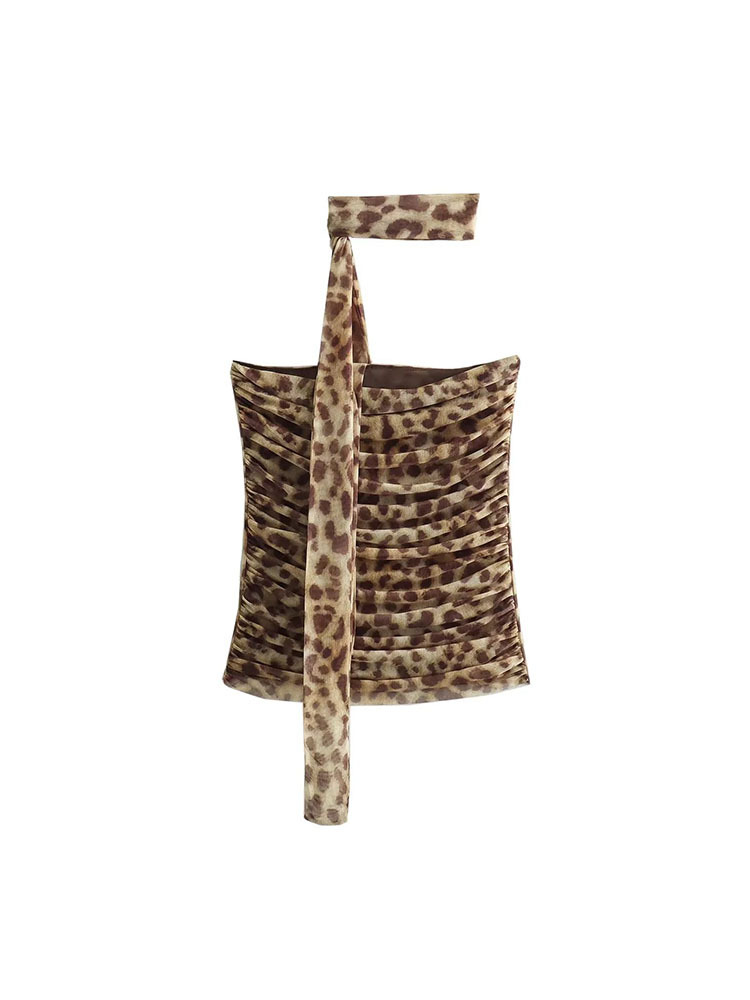 유럽과 미국 스타일의 여름 여성복 신상품, 세련되고 패셔너블한 홀터넥 레오파드 프린트 튜브탑 + 프린트 실크 메쉬 스커트스토어 가기