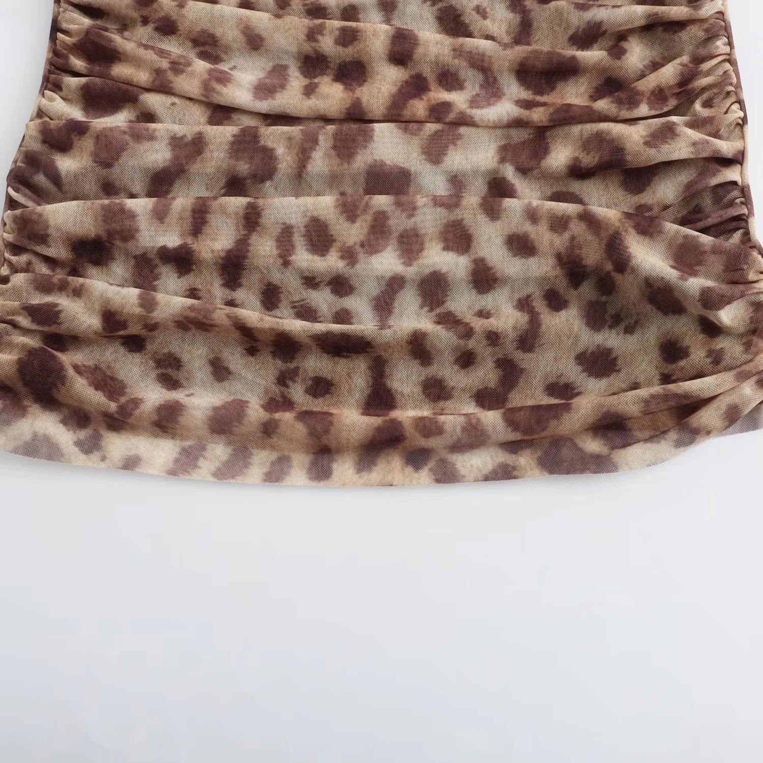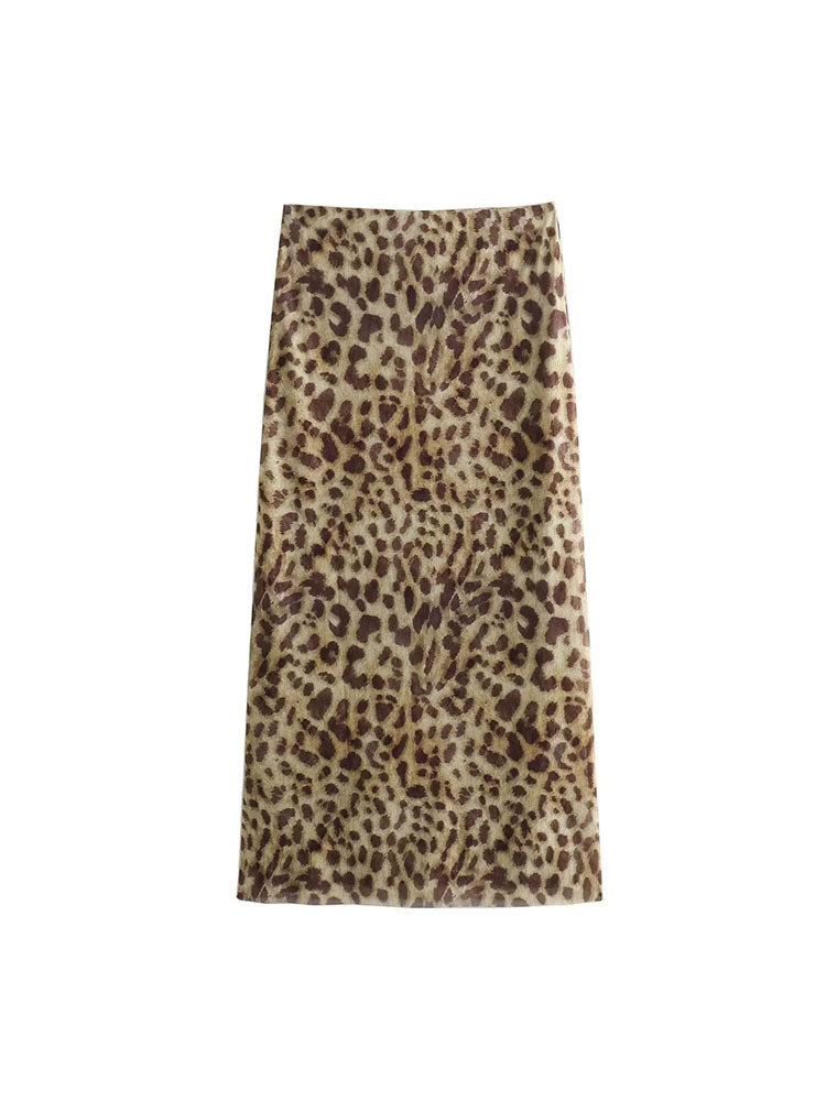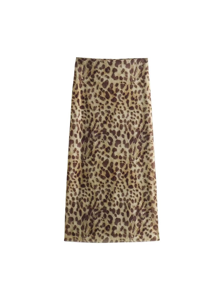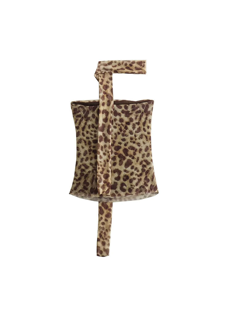 유럽과 미국 스타일의 여름 여성복 신상품, 세련되고 패셔너블한 홀터넥 레오파드 프린트 튜브탑 + 프린트 실크 메쉬 스커트