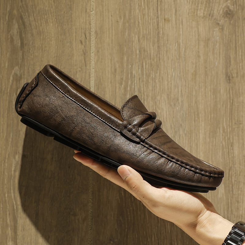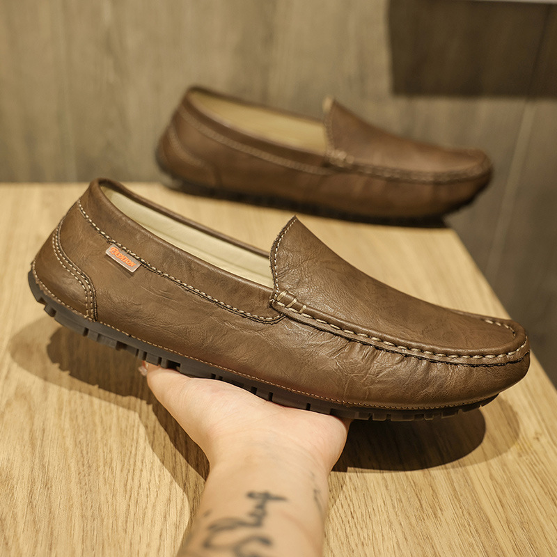 2026년 봄 신상 남성용 콩콩슈즈 한국 스타일 슬립온 심플 통기성 남성 캐주얼 가죽신 남성용 부드러운 밑창 신발스토어 가기