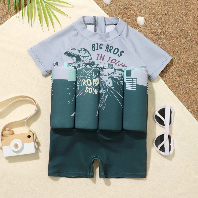 2025 남아용 원피스 수영복 반팔 원피스 귀여운 만화 수영복 유아 및 어린이 수영복 플로팅 수영복