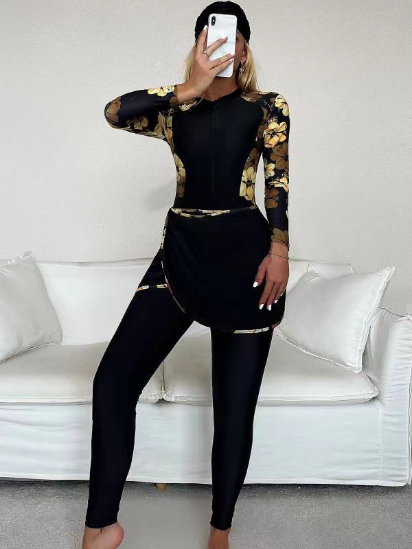 새로운 대외 무역 무슬림 수영복 긴 소매 바지 3 개 세트 보수적 인 부르 키니 가슴 패드스토어 가기