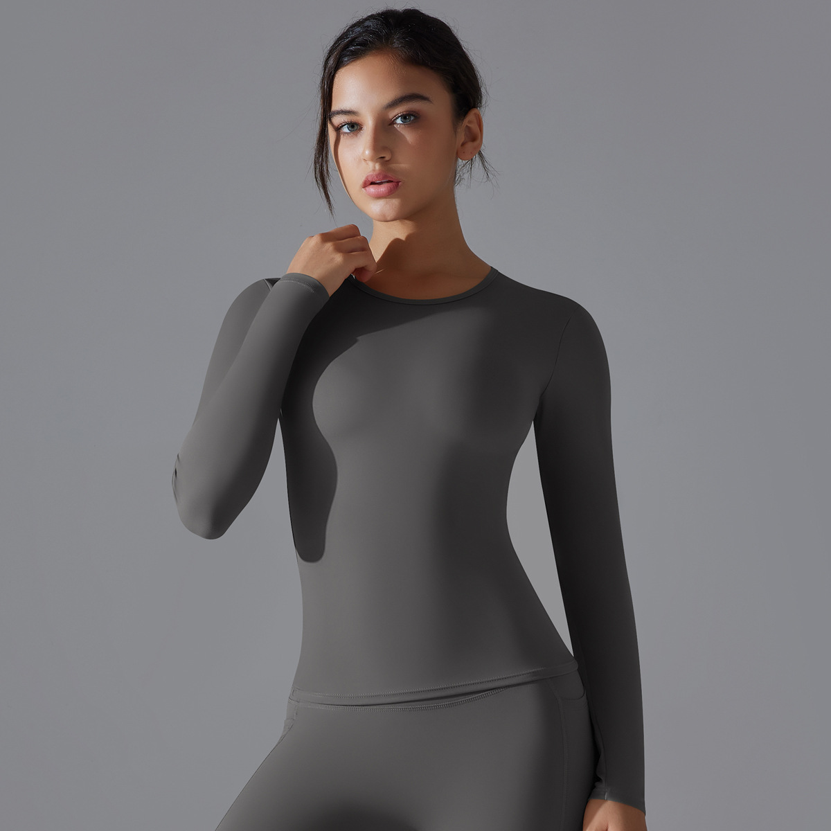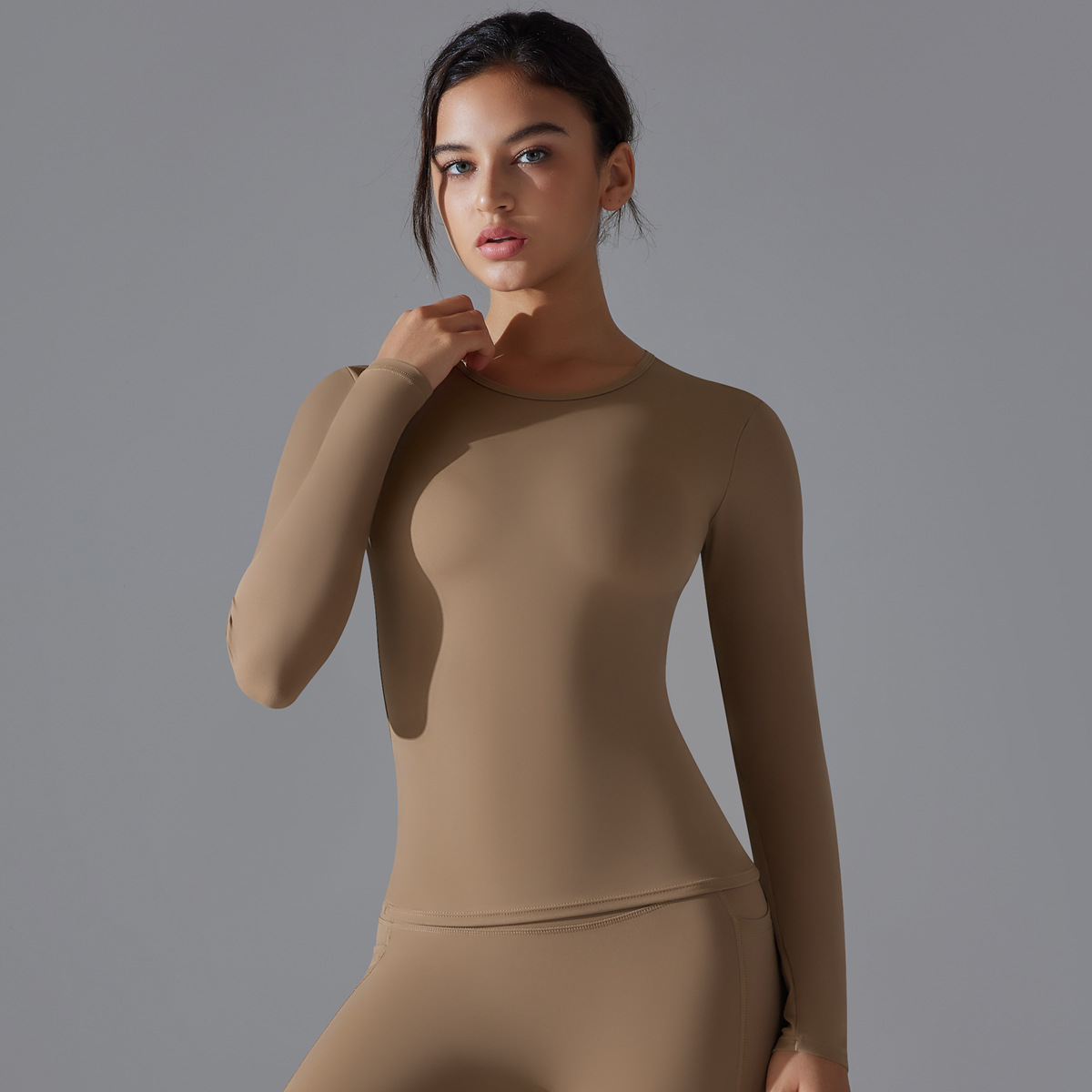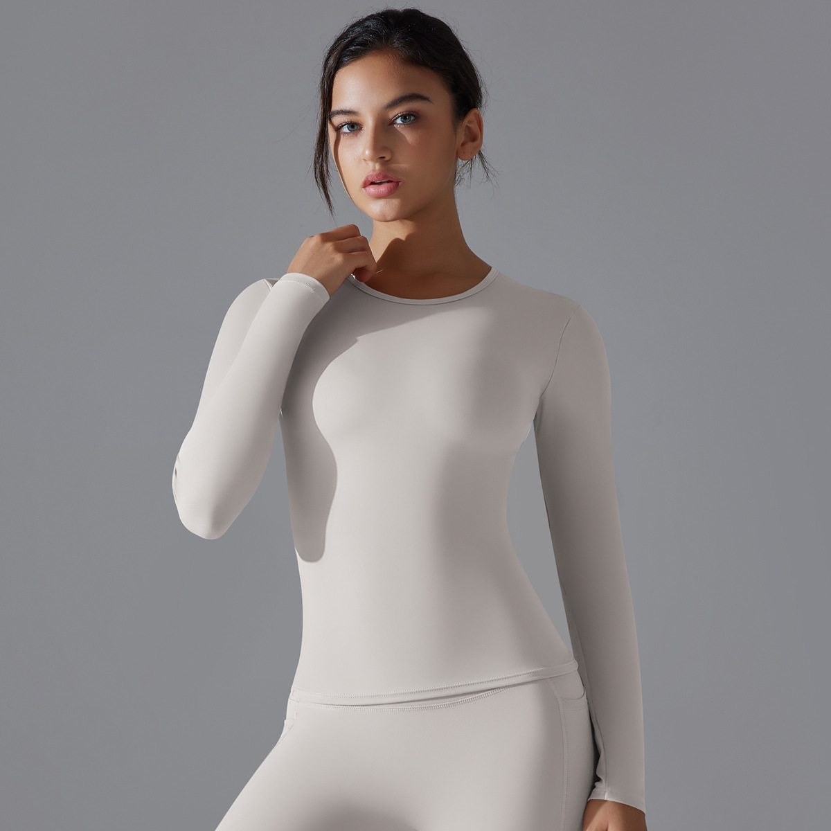 새로운 솔리드 컬러 샌딩 긴 소매 요가 티셔츠 높은 탄성 통기성 피트니스 착용 필라테스 러닝 롱 슬리브 탑