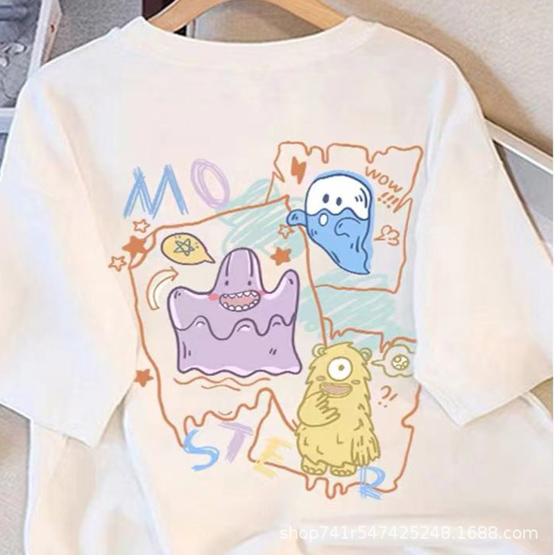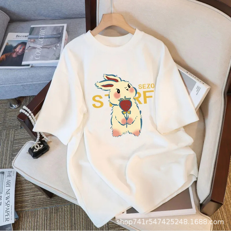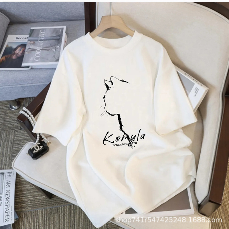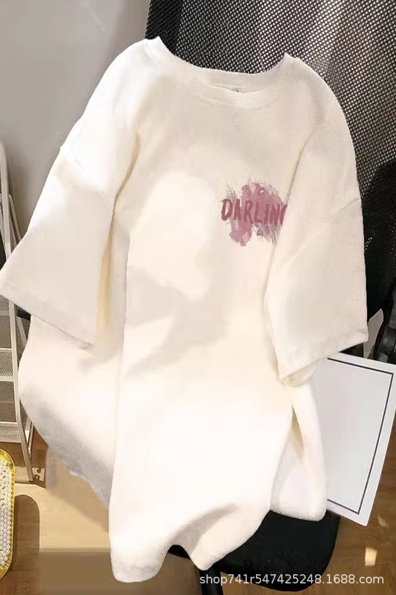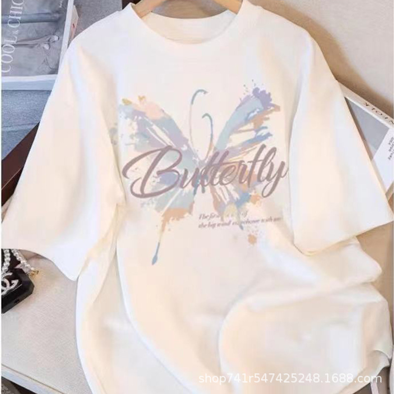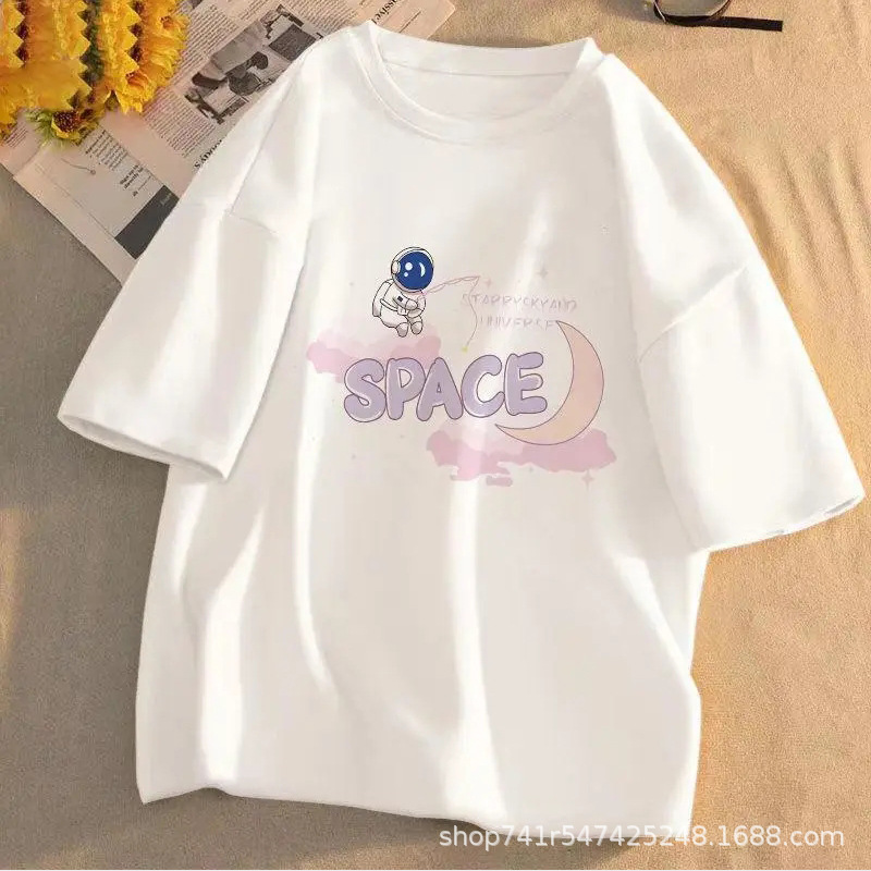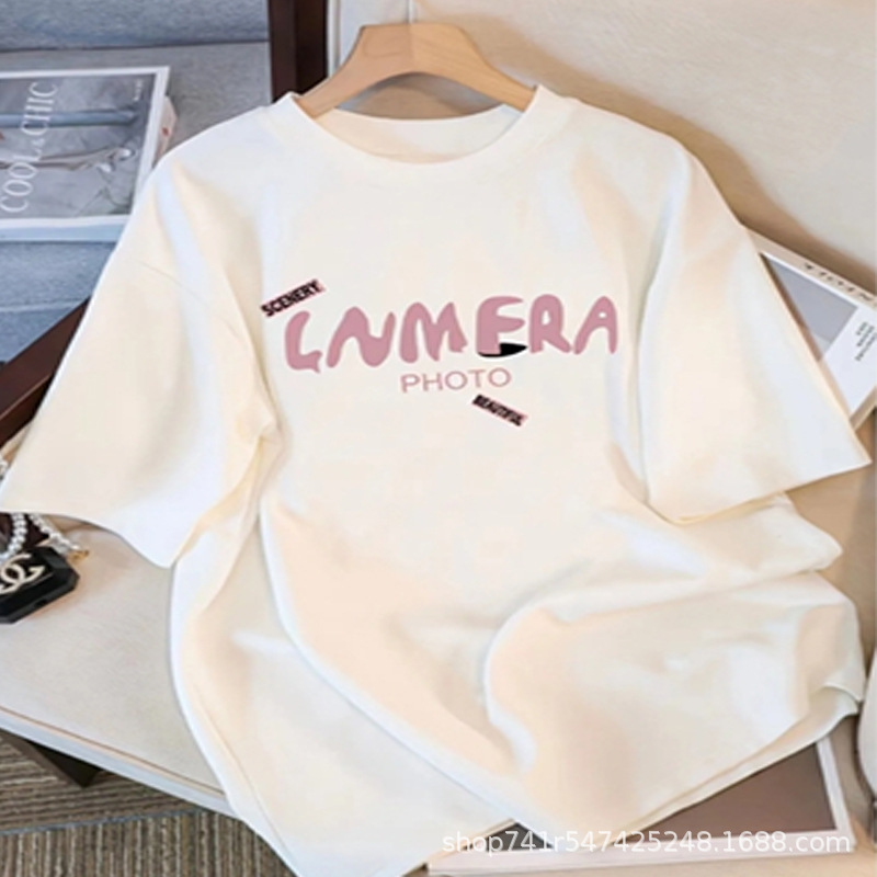 2024 년 여름 새로운 반팔 티셔츠 여성용 내복 홍콩 스타일 세련된 여성 의류 한국식 루즈 반소매 티셔츠 헤어 탑스토어 가기