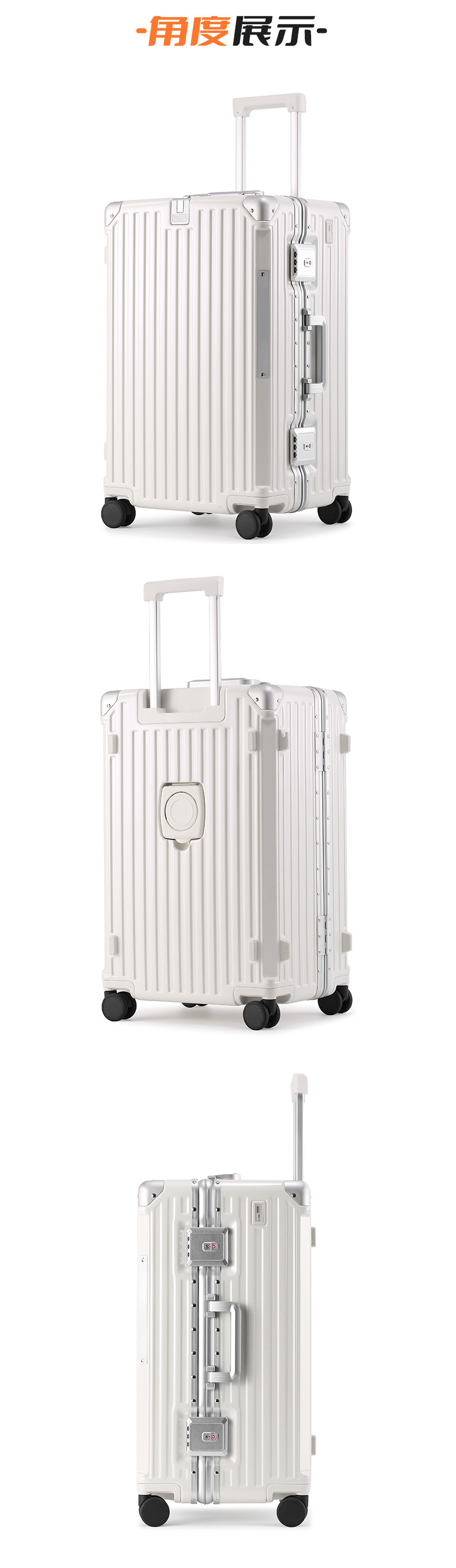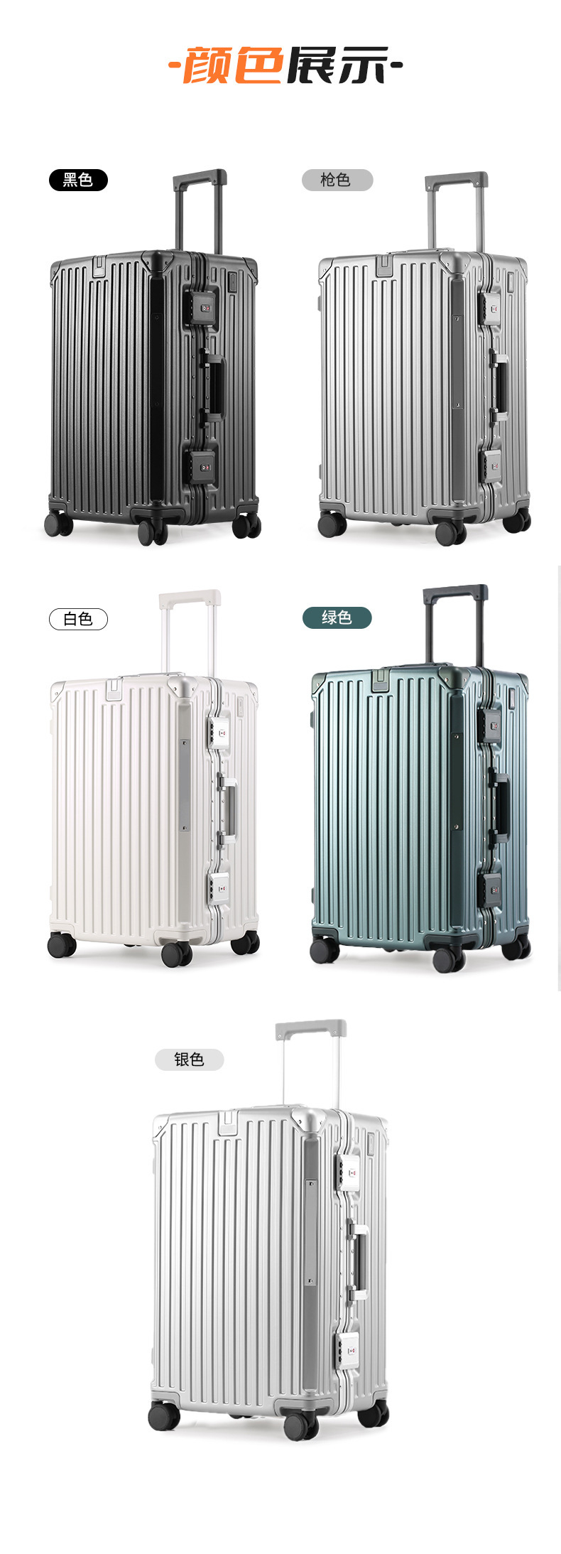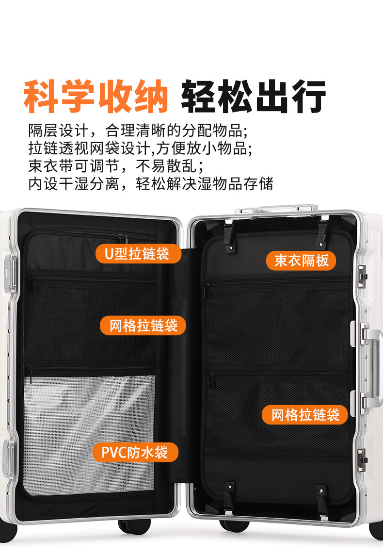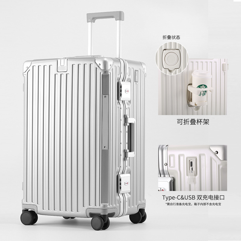 두꺼운 알루미늄 프레임 케이스, 대량 맞춤 제작, 대용량 여행 가방, 다기능 트롤리 케이스, TSA 비밀번호 잠금장치