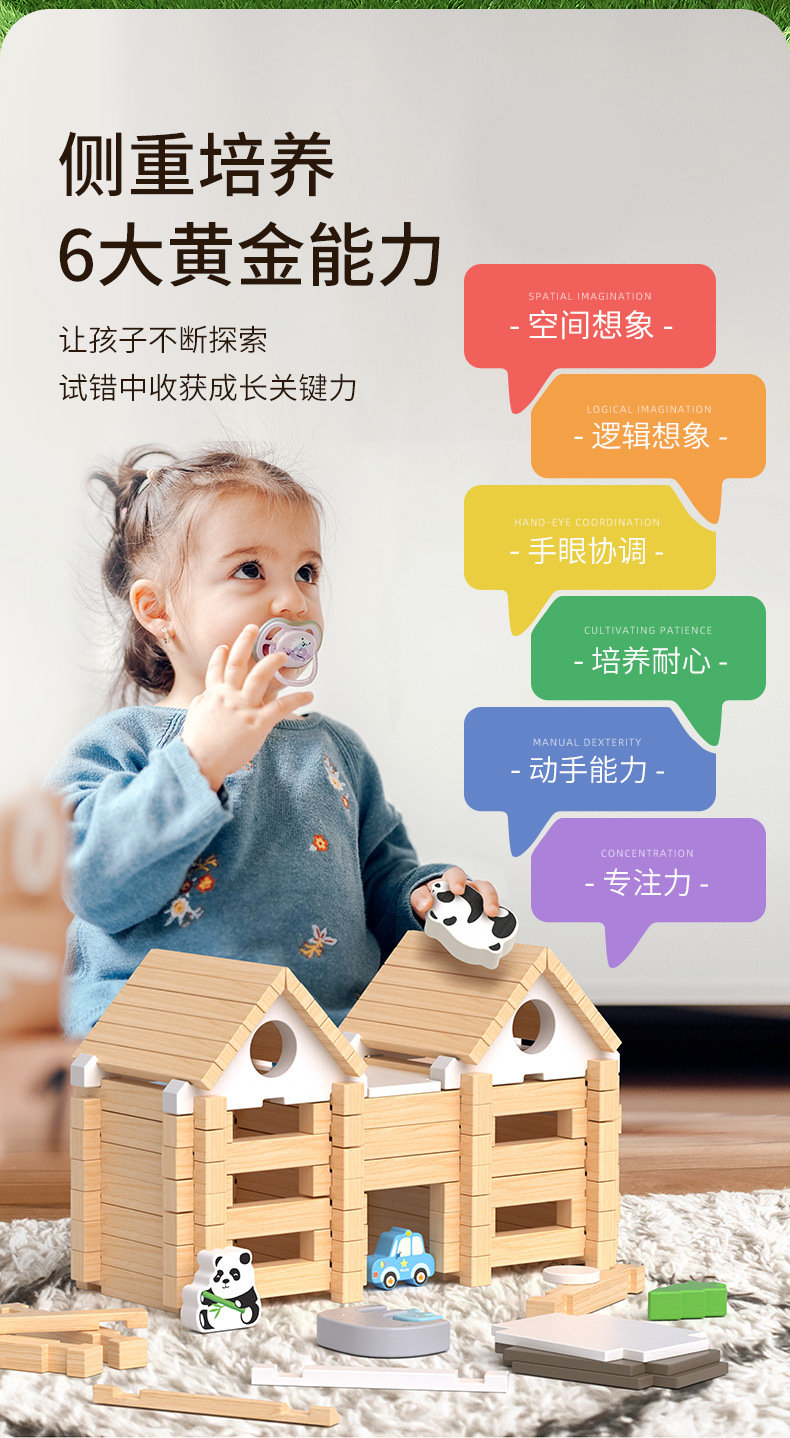 어린이 조기 교육 루반 장례 및 테논 공동 구조 교육 건물 블록 캐빈 창조적 인 공간 건설 조립 된 실습 나무 장난감스토어 가기