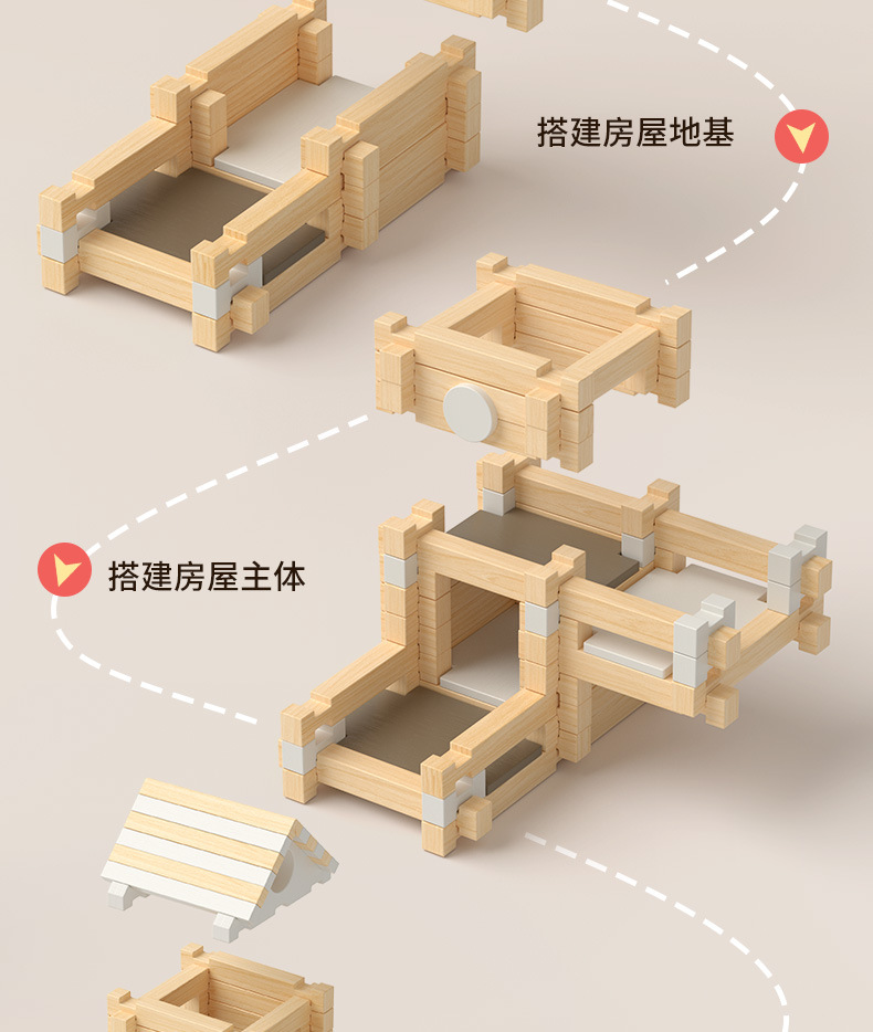 어린이 조기 교육 루반 장례 및 테논 공동 구조 교육 건물 블록 캐빈 창조적 인 공간 건설 조립 된 실습 나무 장난감