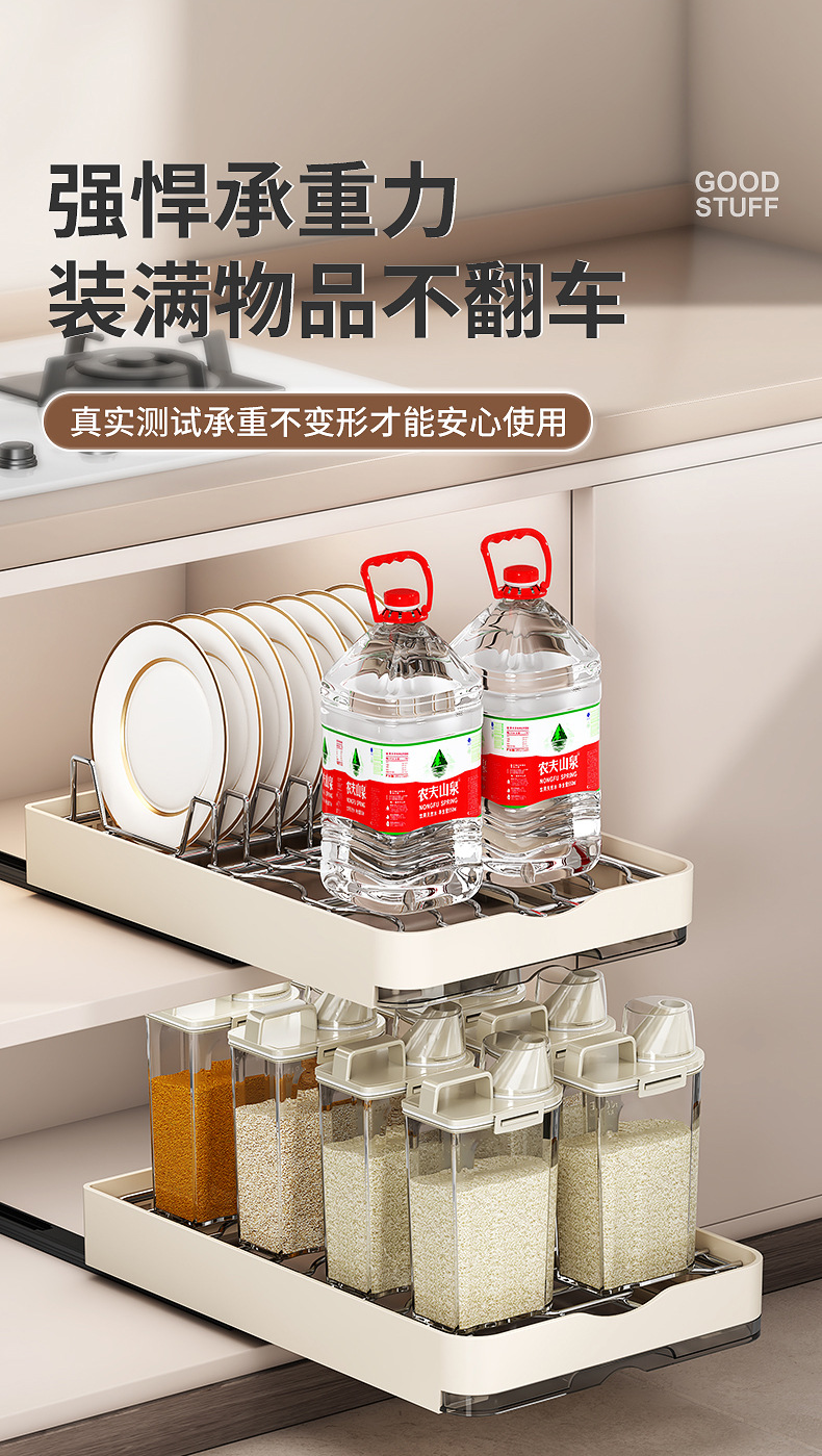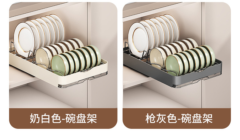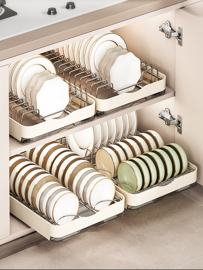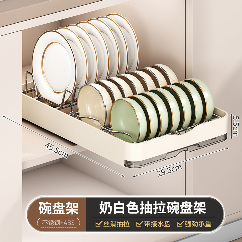 • [스테인레스 스틸 밀크 화이트] 풀 아웃 그릇 랙