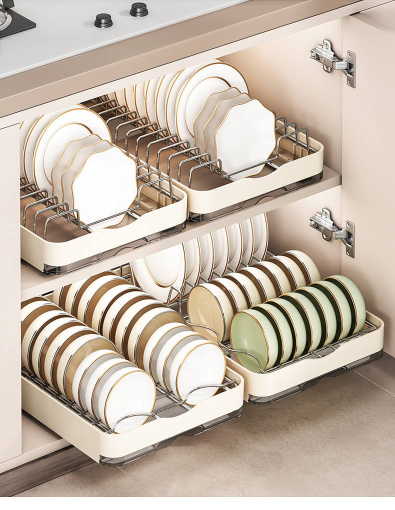 스테인레스 스틸 캐비닛 내부 접시 랙 개폐식 바구니 주방 카운터 탑 접시 랙 배수 랙 페인트 접시 보관 랙