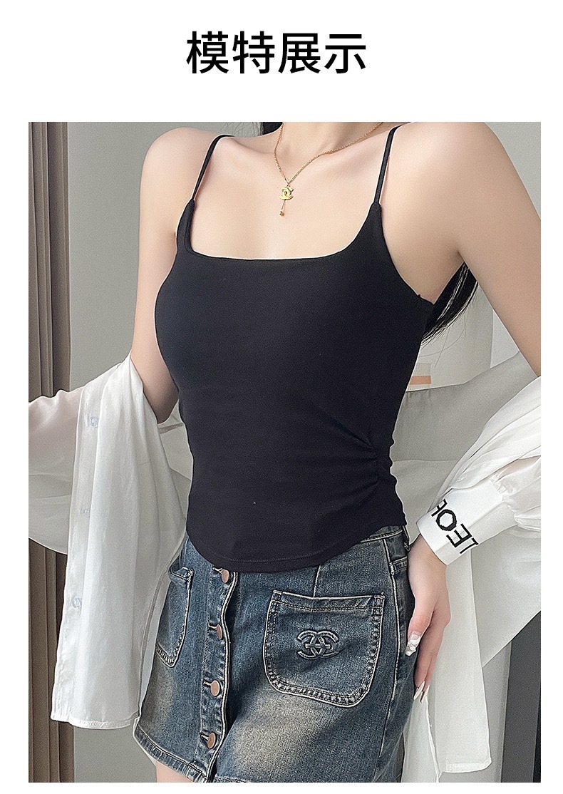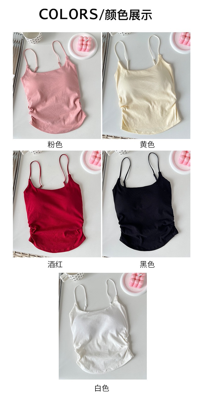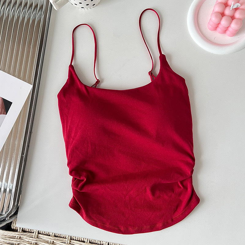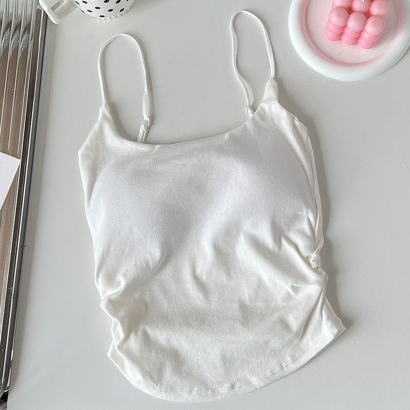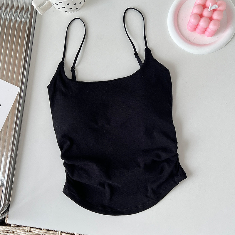새로운 스타일 순수한 달콤하고 매운 디자인 Pleated Camisole 여성 벨트 가슴 패드 내부 착용 외부 착용 슬림 핏 아름다운 여름 옷스토어 가기