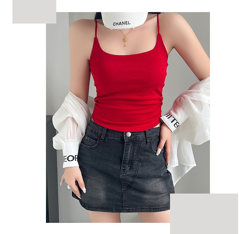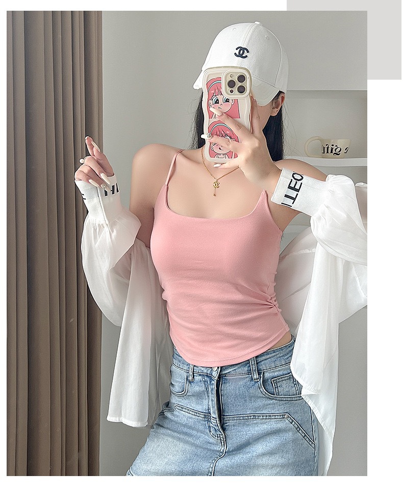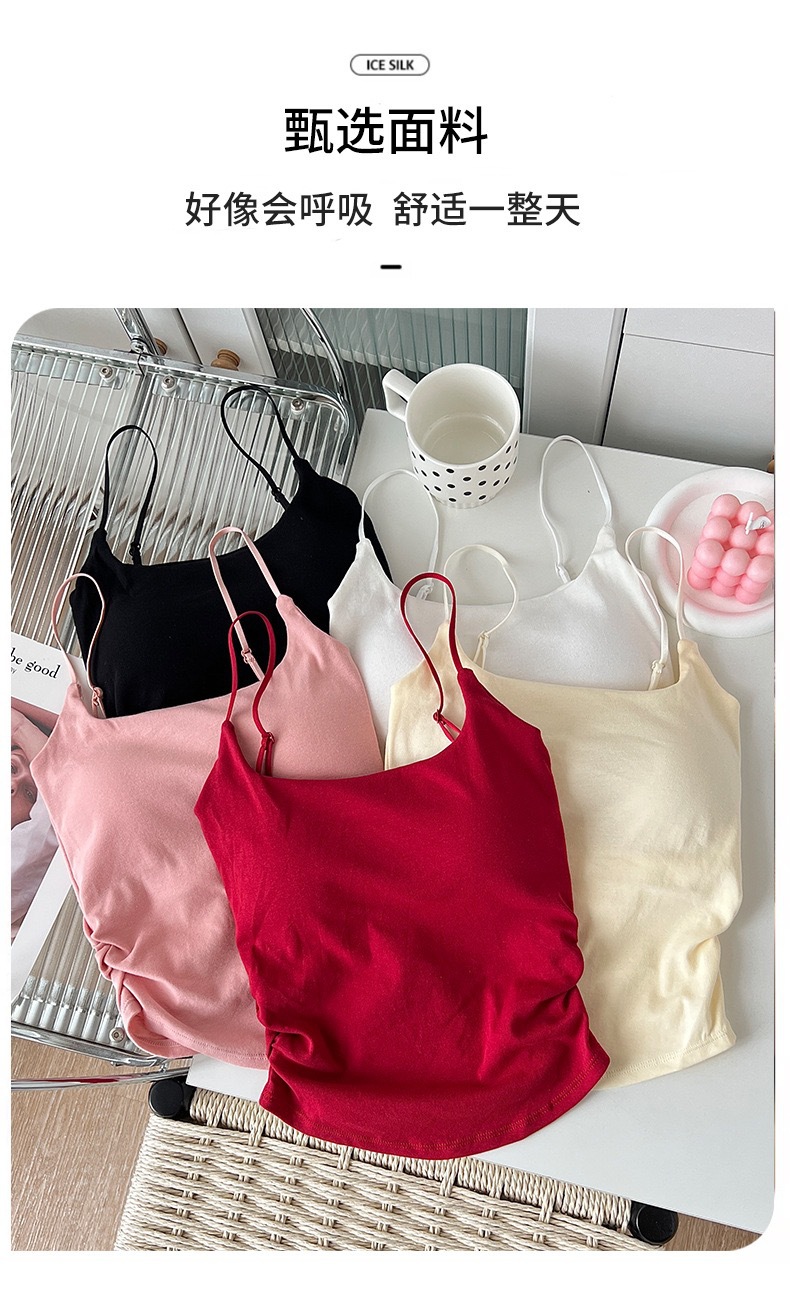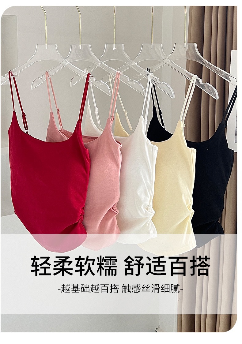 새로운 스타일 순수한 달콤하고 매운 디자인 Pleated Camisole 여성 벨트 가슴 패드 내부 착용 외부 착용 슬림 핏 아름다운 여름 옷스토어 가기