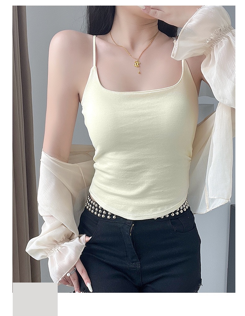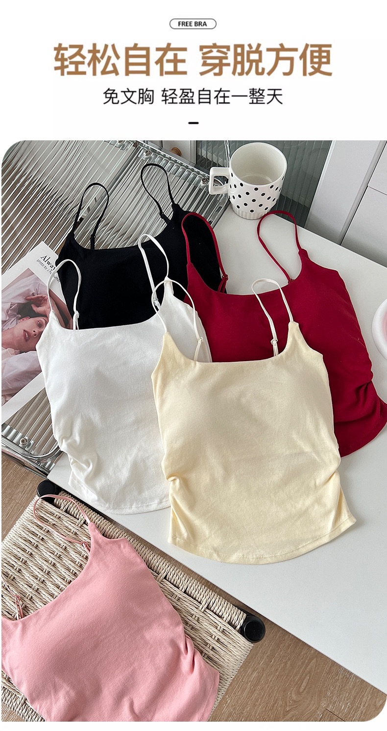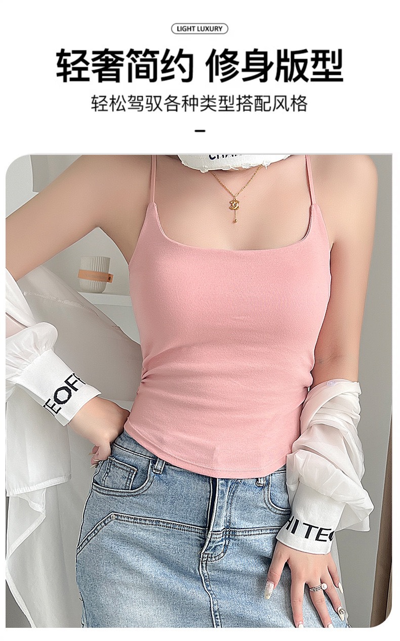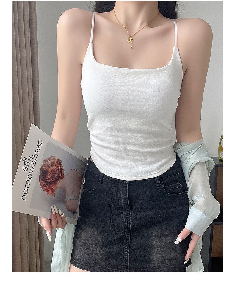새로운 스타일 순수한 달콤하고 매운 디자인 Pleated Camisole 여성 벨트 가슴 패드 내부 착용 외부 착용 슬림 핏 아름다운 여름 옷
