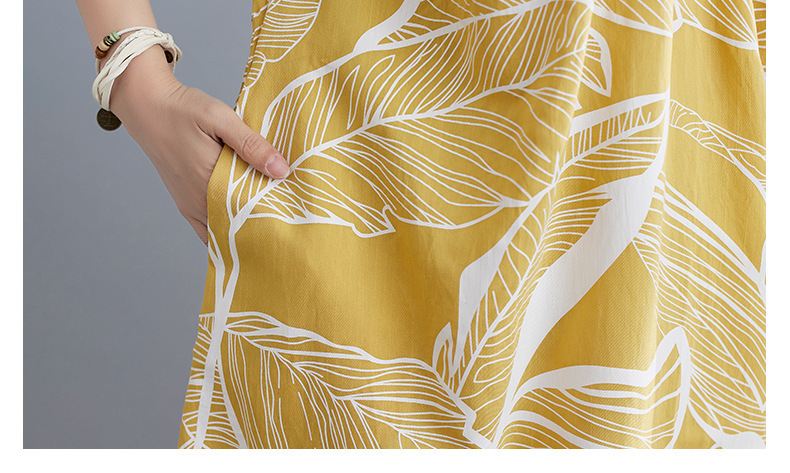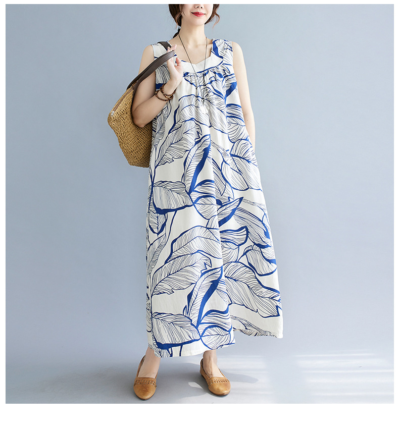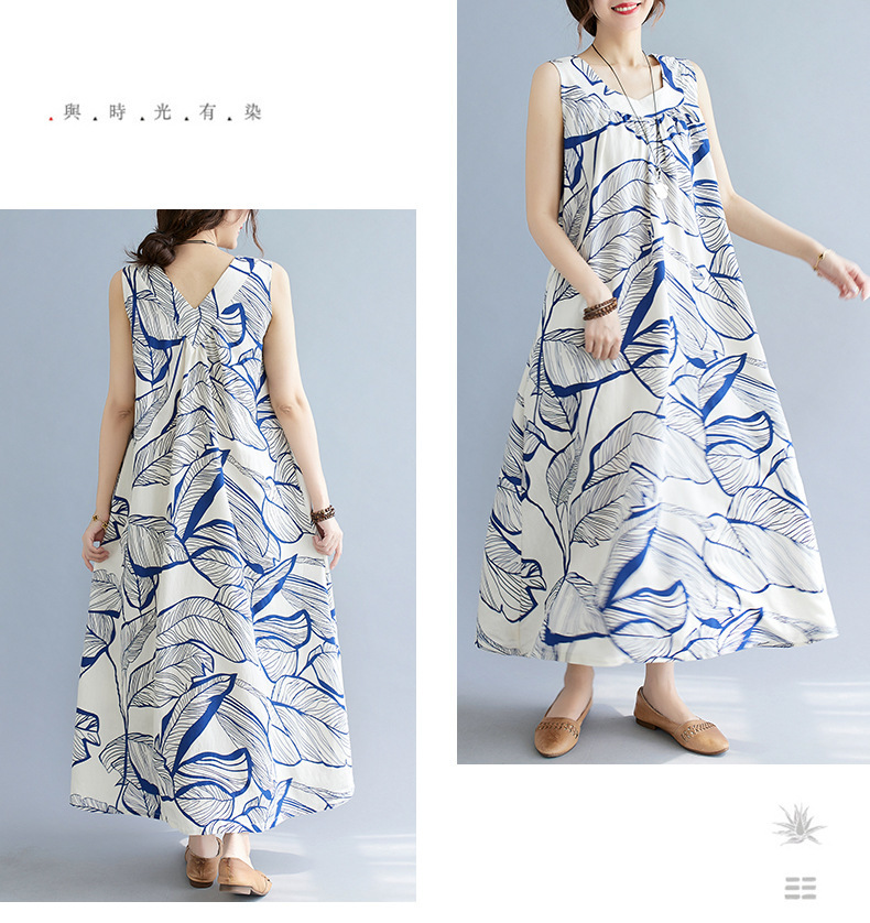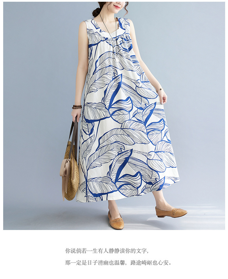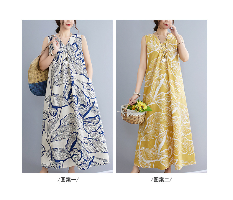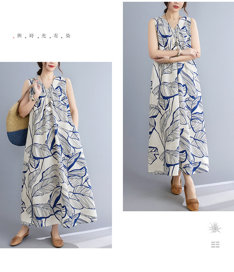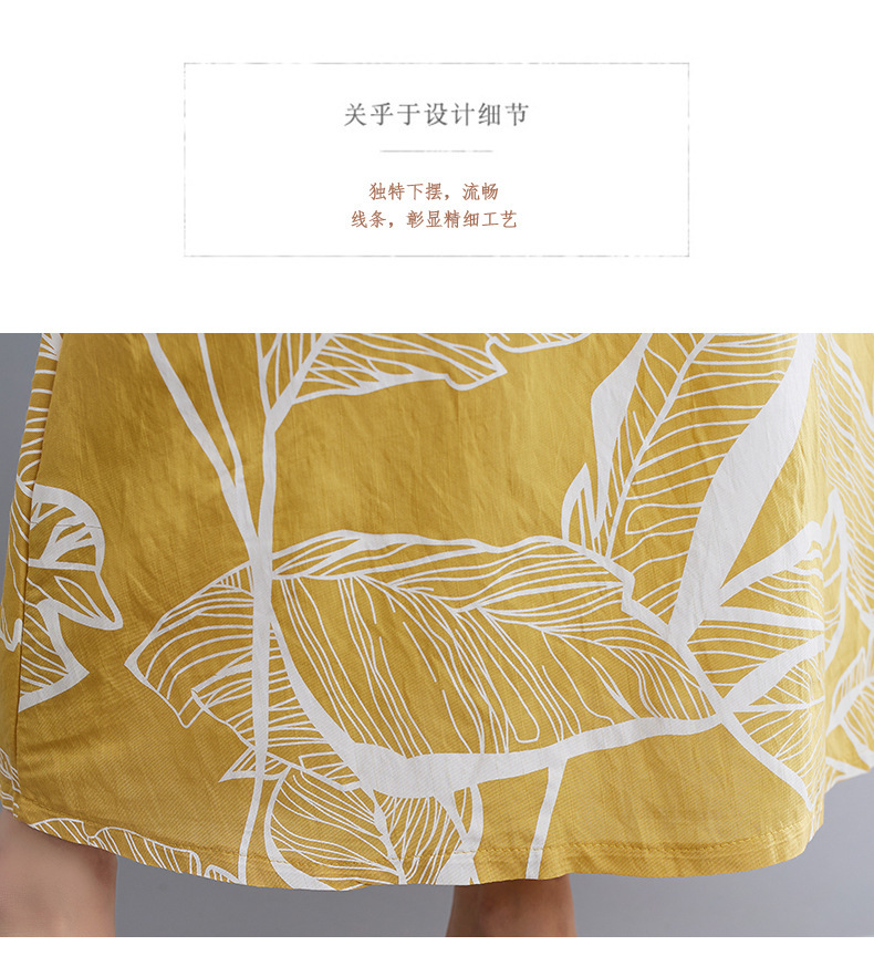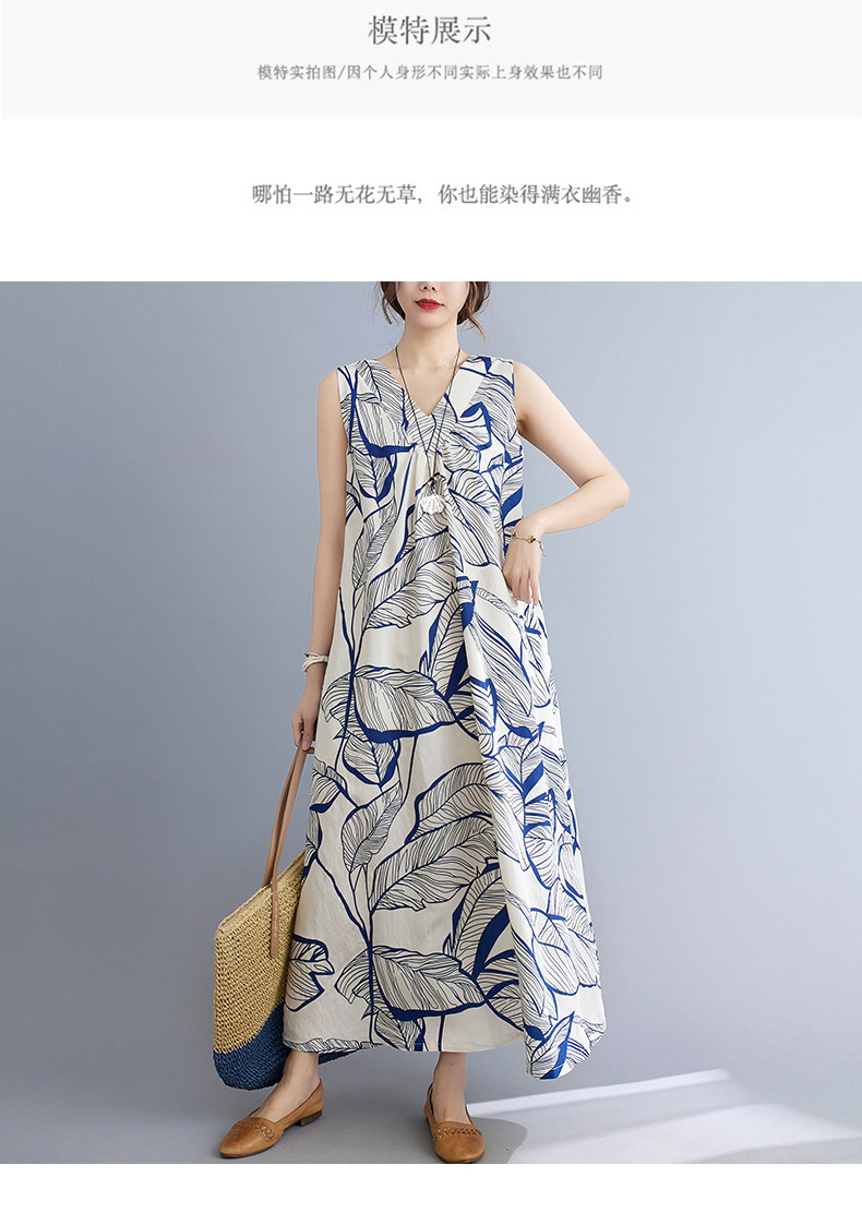느슨한 플러스 사이즈 외국식 나이를 줄이는 잎 인쇄의 실제 샷 한국어 버전 긴 무릎 앞뒤 원피스스토어 가기