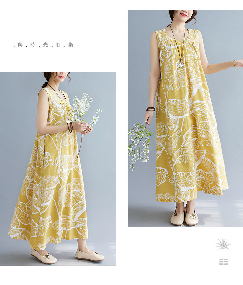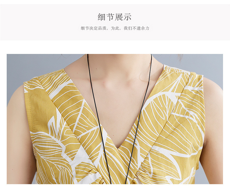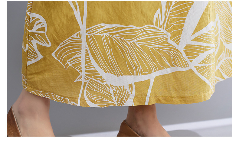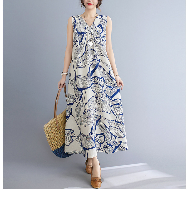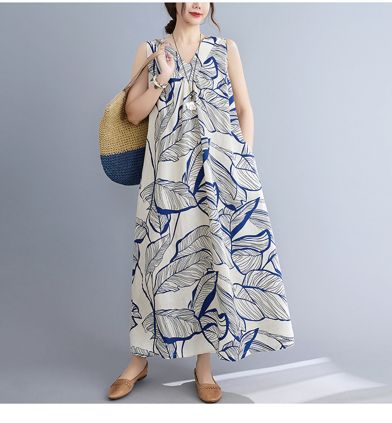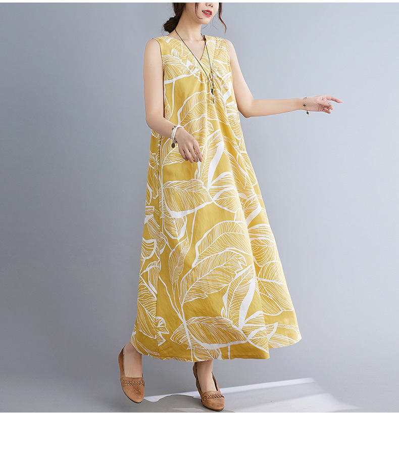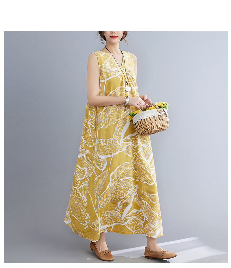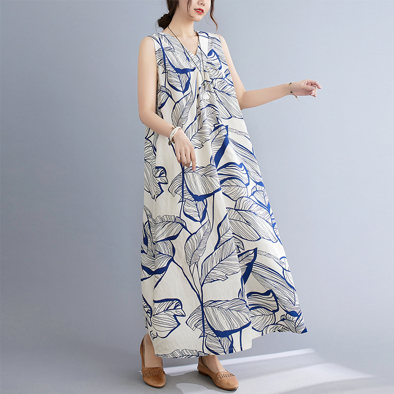 느슨한 플러스 사이즈 외국식 나이를 줄이는 잎 인쇄의 실제 샷 한국어 버전 긴 무릎 앞뒤 원피스스토어 가기