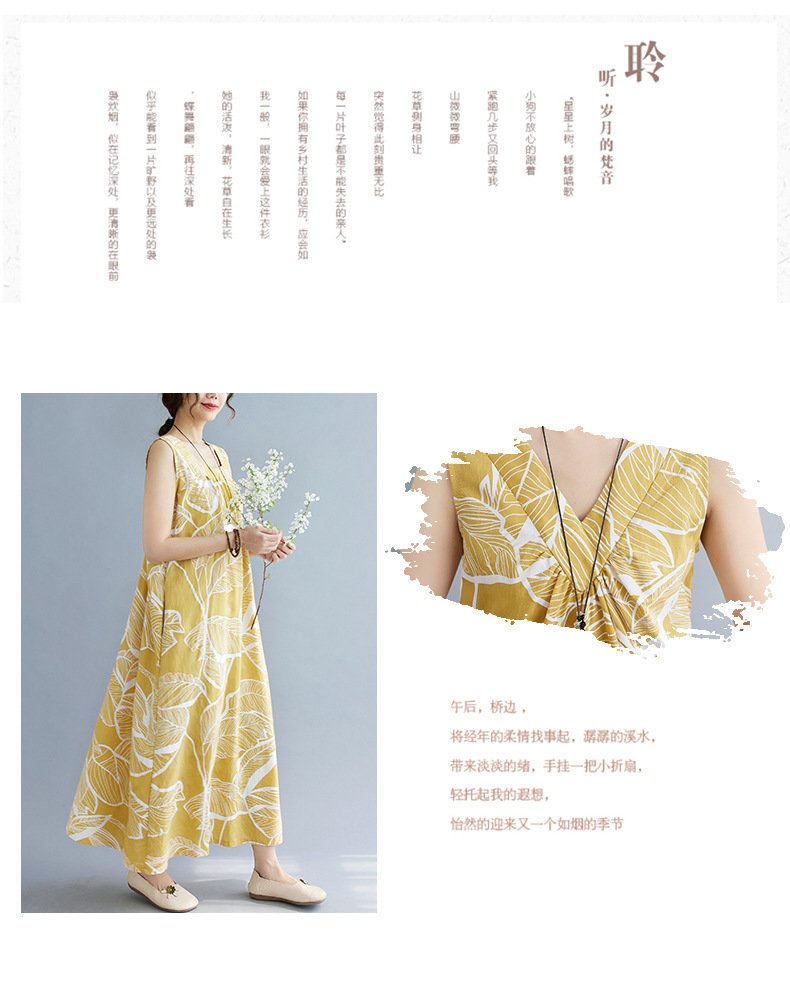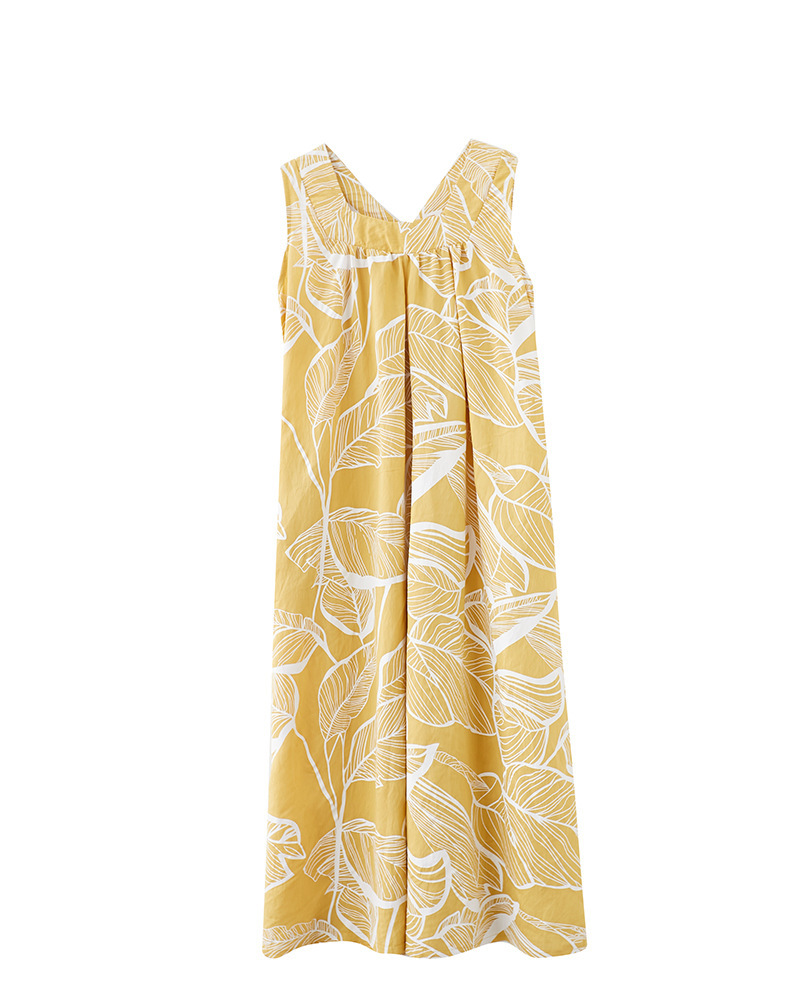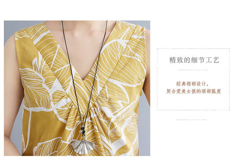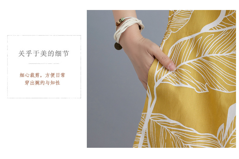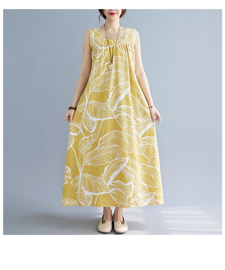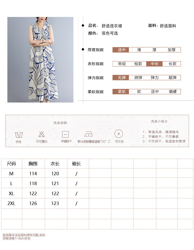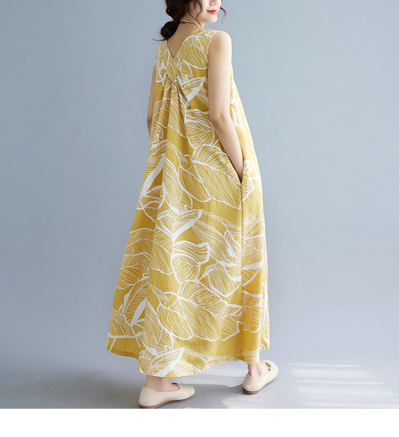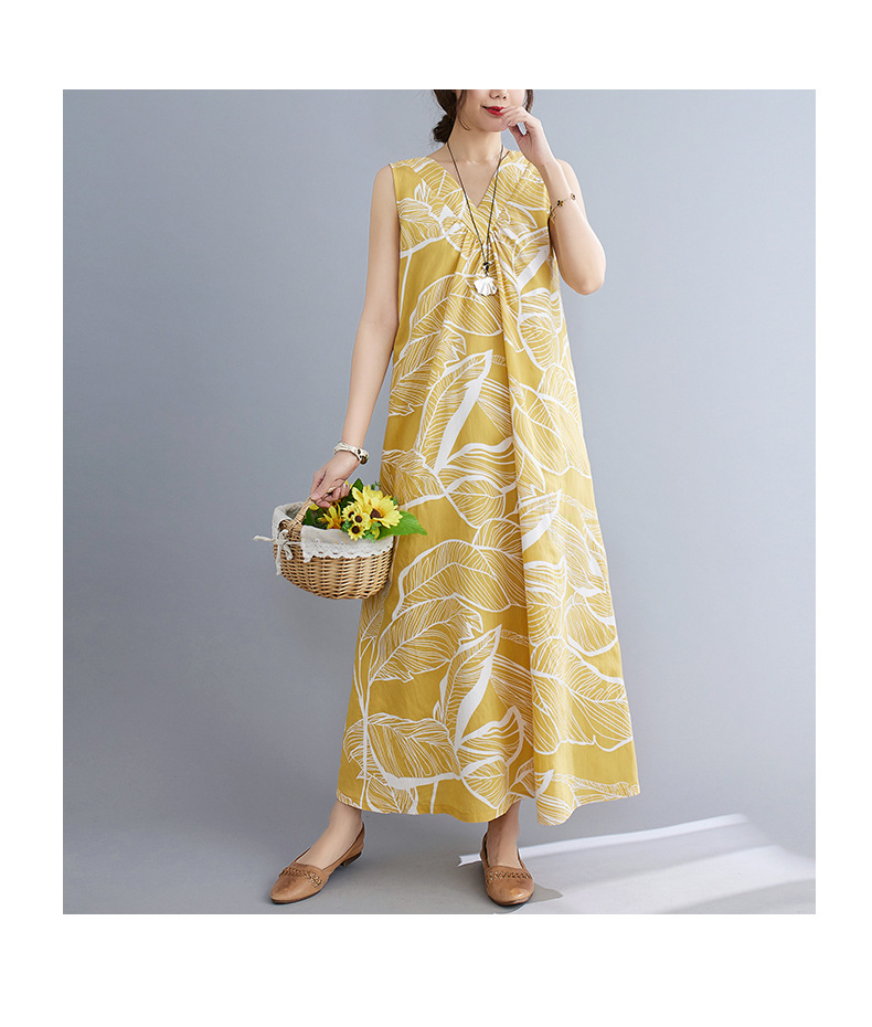 느슨한 플러스 사이즈 외국식 나이를 줄이는 잎 인쇄의 실제 샷 한국어 버전 긴 무릎 앞뒤 원피스스토어 가기