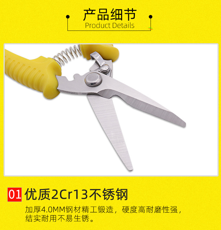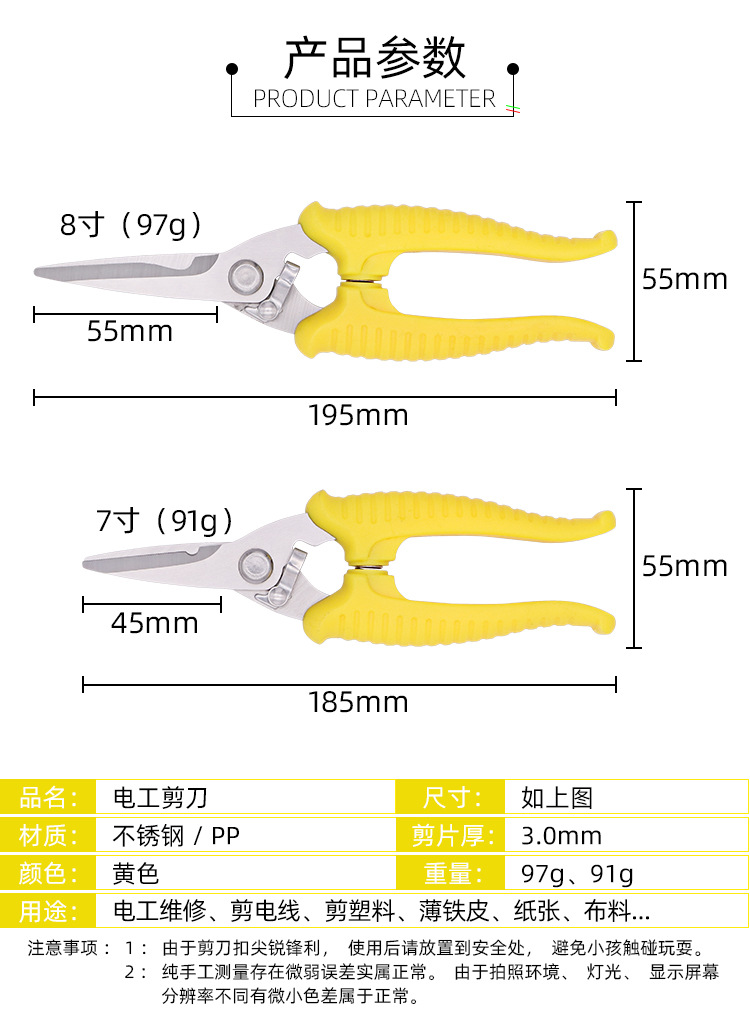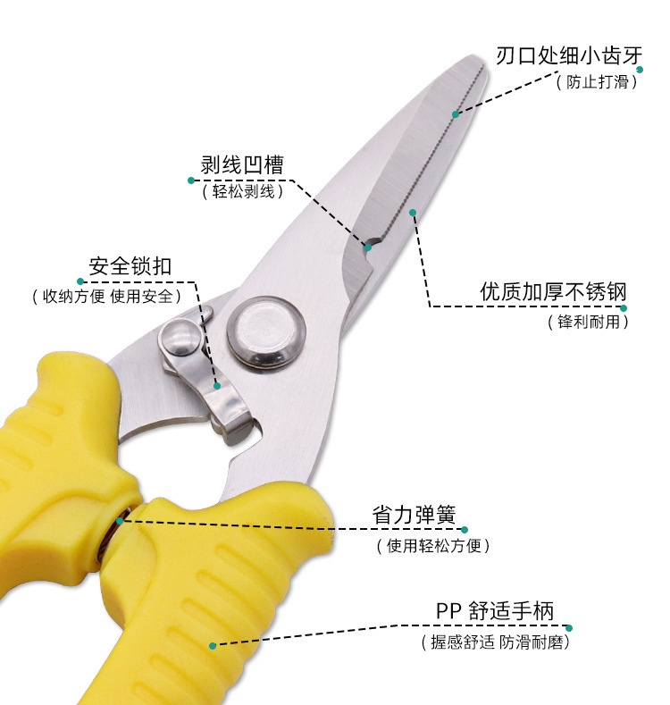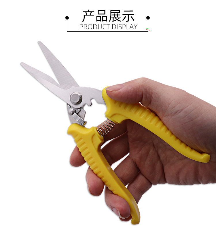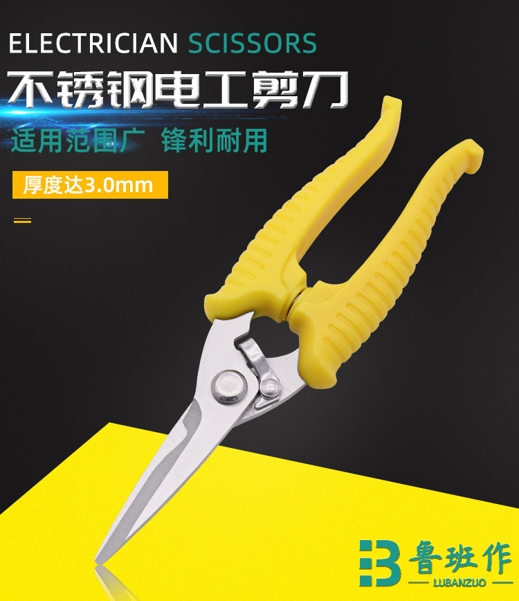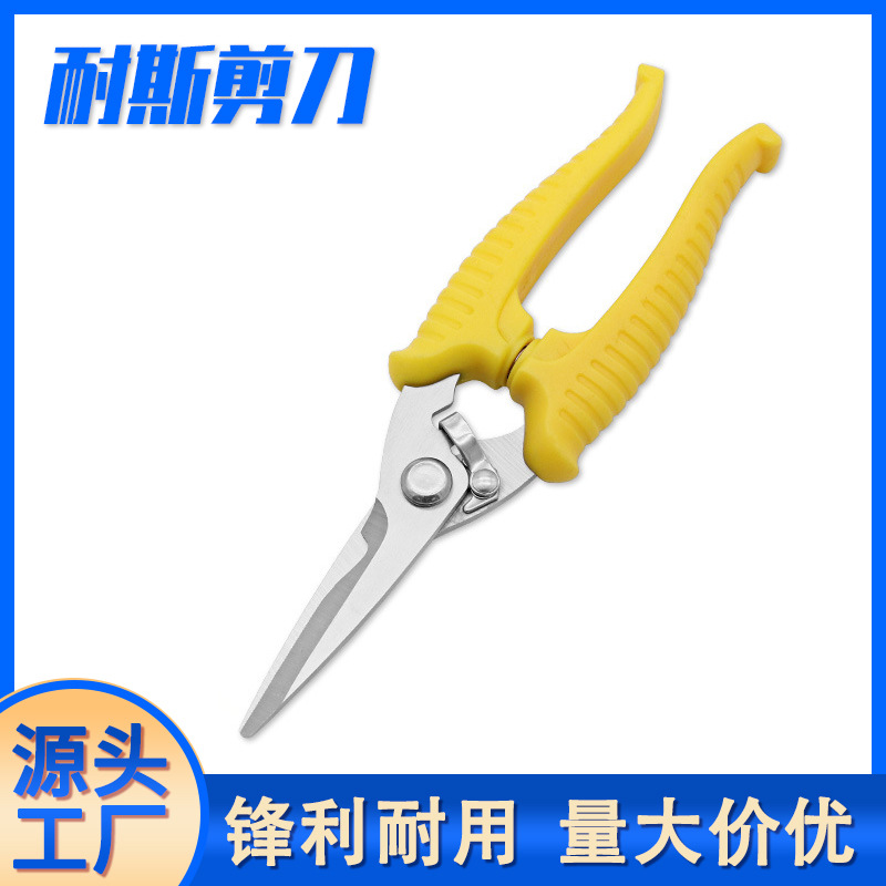공장 도매 pp 핸들 전기 가위 작은 철 시트 가위 스테인레스 스틸 트렁킹 전기 가위스토어 가기
