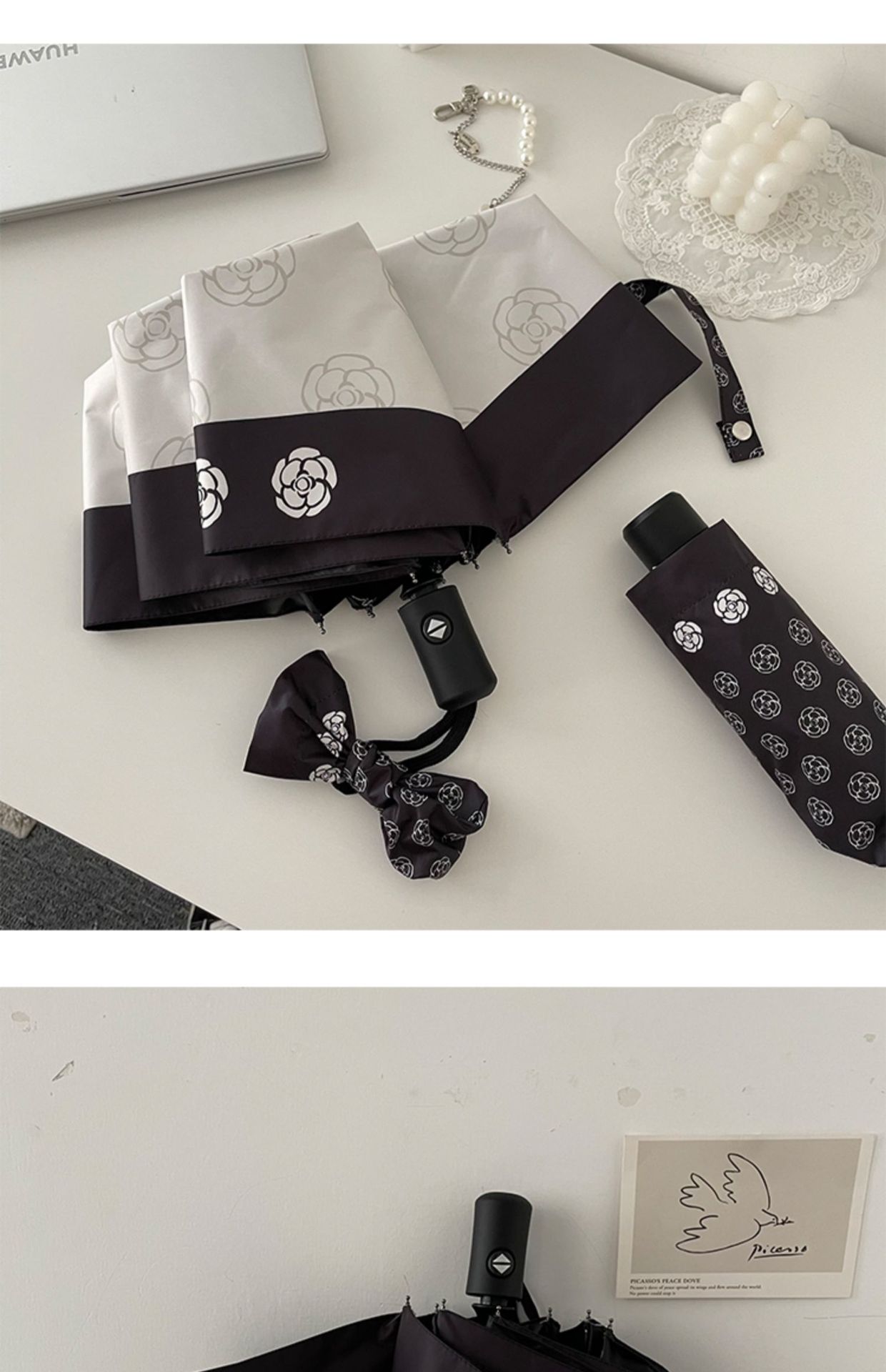 • 빈티지 스케치 로즈-트라이 폴드 자동
