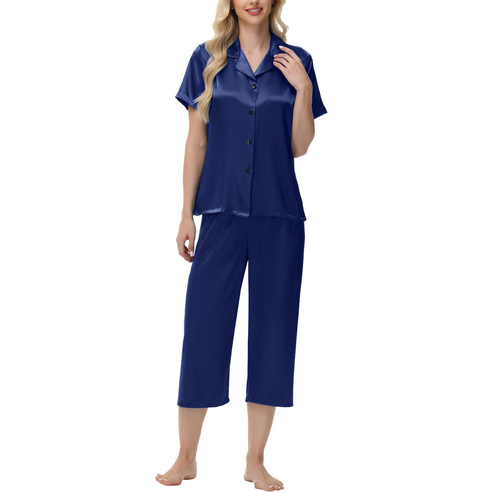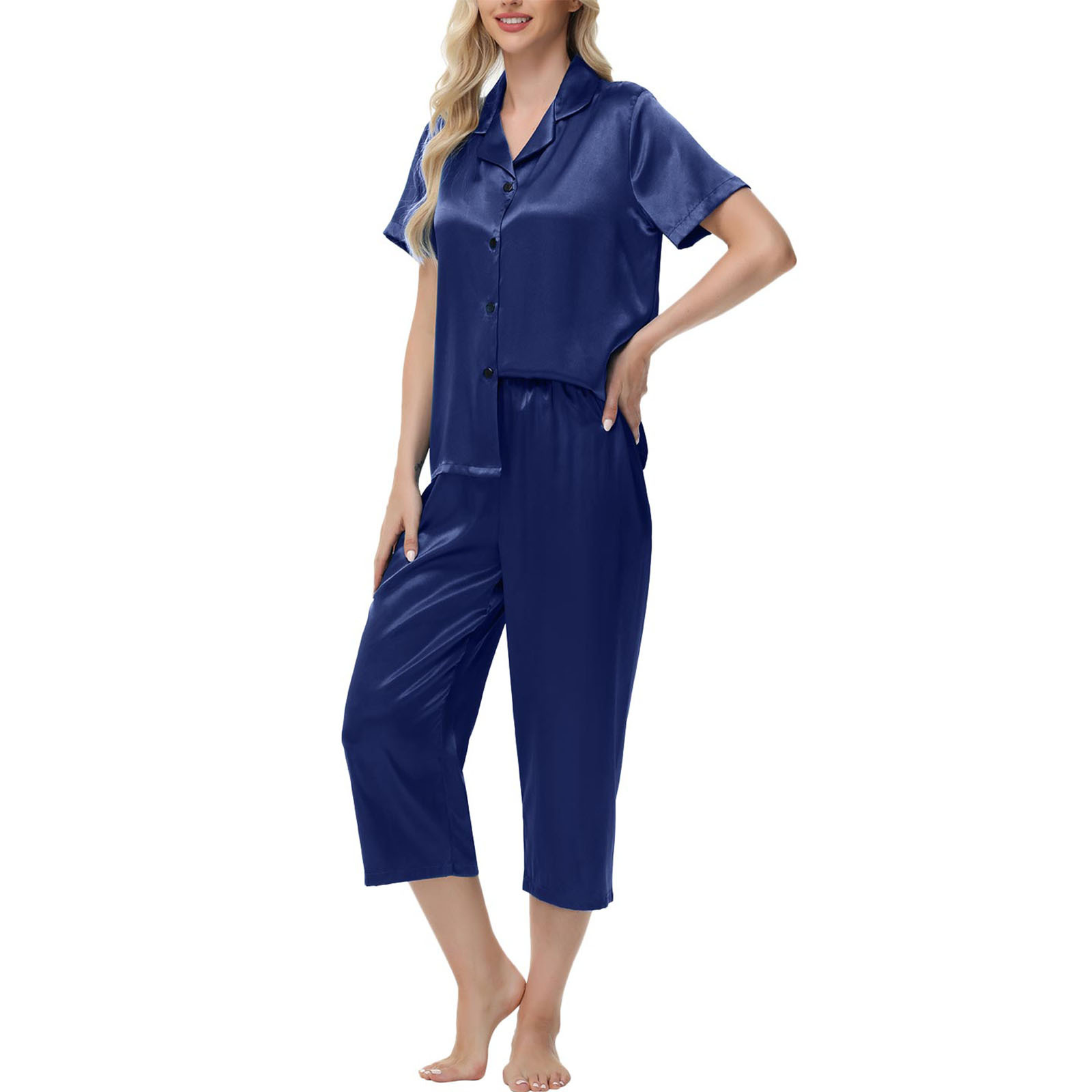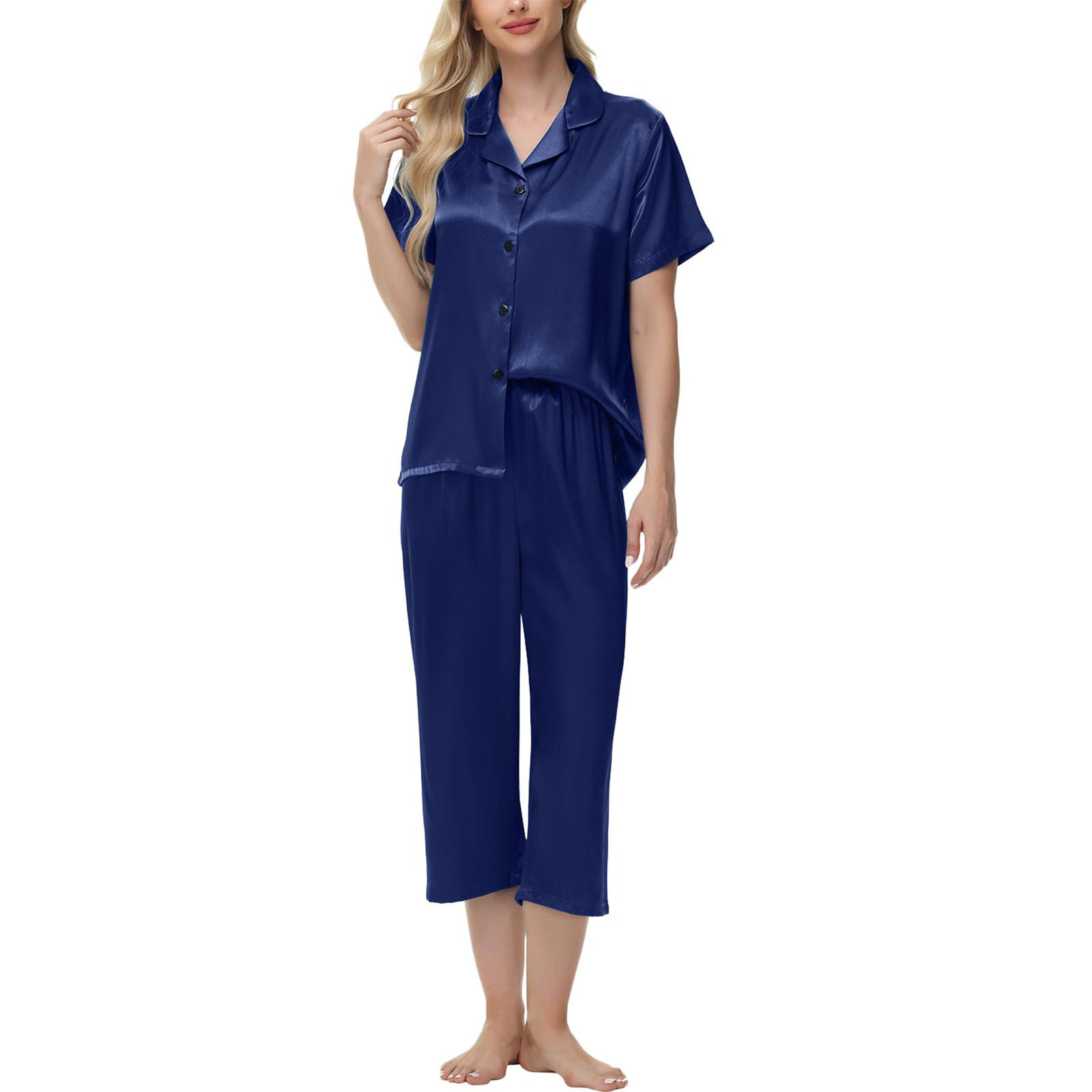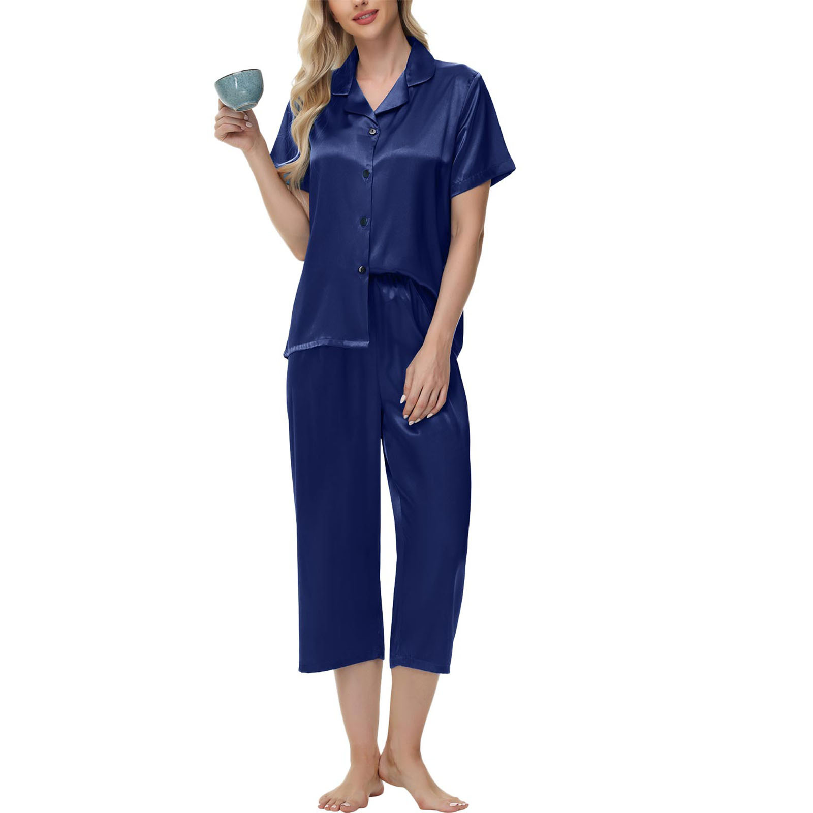 대외 무역 국경 아마존 유럽과 미국의 아이스 실크 파자마 새틴 세트 반팔 자른 바지 여성용 홈 옷