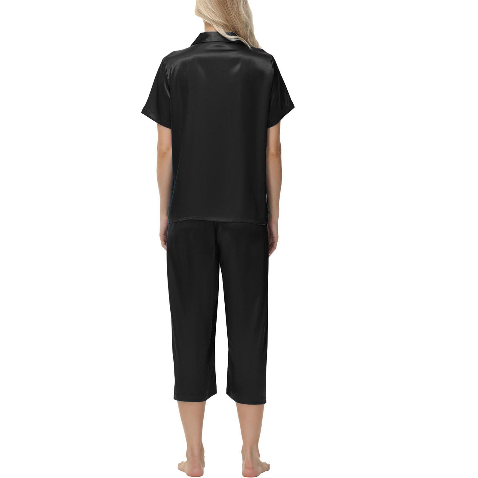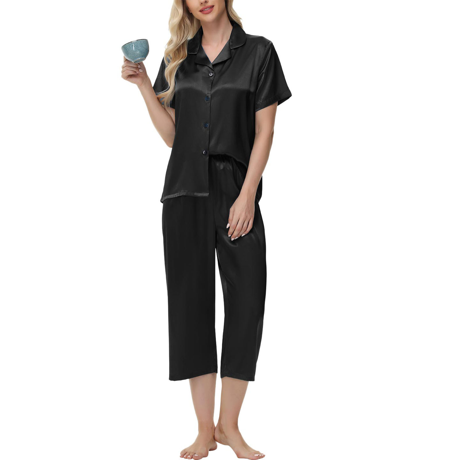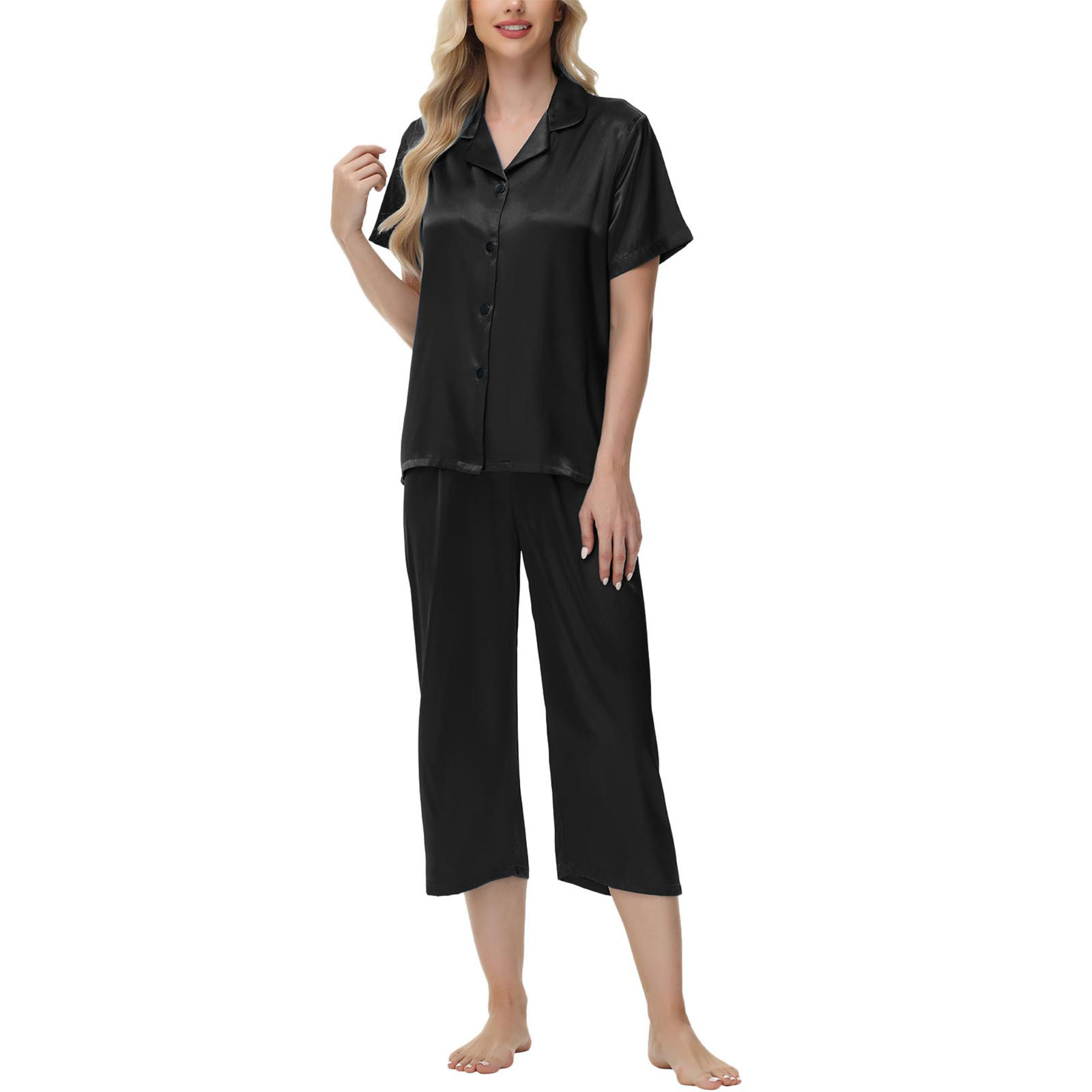 대외 무역 국경 아마존 유럽과 미국의 아이스 실크 파자마 새틴 세트 반팔 자른 바지 여성용 홈 옷