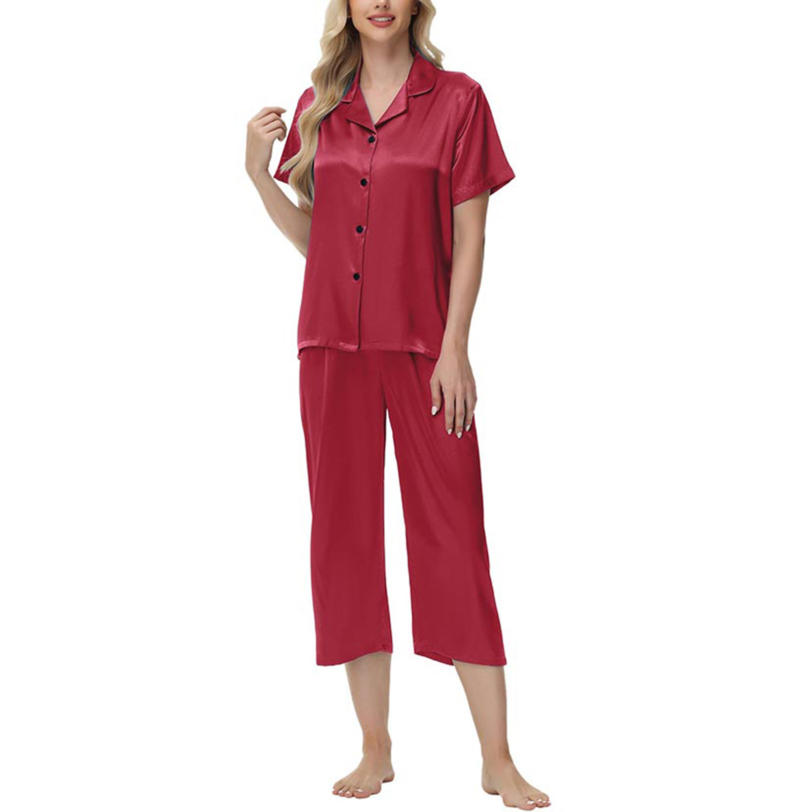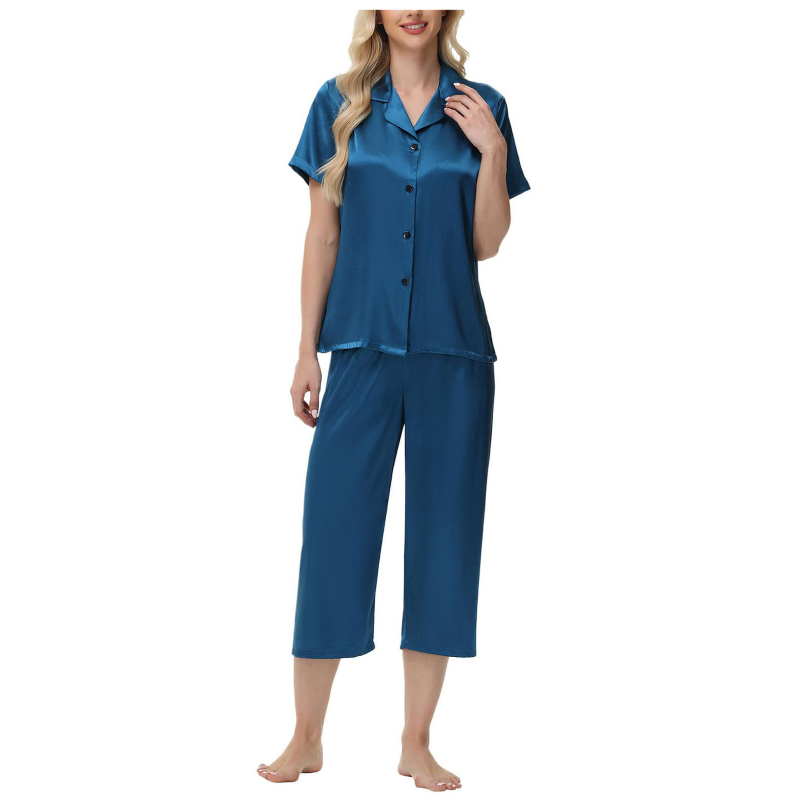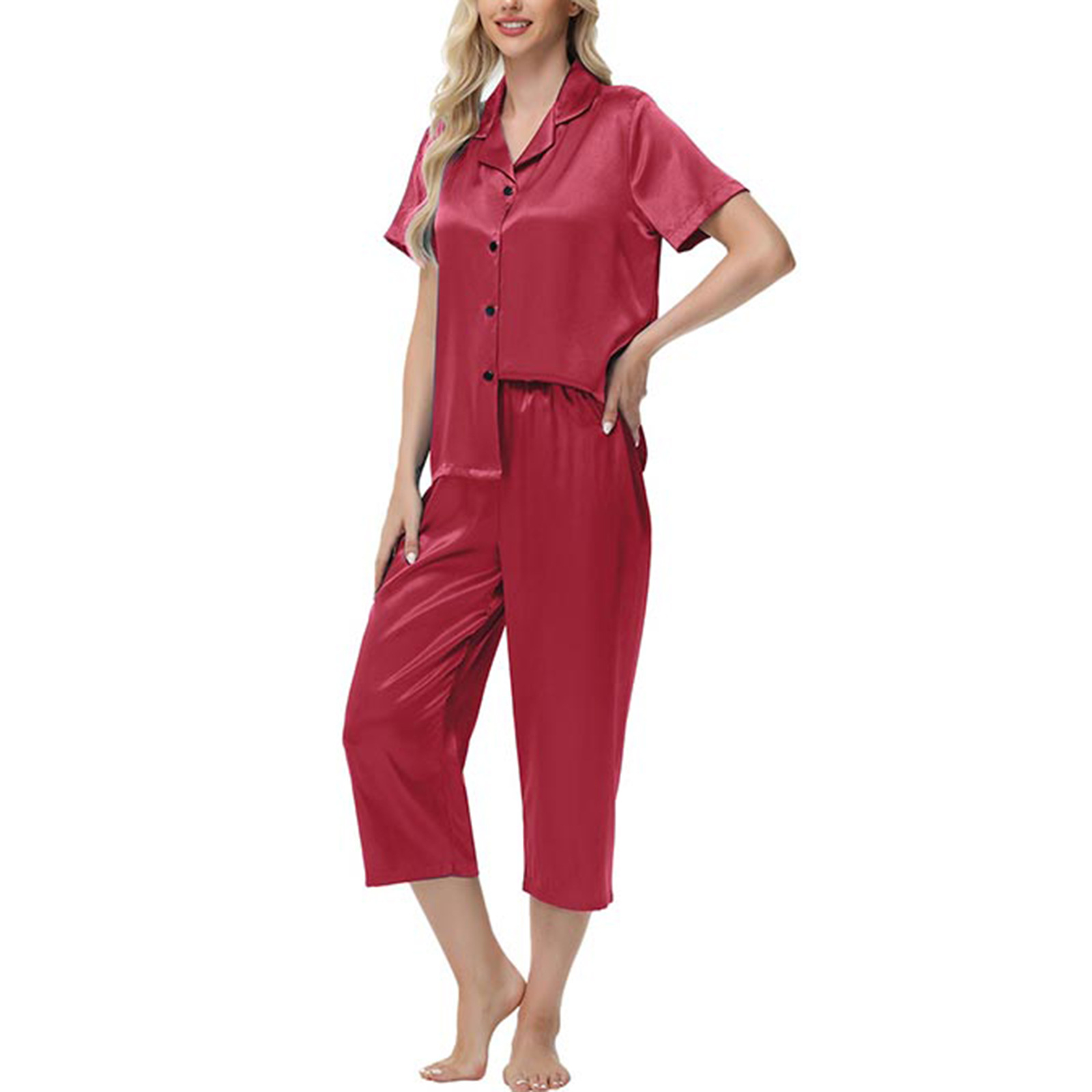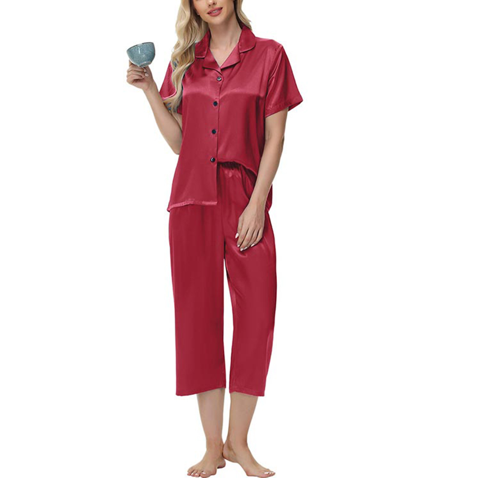 대외 무역 국경 아마존 유럽과 미국의 아이스 실크 파자마 새틴 세트 반팔 자른 바지 여성용 홈 옷