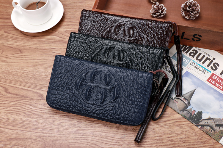 트렌디 한 브랜드 남성용 긴 지퍼 클러치 백 비즈니스 캐주얼 유럽과 미국 패션 대용량 악어 패턴 멀티 카드 지갑스토어 가기