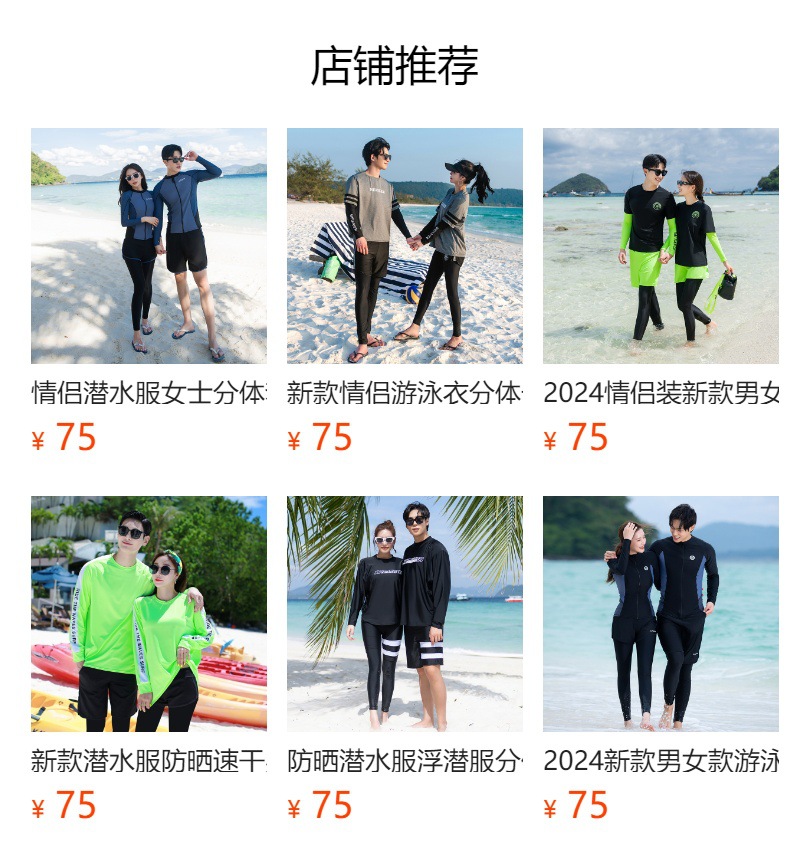 다이빙 슈트 긴팔 분리형 커플용 긴바지 자외선 차단 속건 비키니 서핑 수영복 세트 스노클링 슈트 해파리 방지스토어 가기