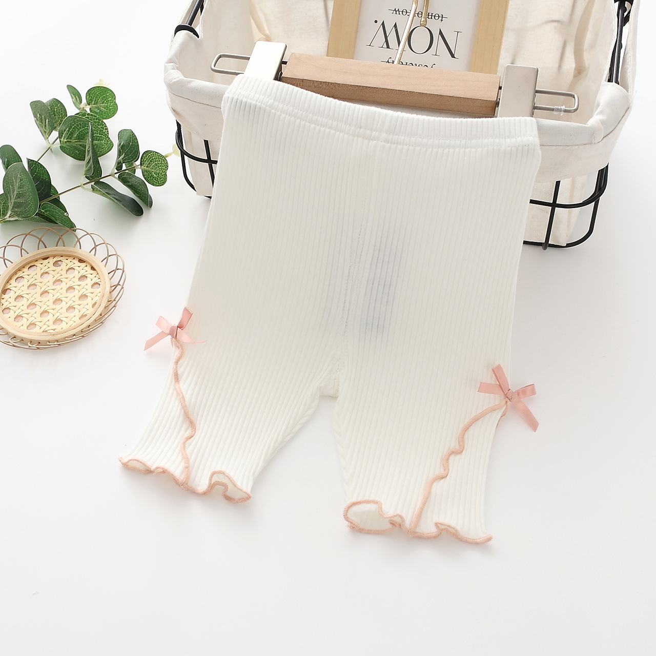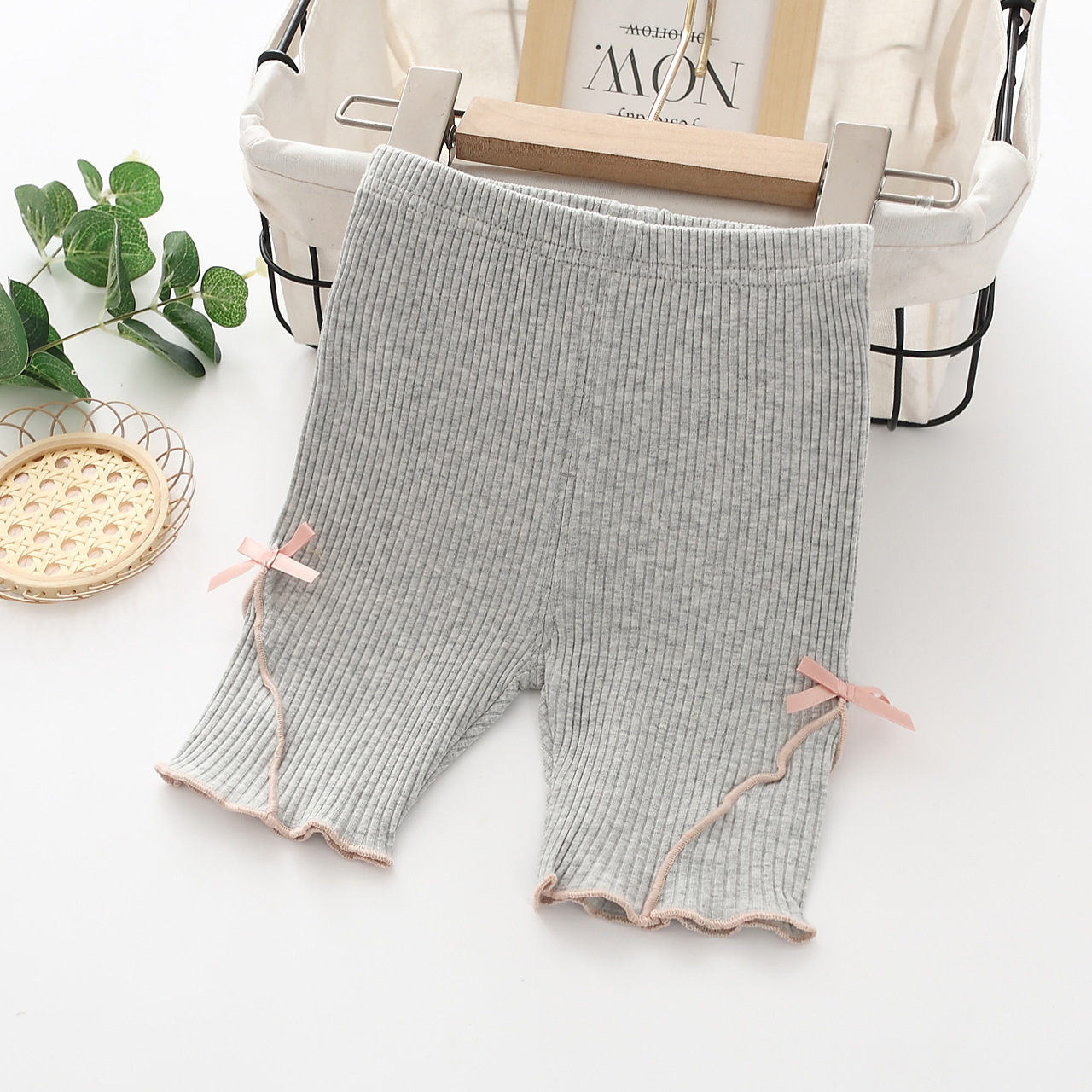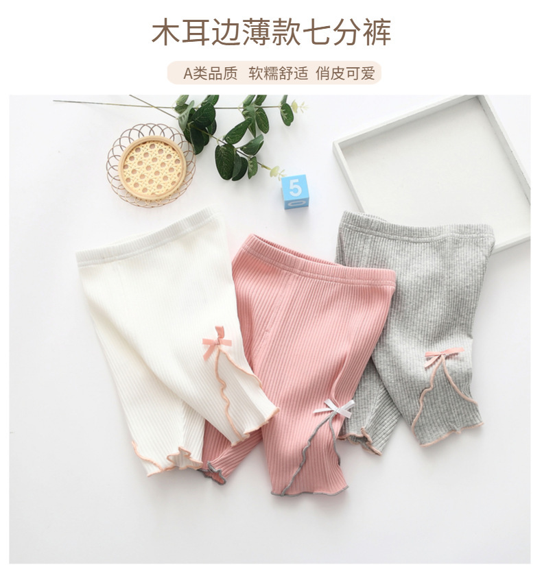 새로운 여름 여아용 7부 레깅스, 얇은 아동복, 0-3세 유아용 반바지, 아동용 오픈형 반바지