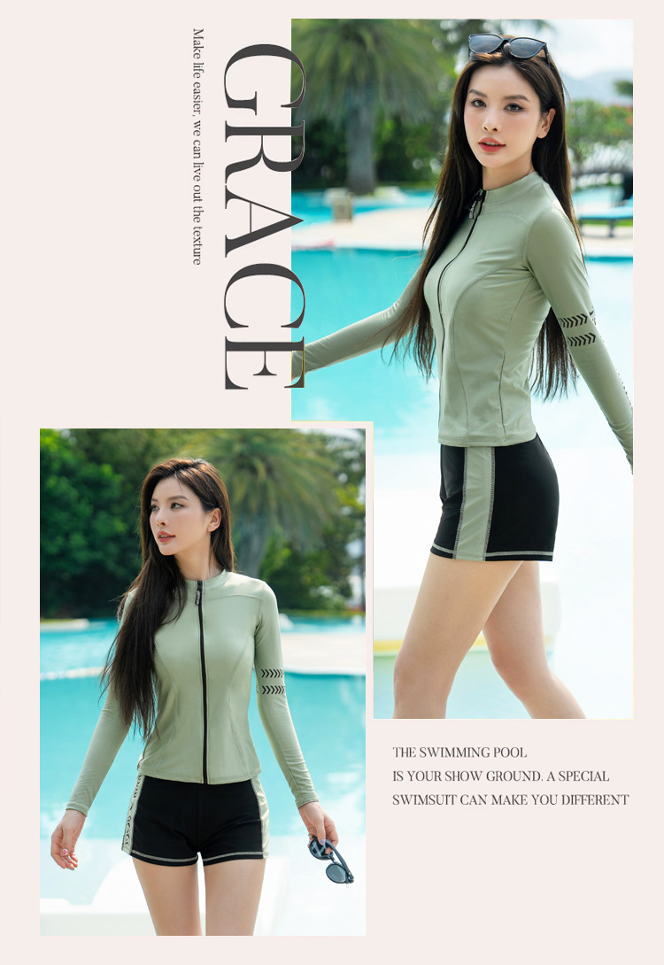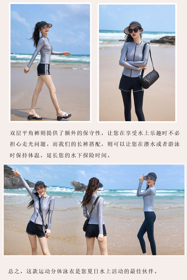 수영복 여성의 2024 새로운 수영 선 스크린 3 피스 세트 보수 분할 긴 소매 바지 수영장스토어 가기