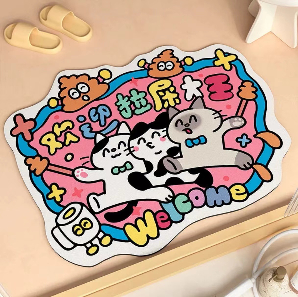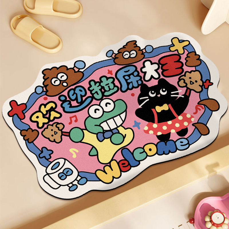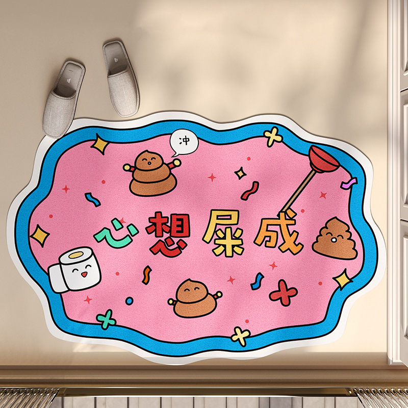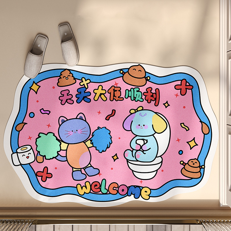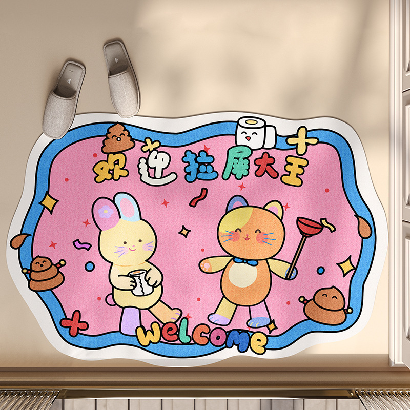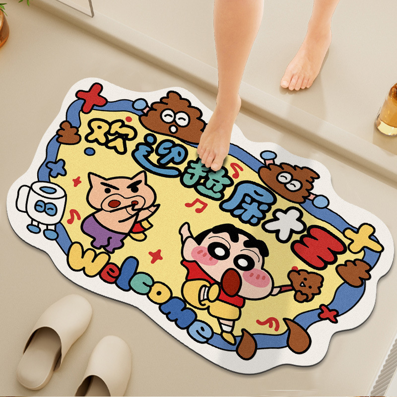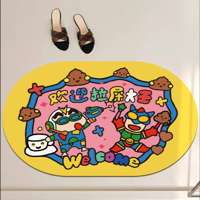 만화 똥 킹 물 흡수성 욕실 바닥 매트 욕실 빠른 건조 미끄럼 방지 발 매트 가정용 세척없는 더러운 문 매트