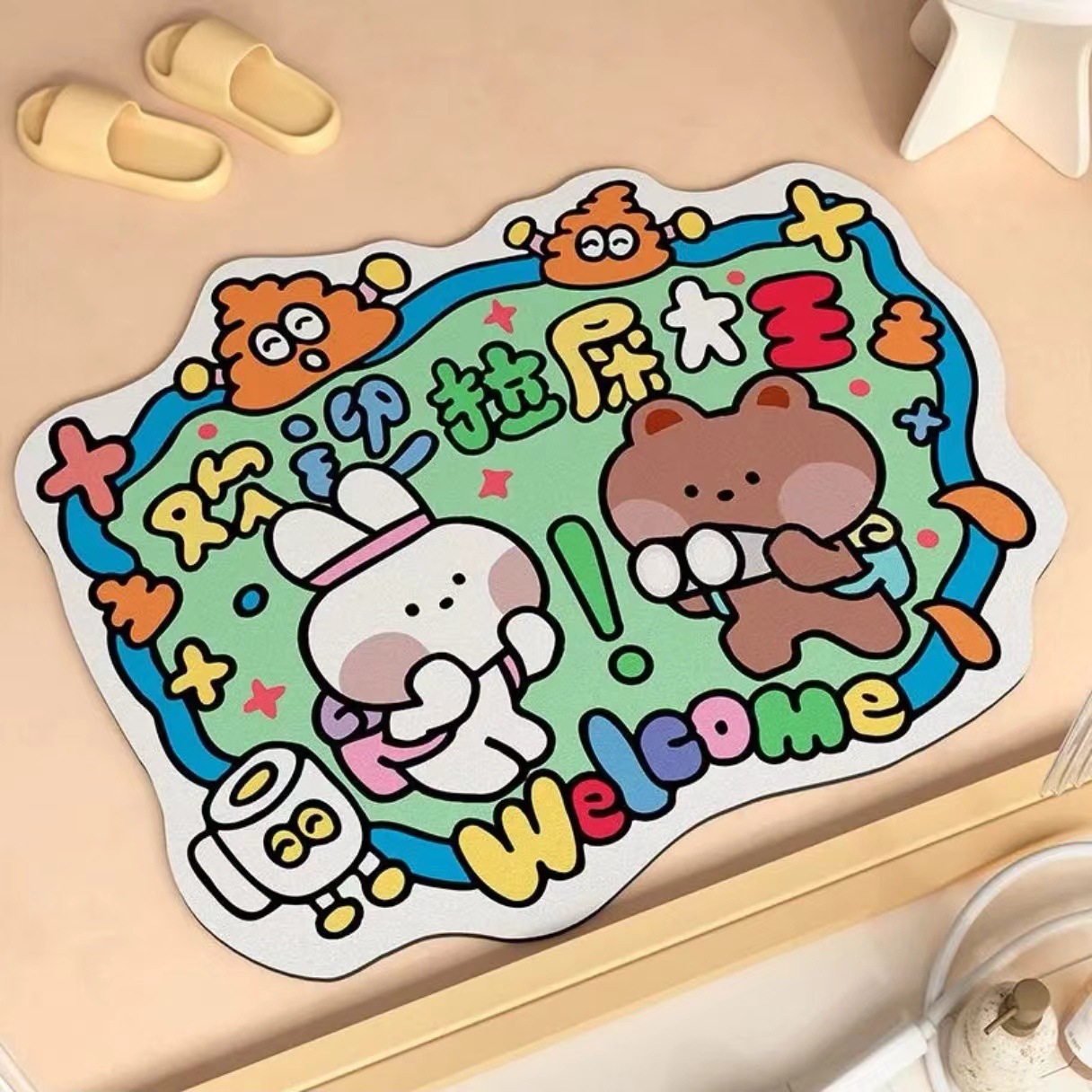 만화 똥 킹 물 흡수성 욕실 바닥 매트 욕실 빠른 건조 미끄럼 방지 발 매트 가정용 세척없는 더러운 문 매트스토어 가기