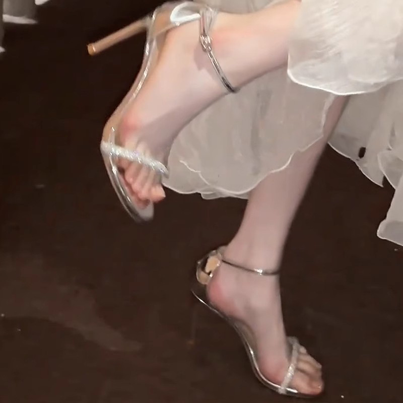 실버 하이힐 여성 2024 년 새 여름 스틸레토 힐 하이 스타일 패션 샌들, 라인스톤 외부 착용 여성 신발스토어 가기