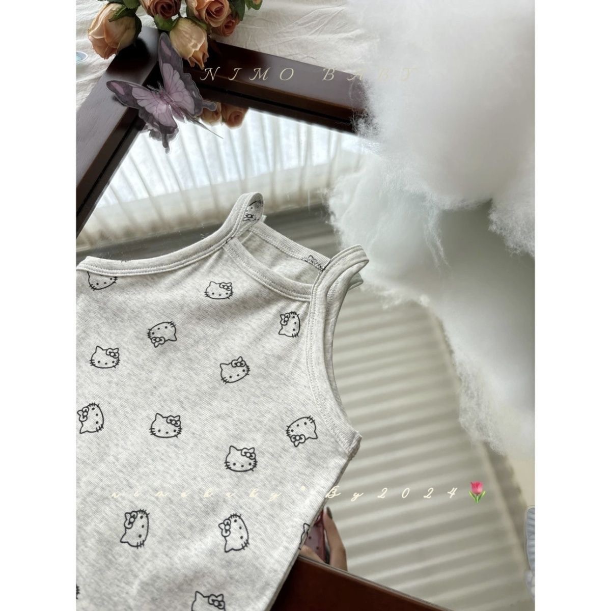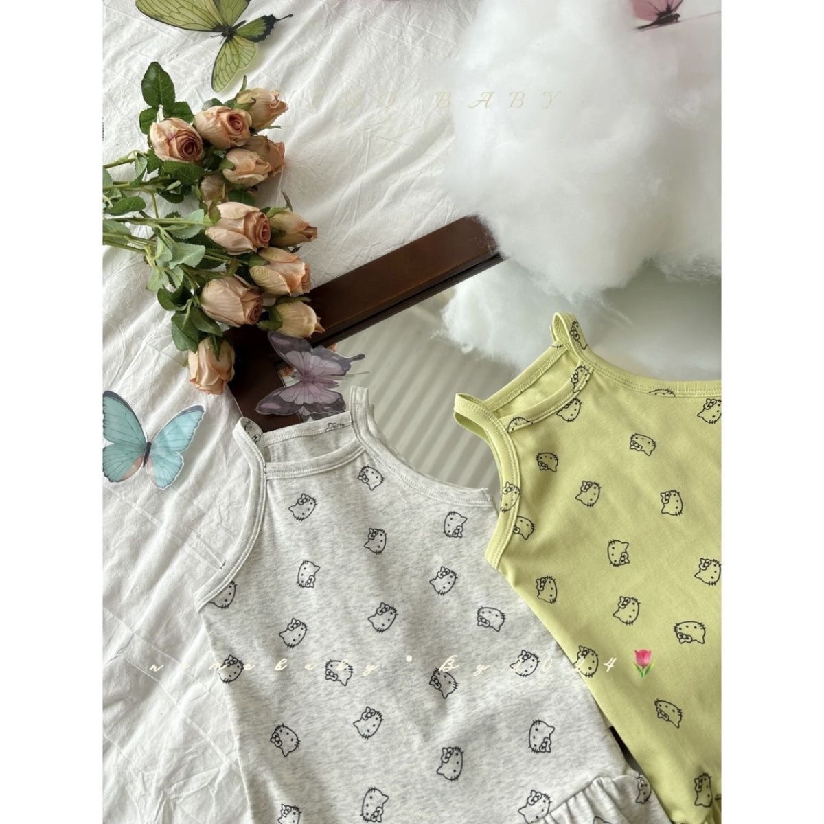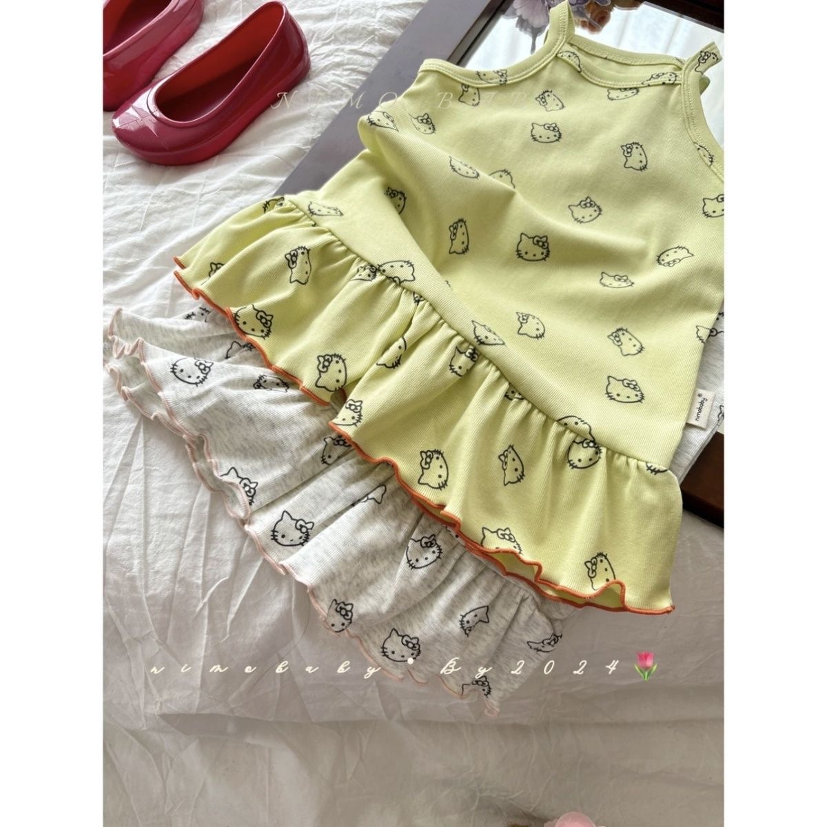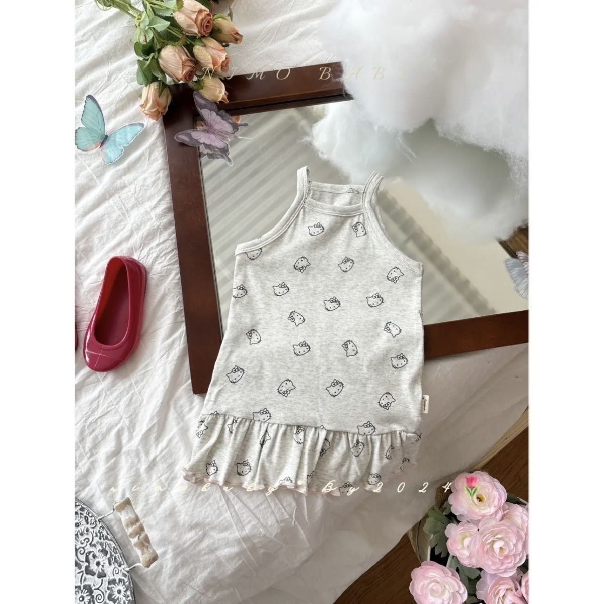 한국 아동복 소녀 원피스 24 여름 새 아기 귀여운 kt 고양이 프린트 조끼 치마 어린이 치마 조수