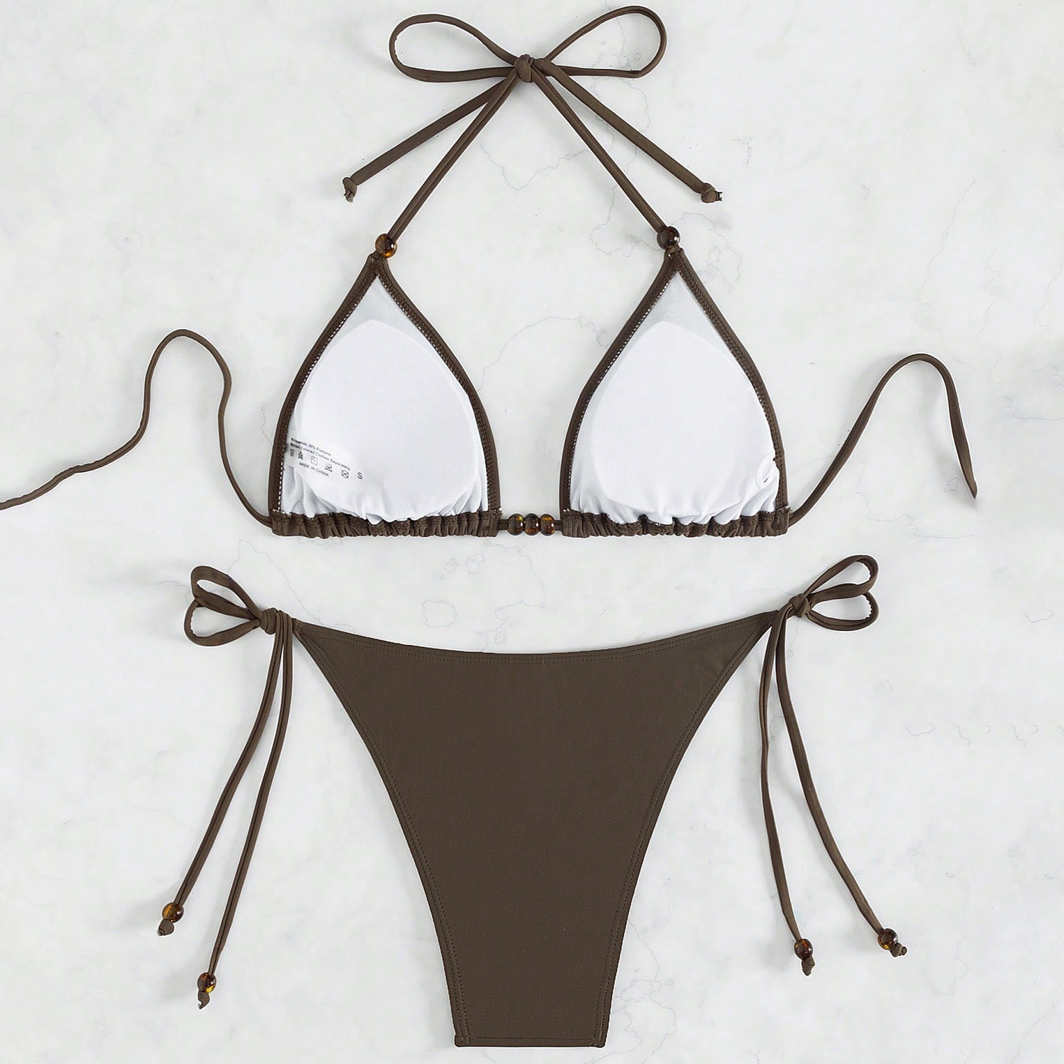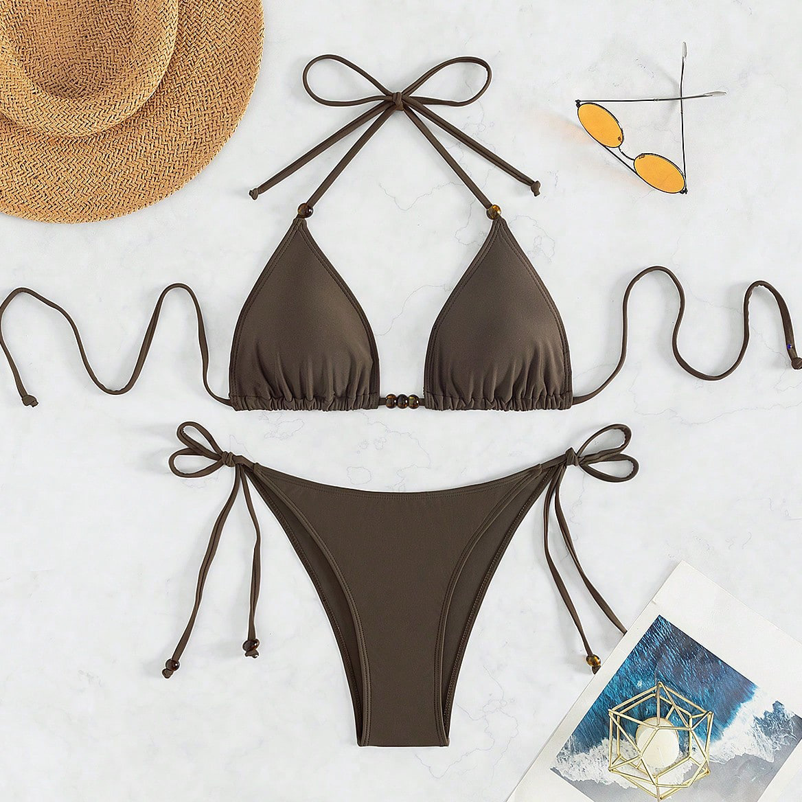 유럽과 미국의 섹시한 여성용 비키니 수영복, 단색 스트랩 끈으로 묶는 3피스 비키니, 분리형 수영복, 해외 직구 가능스토어 가기