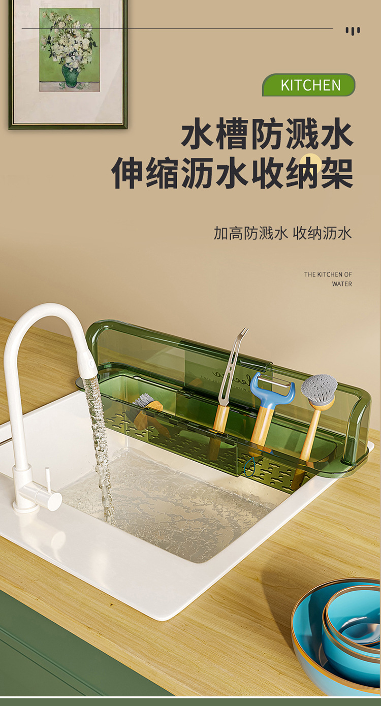 배수 주방 다기능 저장 랙 저장 스플래쉬 방지 물 유지 보드 선반 가정용 싱크대 야채 세척 드레인 랙