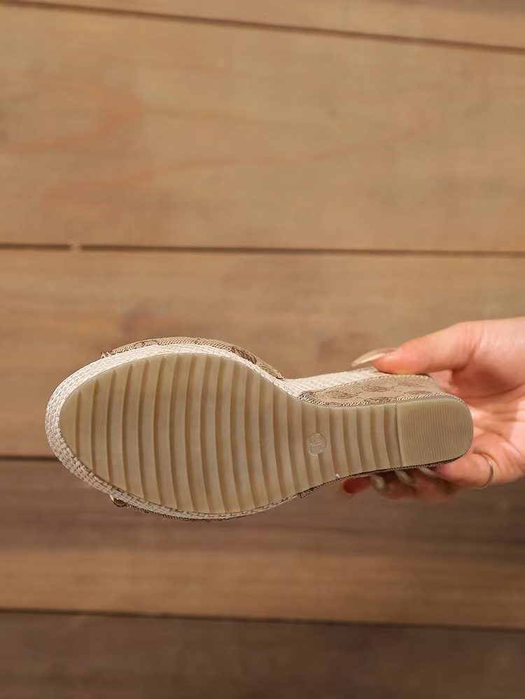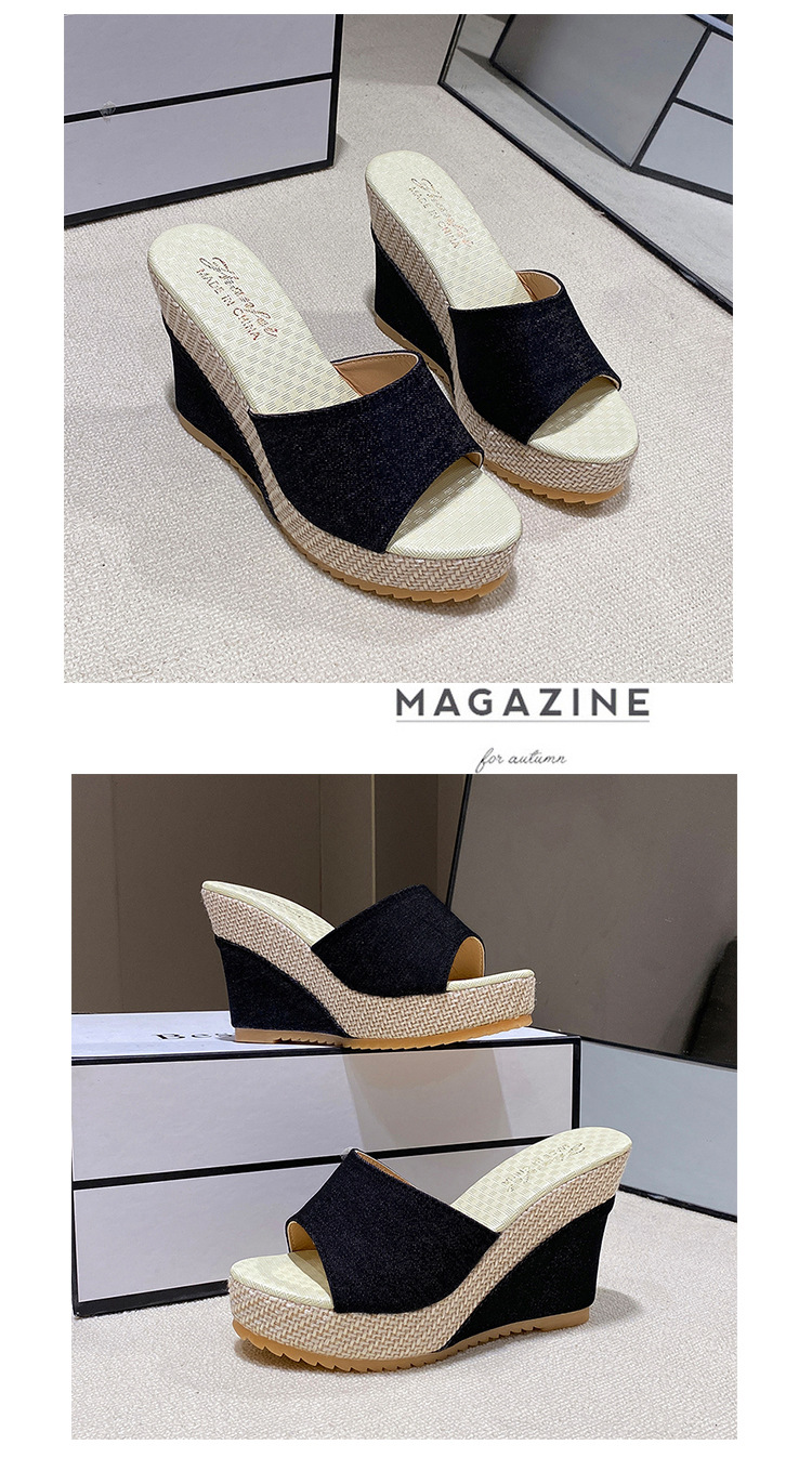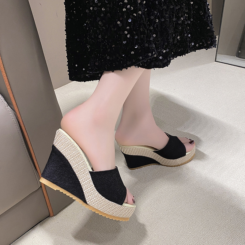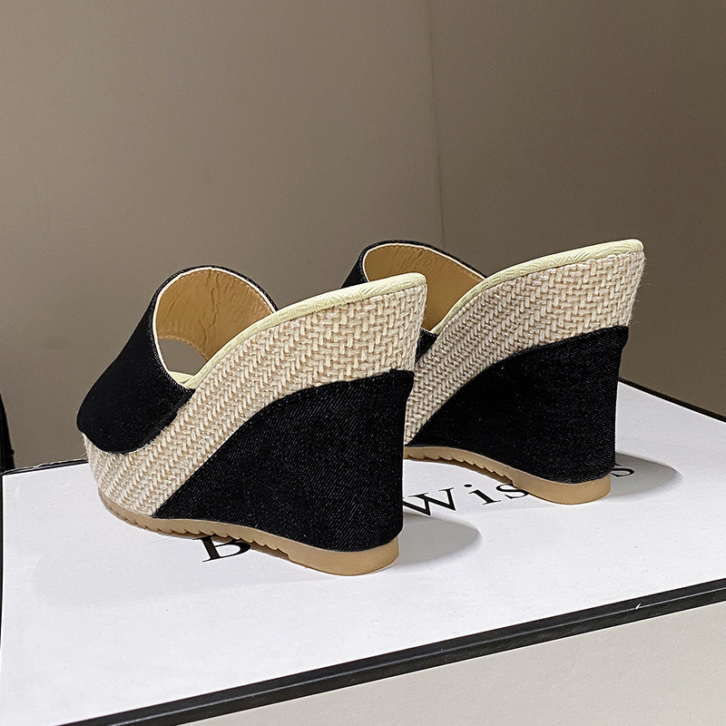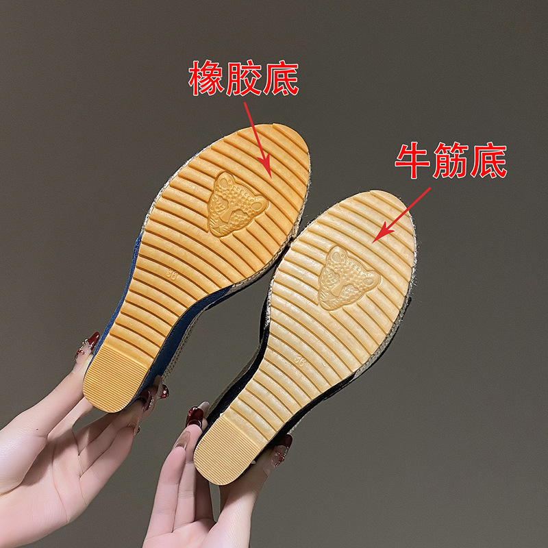 2024 유럽과 미국의 가벼운 플랫폼 바닥 슬리퍼를 데님 새로운 두꺼운 밑창 한 단어 헤어 테일 입