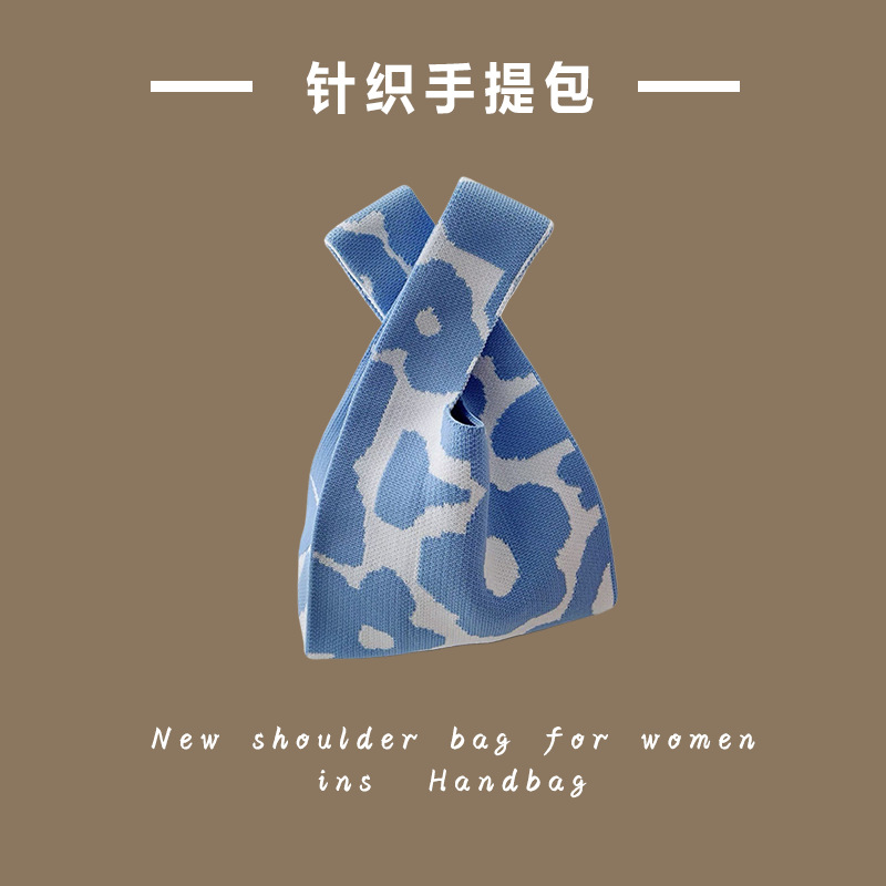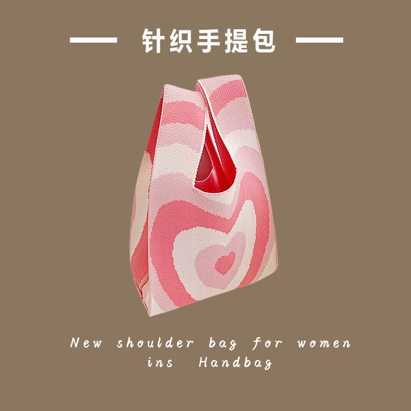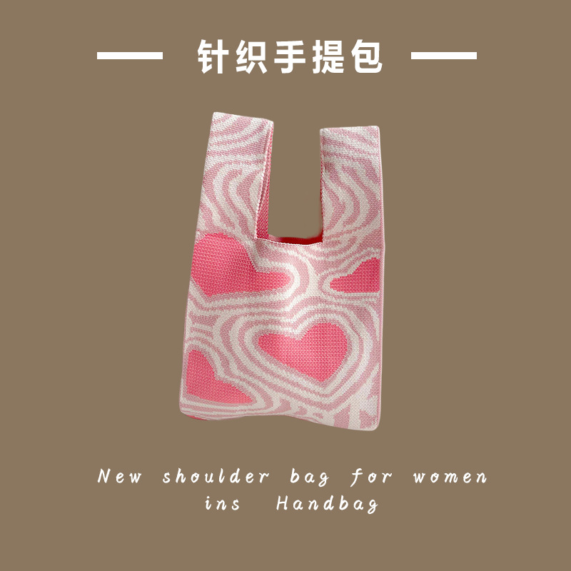 대용량 소형 가방 여성용 줄무늬 휴대용 니트 토트 백 나가는 휴대용 저장 가방 한국어 솔리드 컬러 숄더 백스토어 가기