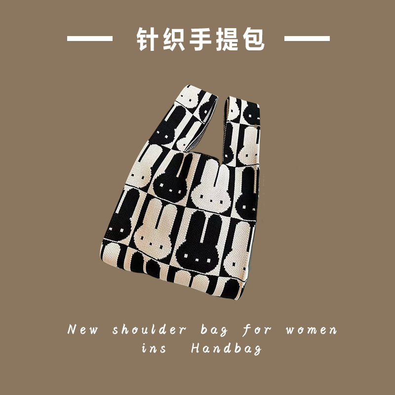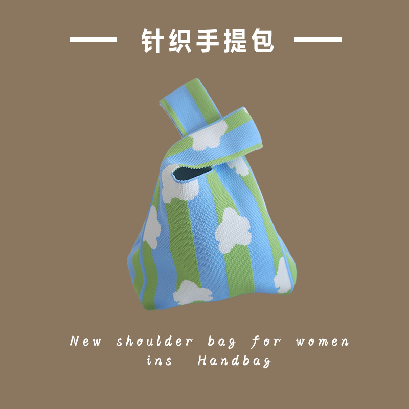 대용량 소형 가방 여성용 줄무늬 휴대용 니트 토트 백 나가는 휴대용 저장 가방 한국어 솔리드 컬러 숄더 백