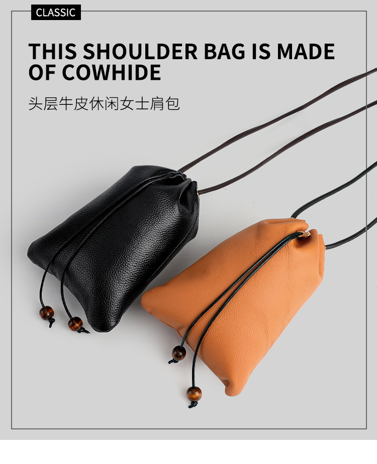 새로운 정품 가죽 어깨 가방 헤드셋 데이터 케이블 저장 가방 소프트 가죽 끈 가방 활 주머니 카우보이 크로스 바디 백 한국어