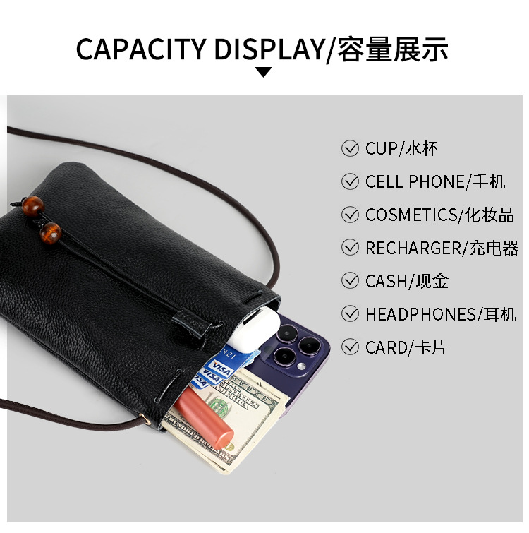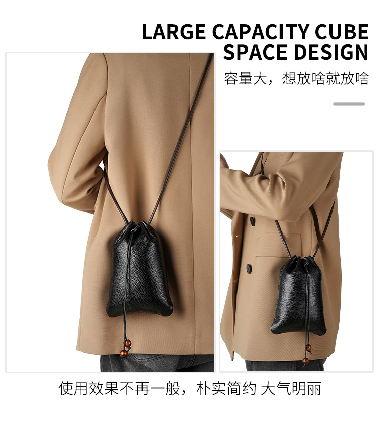 새로운 정품 가죽 어깨 가방 헤드셋 데이터 케이블 저장 가방 소프트 가죽 끈 가방 활 주머니 카우보이 크로스 바디 백 한국어스토어 가기
