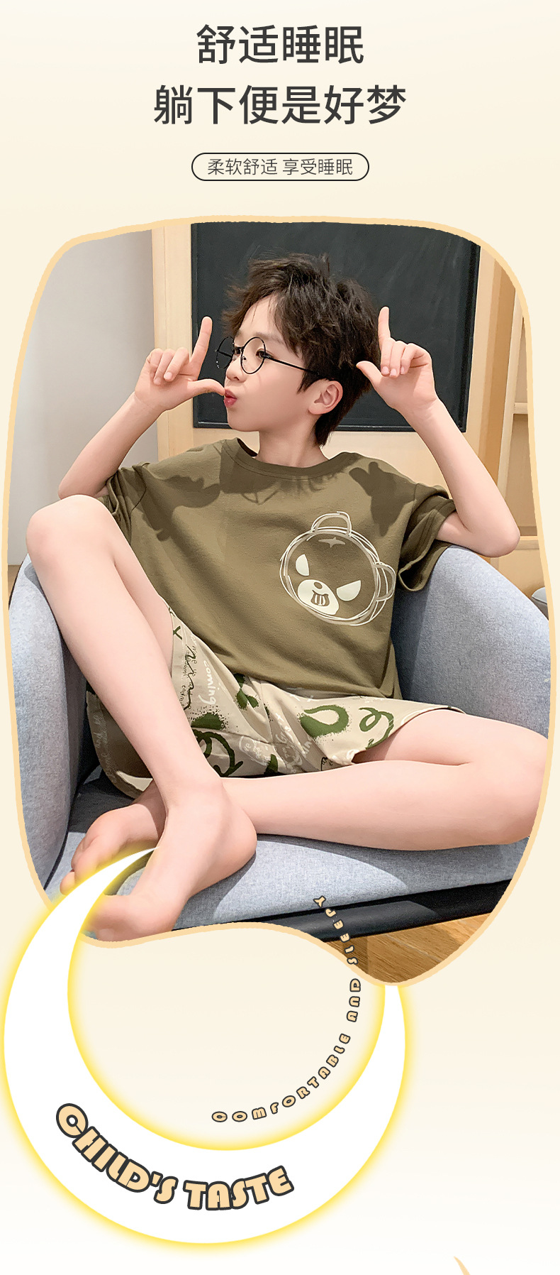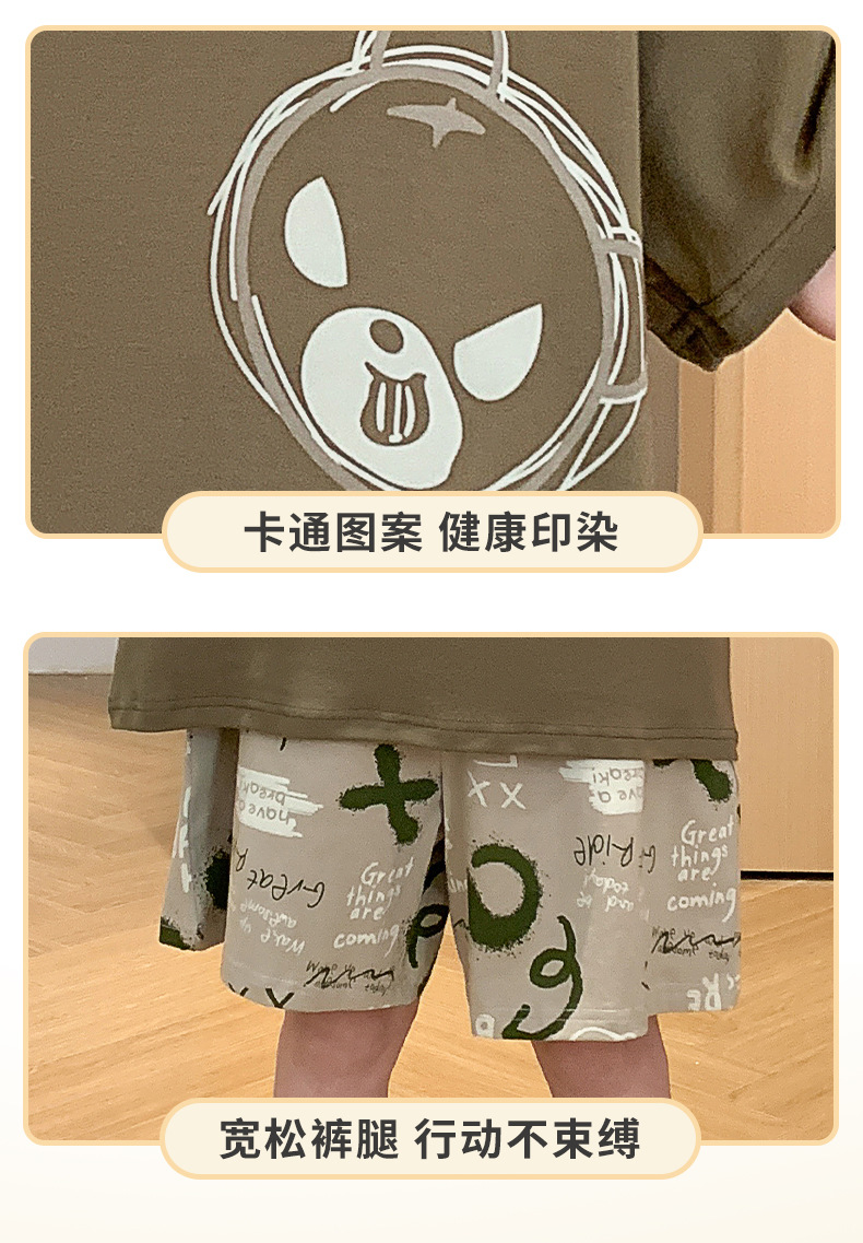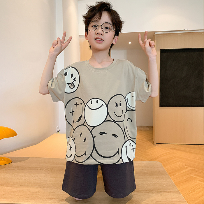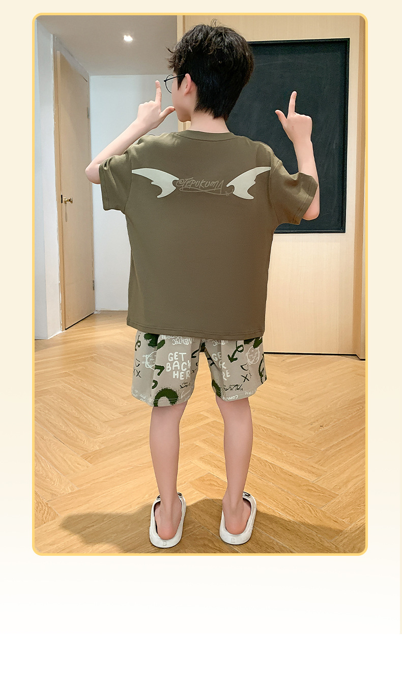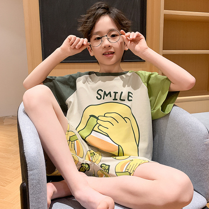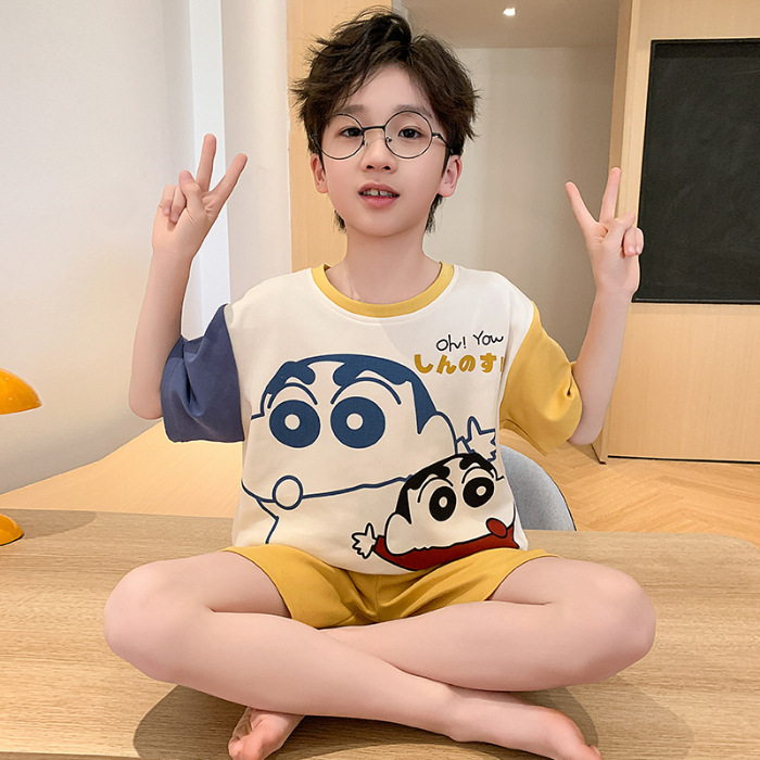 2025 라운드 넥 소년 잠옷 여름 순수 코튼 반팔 어린이 소년 봄, 가을 풀오버 중대형 어린이 가정 의류스토어 가기