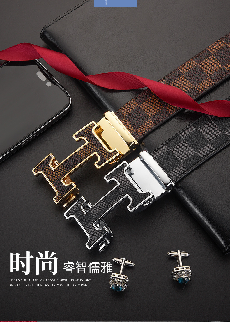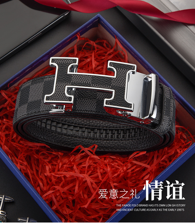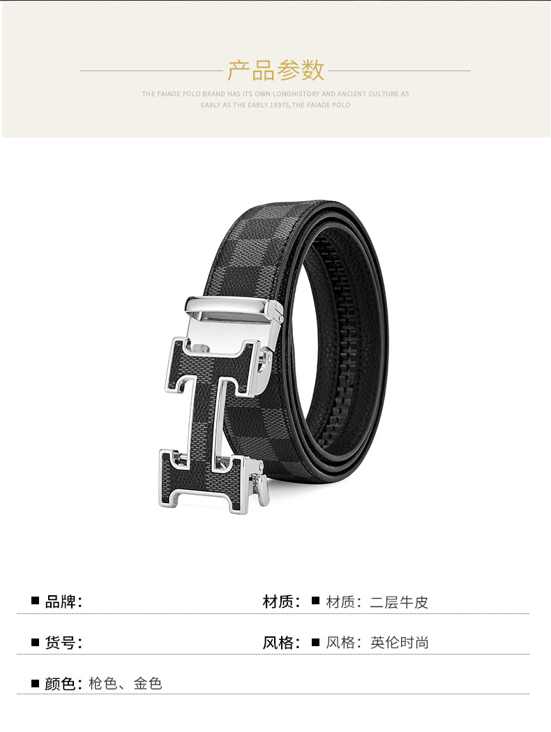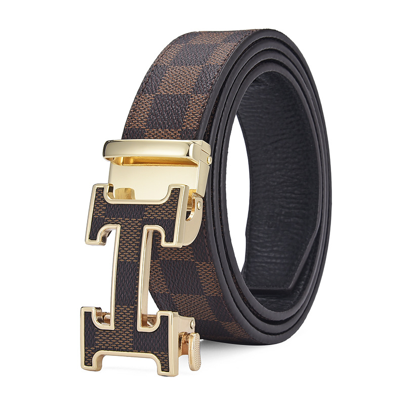 새로운 스타일의 소가죽 남성용 벨트 격자 무늬 I자형 버클 캐주얼 다용도 벨트 트렌디 바지 벨트 드롭 배송