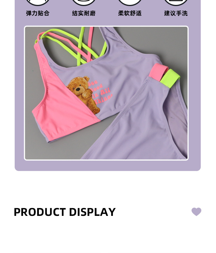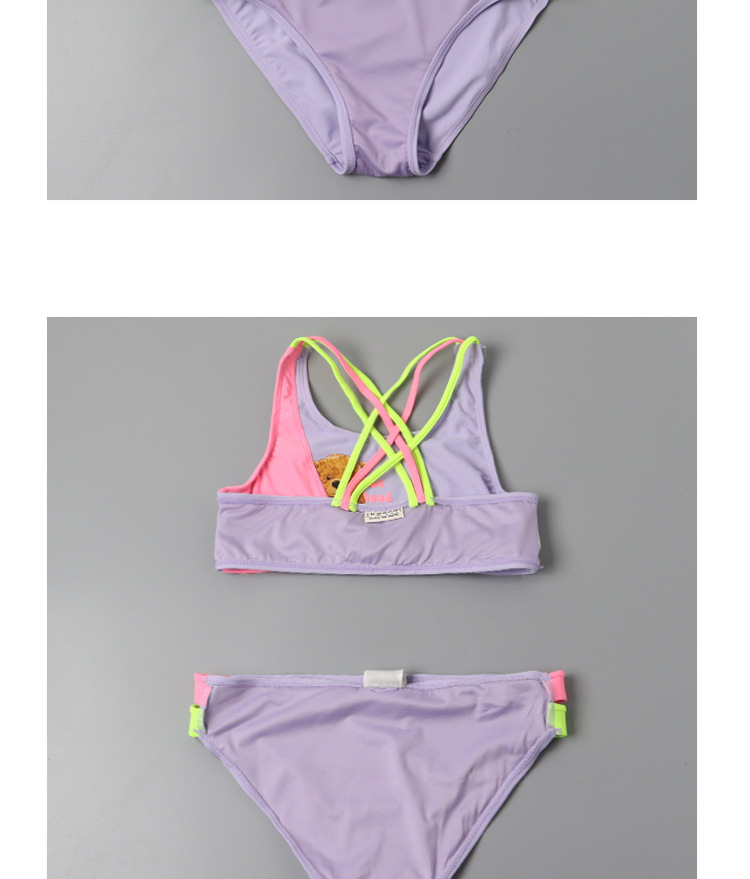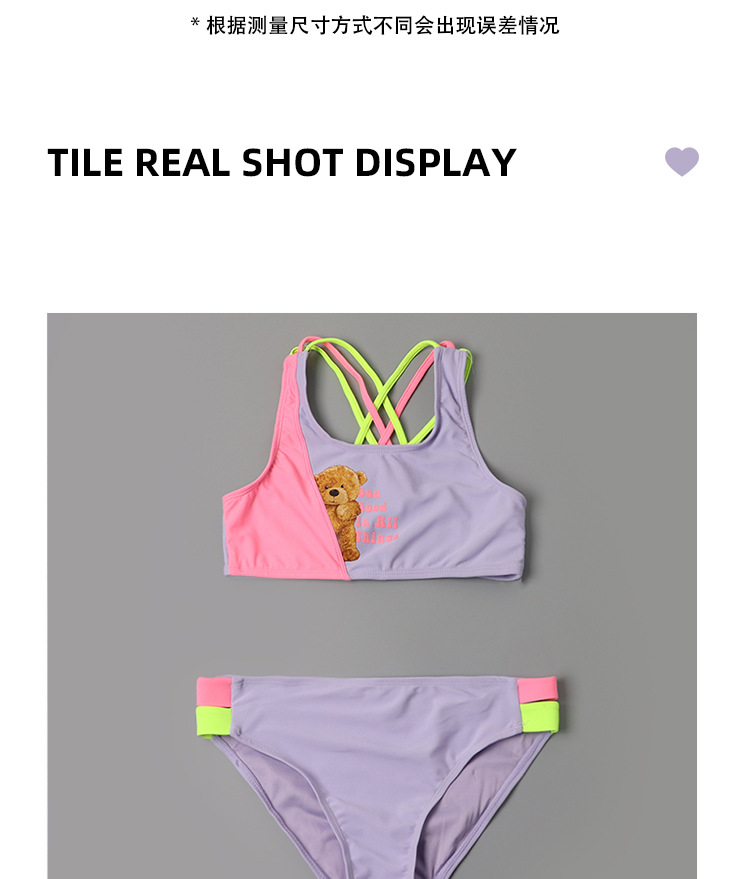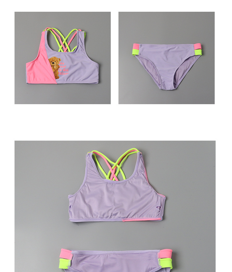 한국 스타일 어린이 분할 수영복 보라색 만화 곰 달콤한 귀여운 아기 소녀 수영복 세트 서양식 수영복스토어 가기
