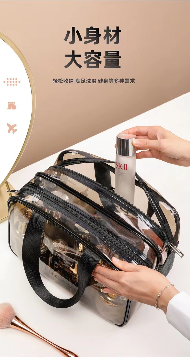 Pvc 투명 화장품 가방 인 스타일 여행 휴대용 방수 휴대용 세탁 가방 스킨 케어 제품 화장품 보관 가방