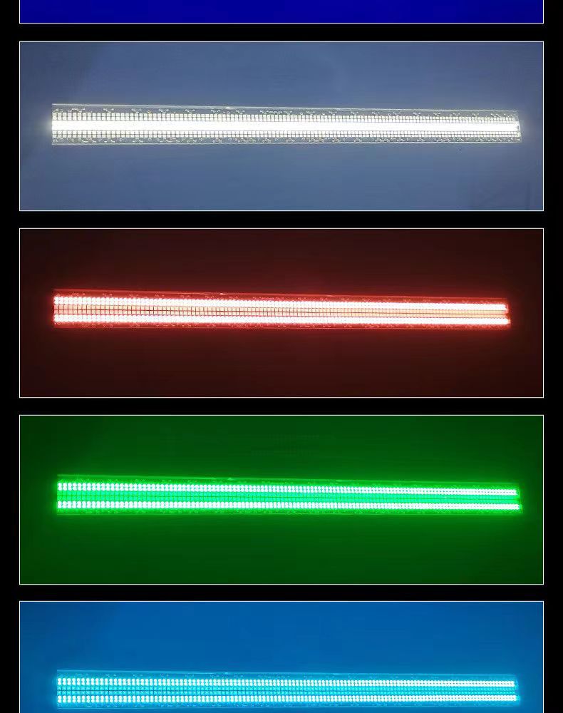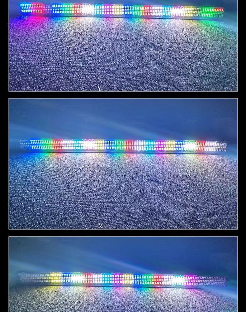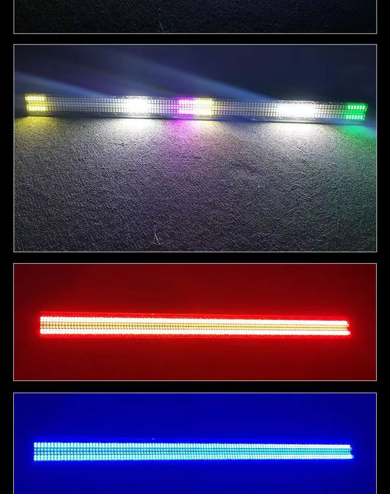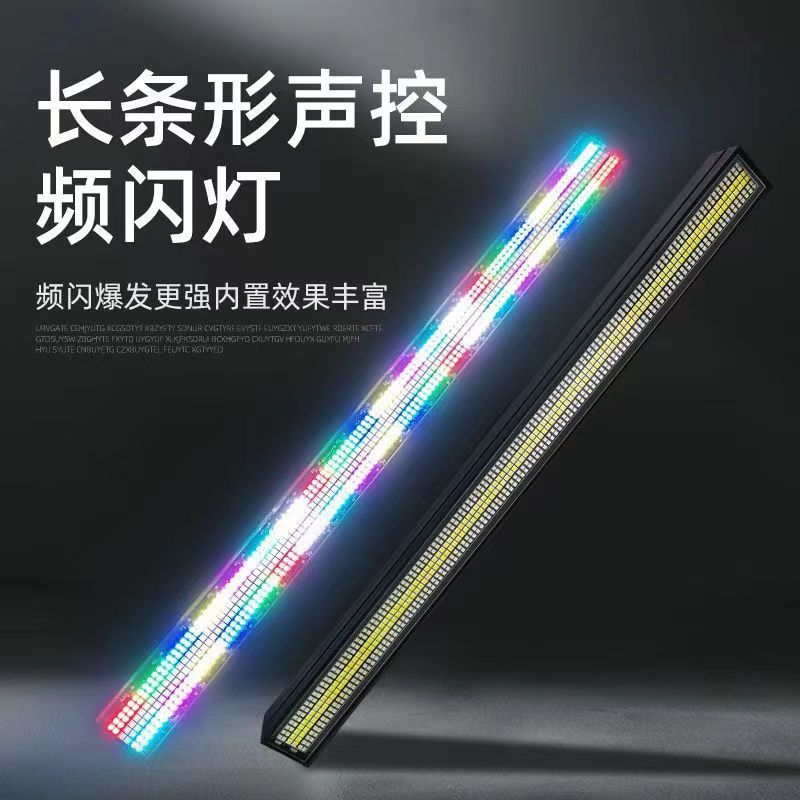 긴 스트립 스트로브 라이트 48+24 세그먼트 스트로브 라이트 풀 컬러 배경 조명 RGB 사운드 제어 조명 연결 가능