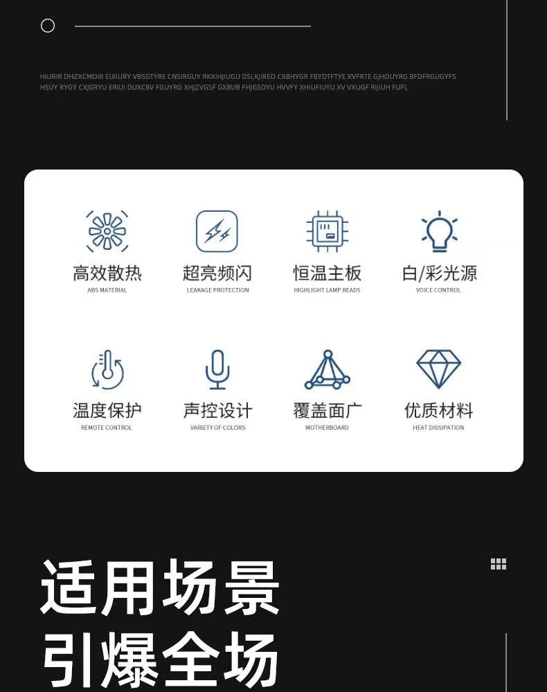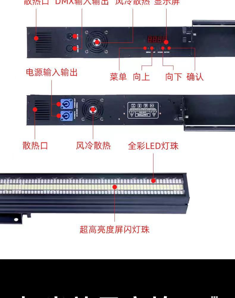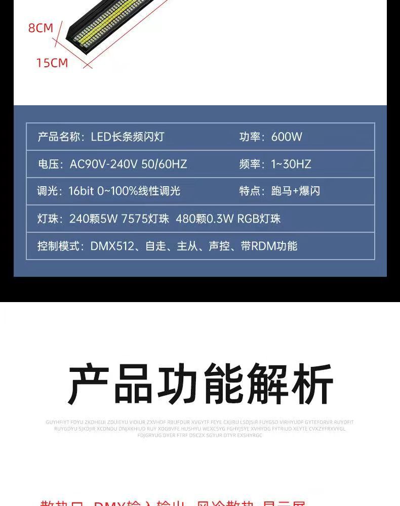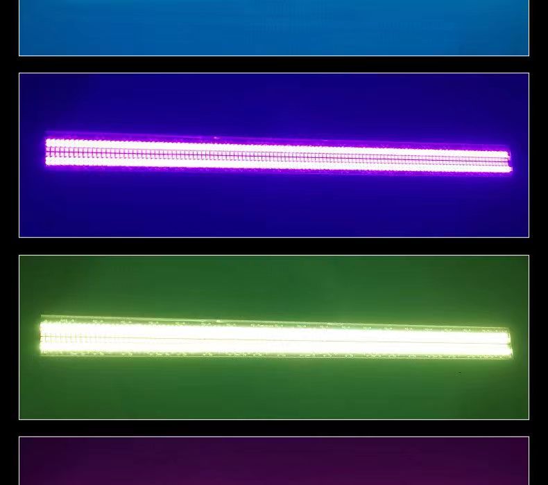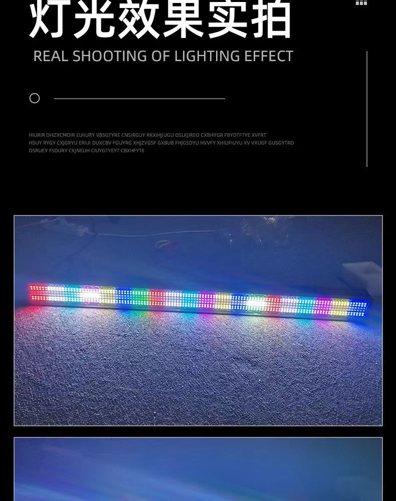 긴 스트립 스트로브 라이트 48+24 세그먼트 스트로브 라이트 풀 컬러 배경 조명 RGB 사운드 제어 조명 연결 가능