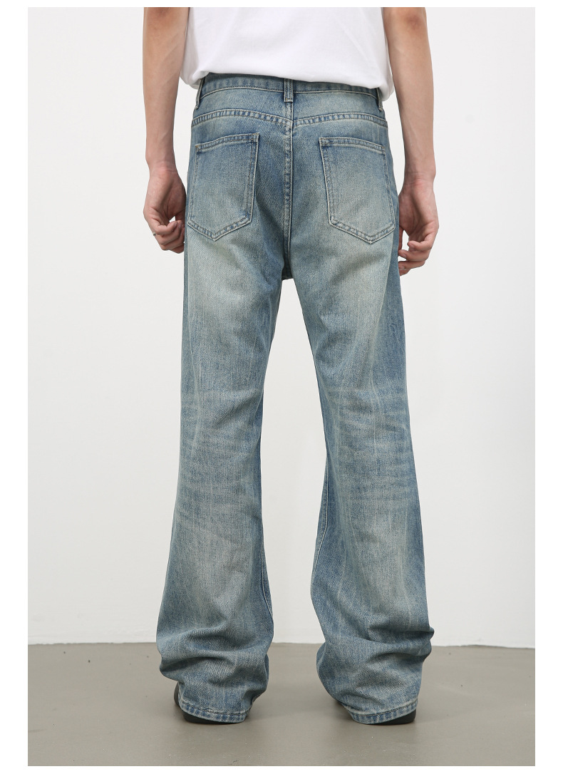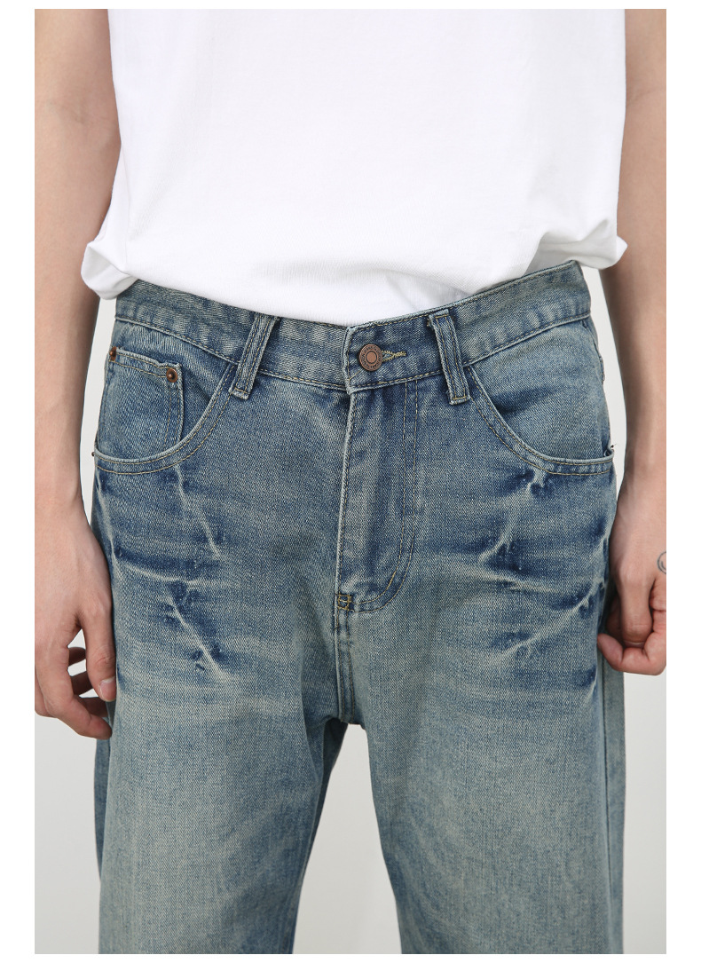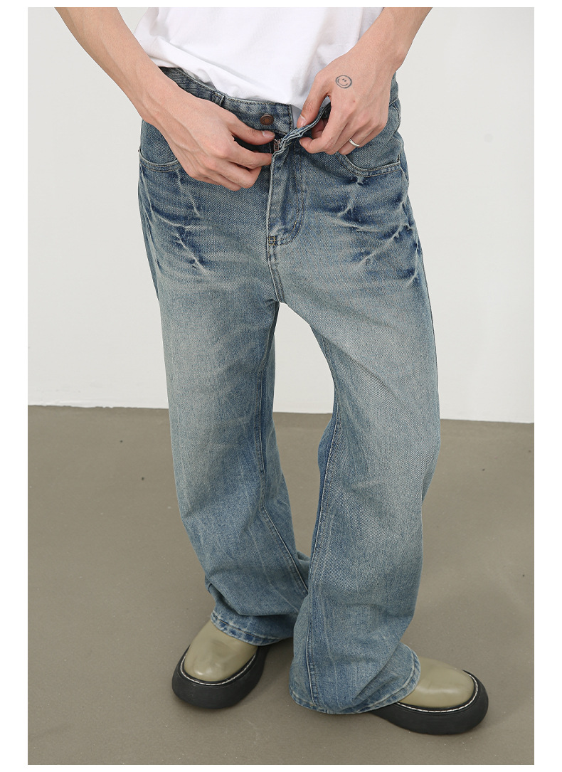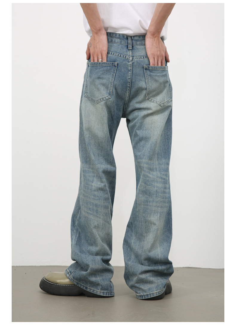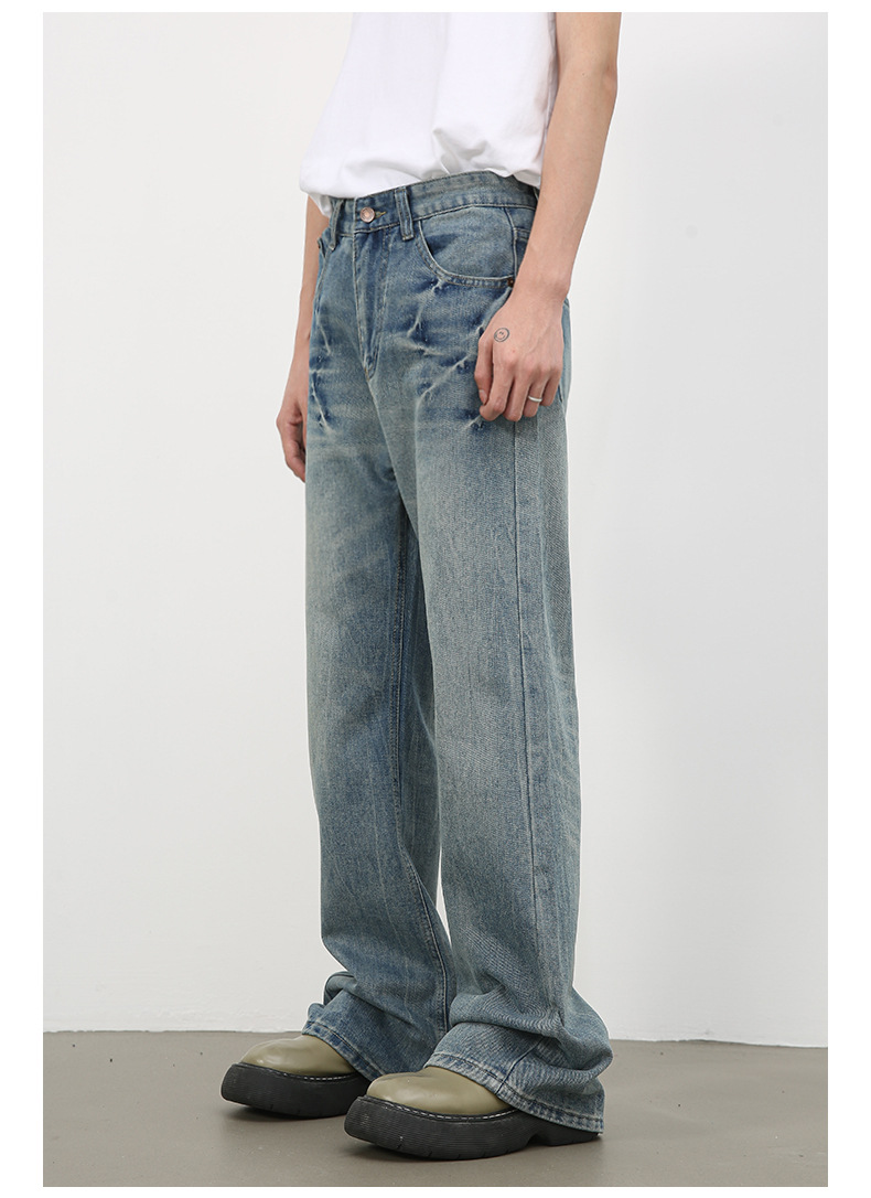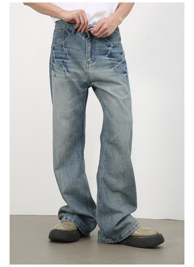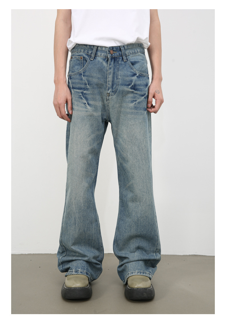 Nirben 데님 | 미국 하이 스트리트 번개 분쇄 된 청바지 남성용 오래 된 고양이 베어러 느슨한 마이크로 바지스토어 가기