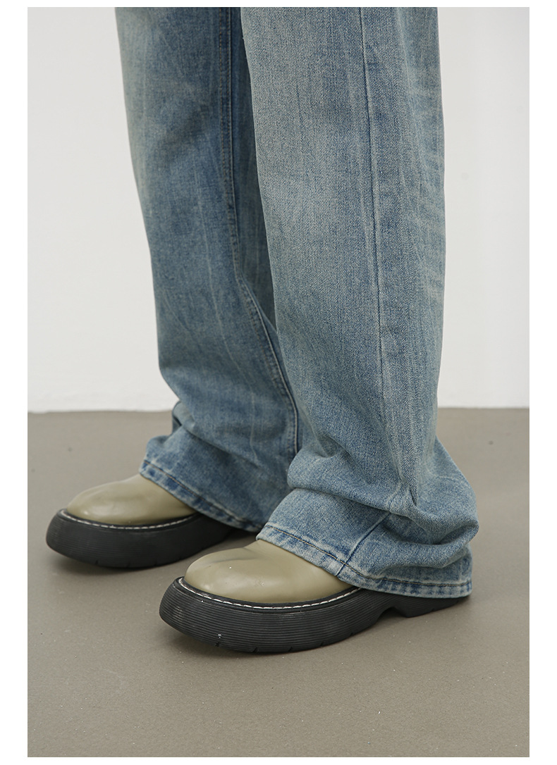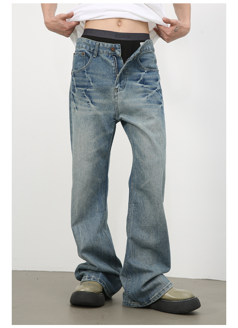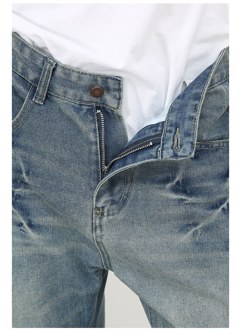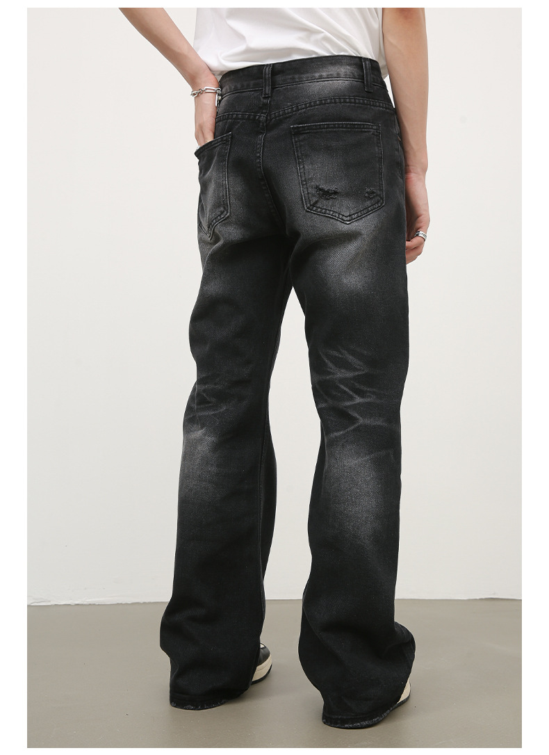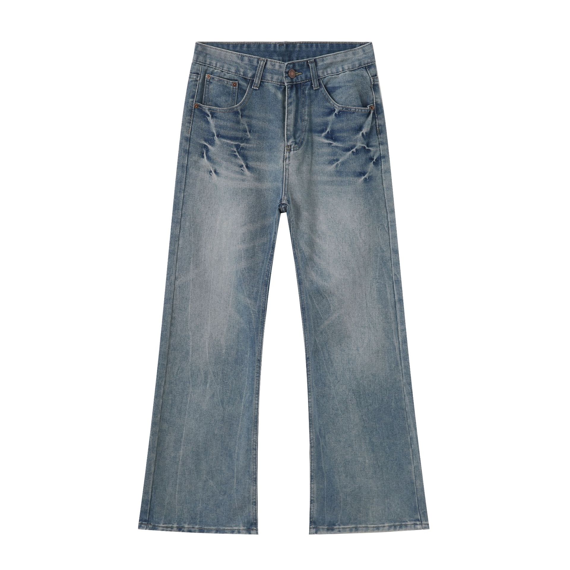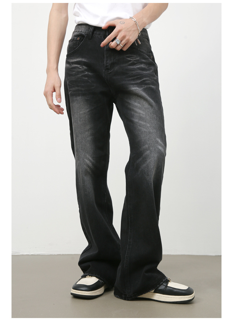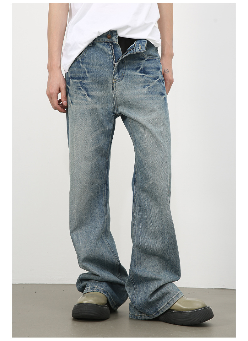 Nirben 데님 | 미국 하이 스트리트 번개 분쇄 된 청바지 남성용 오래 된 고양이 베어러 느슨한 마이크로 바지스토어 가기