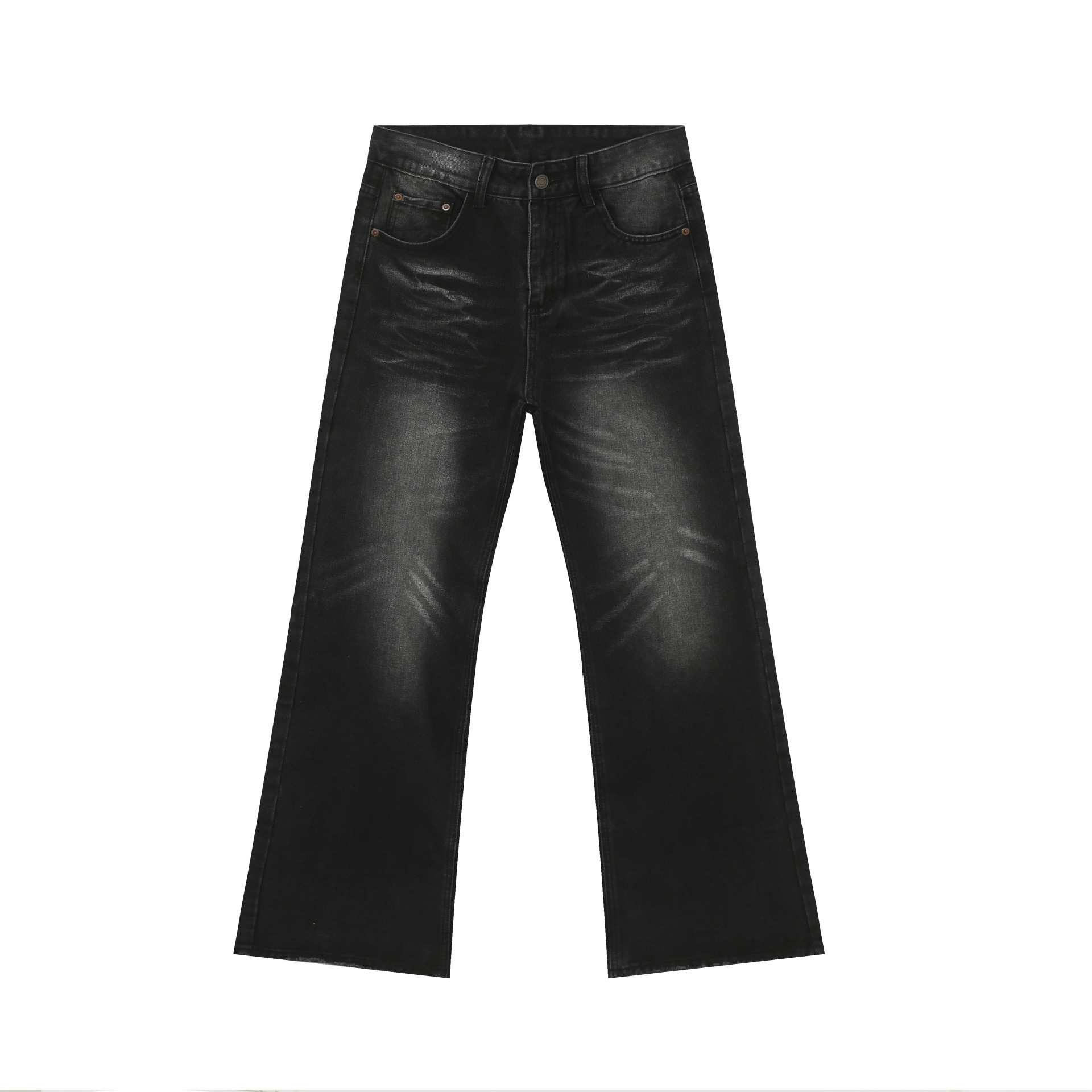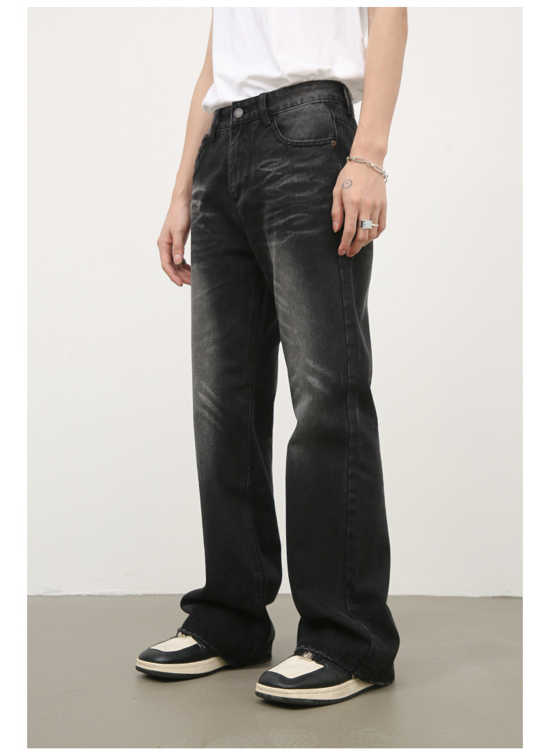 Nirben 데님 | 미국 하이 스트리트 번개 분쇄 된 청바지 남성용 오래 된 고양이 베어러 느슨한 마이크로 바지