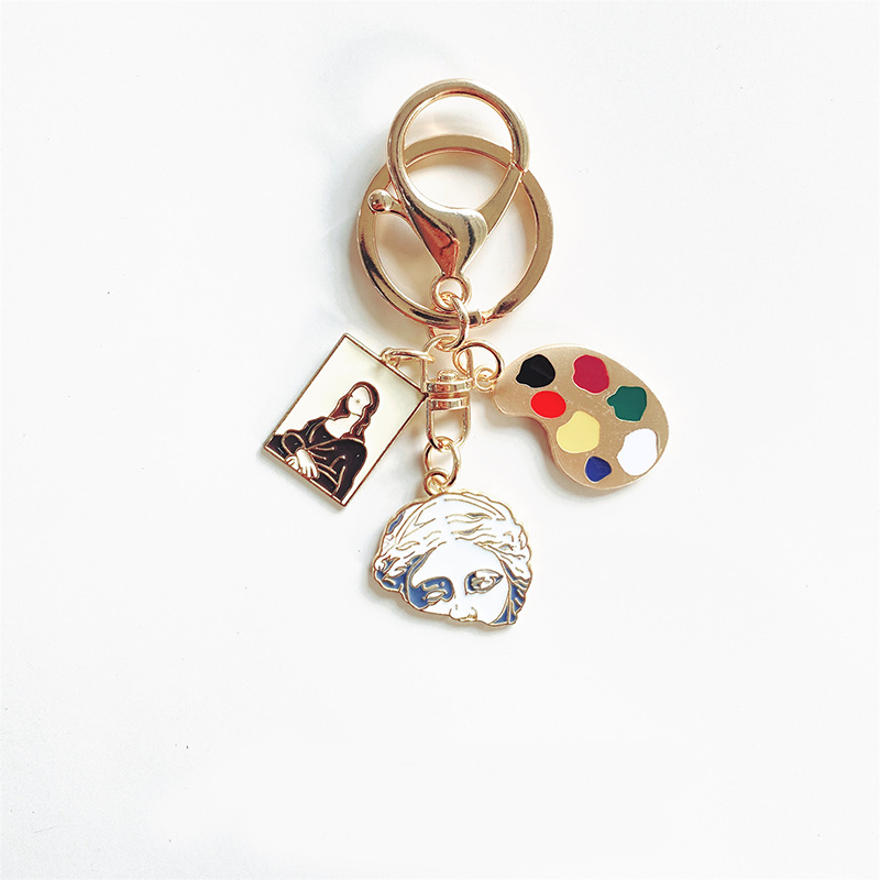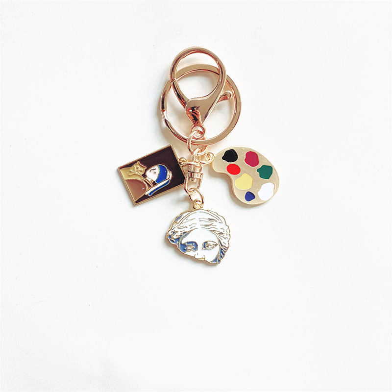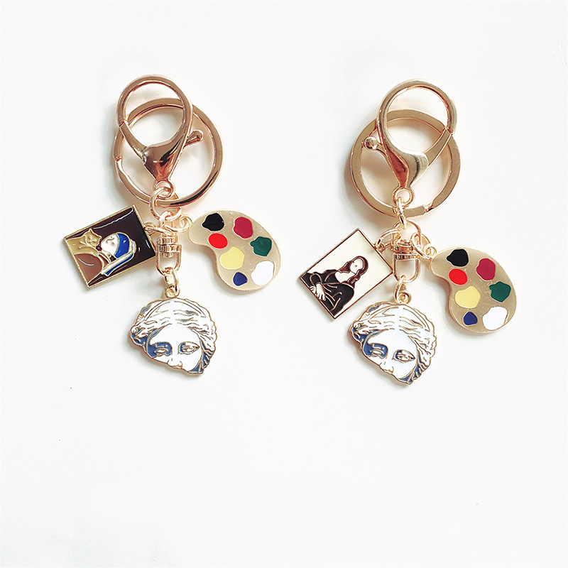 Ins 문학 스타일 성격 모나리자 진주 소녀 초상화 조각 키 체인 아트 학생 가방 펜던트 선물